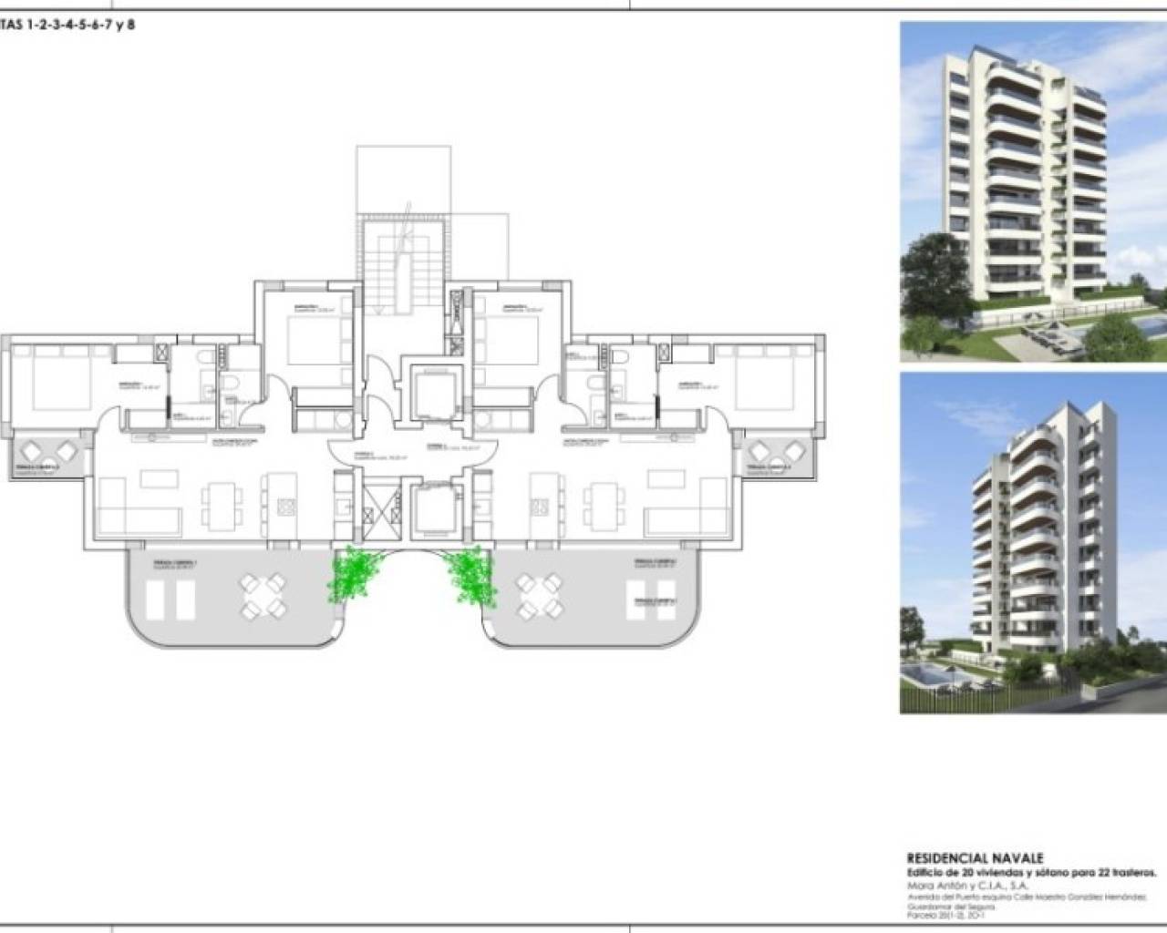 Guardamar is een pittoreske gemeente van 16.000 inwoners in het zuiden van de Costa Blanca. De uitstekende locatie zorgt voor een goede verbinding, of u nu met de auto, trein of vliegtuig reist. De internationale luchthaven, op slechts 30 km afstand, verbindt u met de belangrijkste hoofdsteden van Europa. De stad Alicante, met zijn hogesnelheidstreinstation, ligt op slechts 45 minuten afstand. Guardamar heeft een uitgestrekte kustlijn van 11 km gouden zandstranden, bekroond met drie blauwe vlaggen voor hun hoge ecologische waarde. Achter de stranden strekt zich La Pinada de Guardamar uit, een duinbos van 800 hectare met pijn-, eucalyptus- en palmbomen. Een andere grote natuurlijke attractie is de monding van de rivier de Segura in de Middellandse Zee, waar een kleine vuurtoren staat en de jachthaven Marina de las Dunas, ideaal voor vissers en watersportliefhebbers. De omgeving van Residentie Navale heeft een bijzondere charme, niet alleen vanwege de idyllische stranden, maar ook vanwege de traditionele winkels, het gevarieerde gastronomische aanbod, wandelpaden zowel landinwaarts als vanaf de Pinada en een breed scala aan sportmogelijkheden. In Residentie Navale heeft u alle voorzieningen binnen handbereik, met een supermarkt op slechts een paar meter afstand, openbaar vervoer vlakbij en het centrum van Guardamar op slechts 5 minuten afstand, met winkels, apotheken en nog veel meer. Alle appartementen zijn ruim en omvatten 2 slaapkamers, 2 badkamers en een lichte en luchtige woonkamer met open ingerichte keuken. Ze hebben 2 terrassen; een balkon bij de ouderslaapkamer en een hoofdterras van ca 20 m². Elk appartement heeft een autostaanplaats en berging. Tevens is er plaats voor het stallen van fietsen. Prijzen onder voorbehoud van beschikbaarheid. Neem contact met ons op voor meer informatie. #ref:615