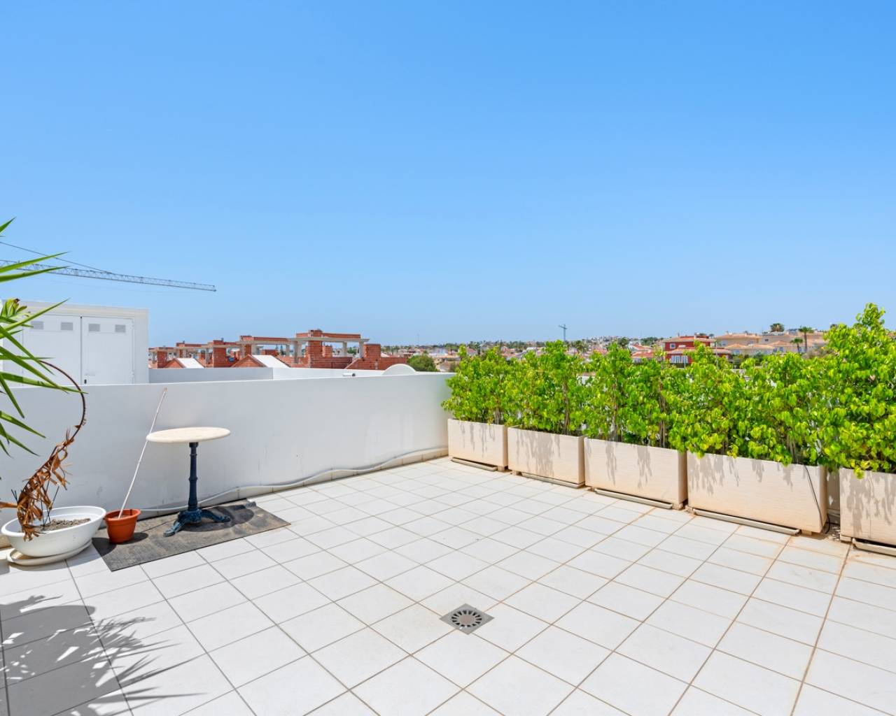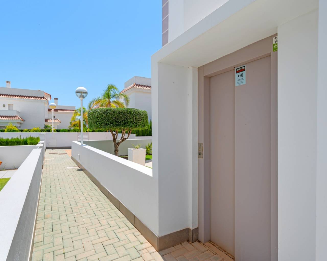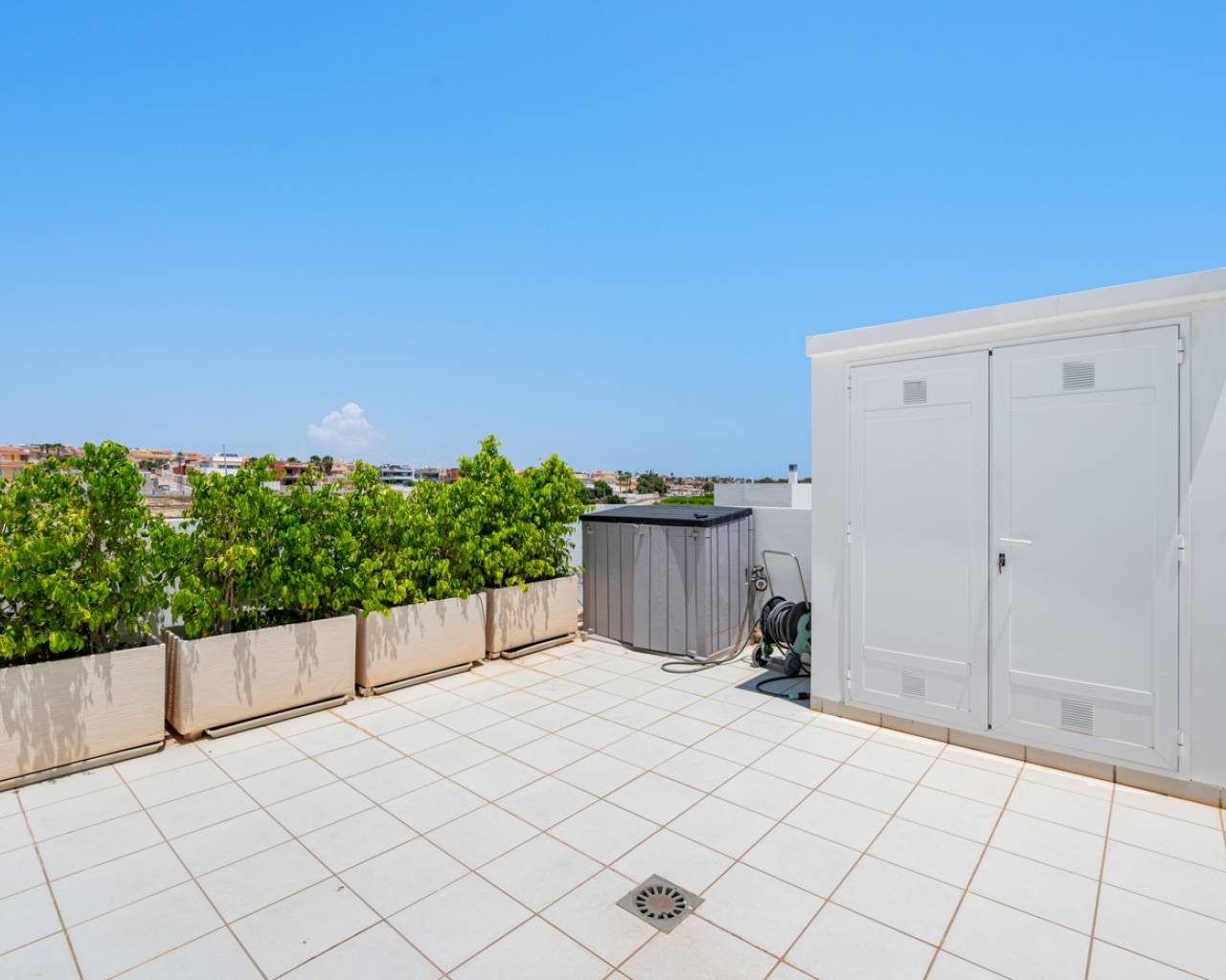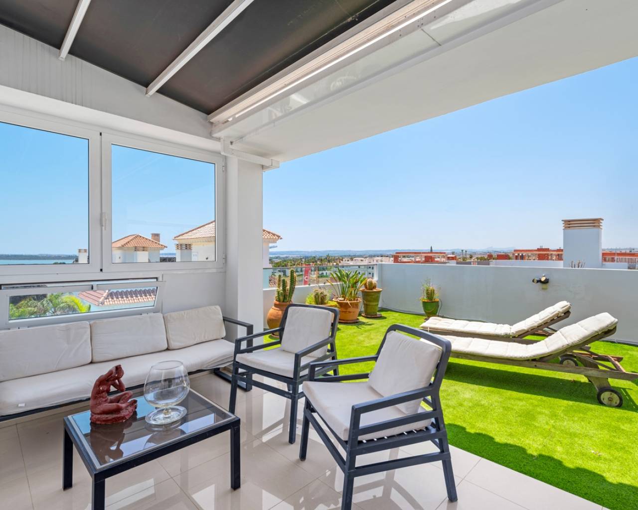 Gelegen in een van de meest exclusieve woonwijken van de regio, biedt dit prachtige penthouse comfort, privacy en hoogwaardige afwerkingen. De woning beschikt over een privélift die beide verdiepingen verbindt – ideaal voor mensen met beperkte mobiliteit. Op de hoofdverdieping bevindt zich een ruime en lichte woon-eetkamer met toegang tot een glazen terras, perfect om het hele jaar door te genieten van het uitzicht op het gemeenschappelijk zwembad of om gezellig te dineren in een warme sfeer. De open keuken is volledig uitgerust met hoogwaardige inbouwapparatuur – ideaal voor kookliefhebbers. Er zijn twee comfortabele slaapkamers met inbouwkasten en twee moderne badkamers met inloopdouche, waarvan één en suite. Het solarium is bereikbaar via de privélift of een buitentrap en biedt een grote ruimte om te ontspannen of van de zon te genieten. Er is een geïntegreerde pergola met ramen, een berging en een prachtig uitzicht op het natuurpark van de Lagunas de La Mata. De exclusieve residentie bestaat uit slechts 12 woningen en biedt een rustige en veilige leefomgeving met een gemeenschappelijk zwembad, groene zones en een eigen parkeerplaats. In de nabije omgeving zijn supermarkten, vrijetijdsvoorzieningen en het Consum-winkelcentrum in Ciudad Quesada. Een unieke kans om te genieten van de mediterrane zon in een bevoorrechte omgeving. Kom en ontdek jouw nieuwe thuis!