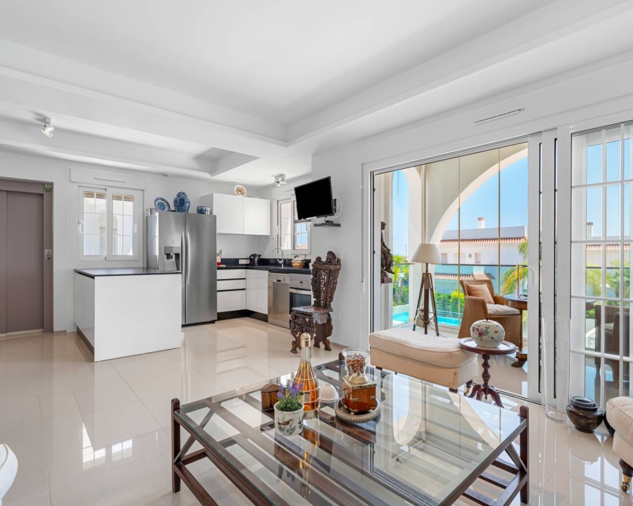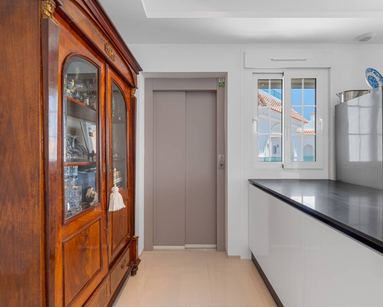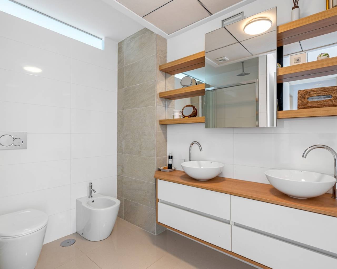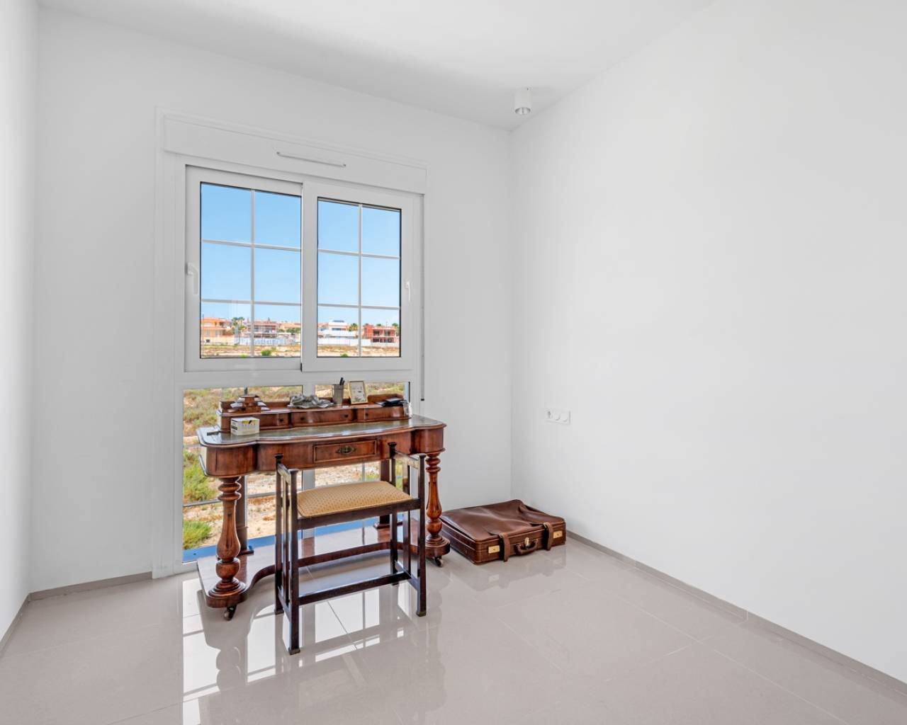 Gelegen in een van de meest exclusieve woonwijken van de regio, biedt dit prachtige penthouse comfort, privacy en hoogwaardige afwerkingen. De woning beschikt over een privélift die beide verdiepingen verbindt – ideaal voor mensen met beperkte mobiliteit. Op de hoofdverdieping bevindt zich een ruime en lichte woon-eetkamer met toegang tot een glazen terras, perfect om het hele jaar door te genieten van het uitzicht op het gemeenschappelijk zwembad of om gezellig te dineren in een warme sfeer. De open keuken is volledig uitgerust met hoogwaardige inbouwapparatuur – ideaal voor kookliefhebbers. Er zijn twee comfortabele slaapkamers met inbouwkasten en twee moderne badkamers met inloopdouche, waarvan één en suite. Het solarium is bereikbaar via de privélift of een buitentrap en biedt een grote ruimte om te ontspannen of van de zon te genieten. Er is een geïntegreerde pergola met ramen, een berging en een prachtig uitzicht op het natuurpark van de Lagunas de La Mata. De exclusieve residentie bestaat uit slechts 12 woningen en biedt een rustige en veilige leefomgeving met een gemeenschappelijk zwembad, groene zones en een eigen parkeerplaats. In de nabije omgeving zijn supermarkten, vrijetijdsvoorzieningen en het Consum-winkelcentrum in Ciudad Quesada. Een unieke kans om te genieten van de mediterrane zon in een bevoorrechte omgeving. Kom en ontdek jouw nieuwe thuis!