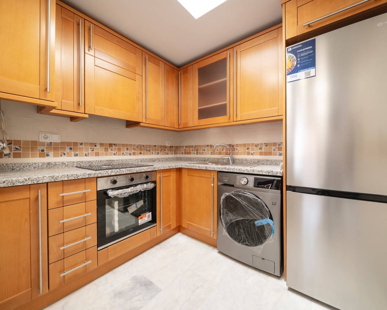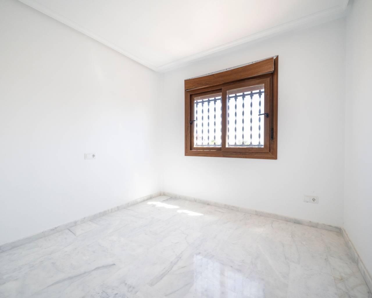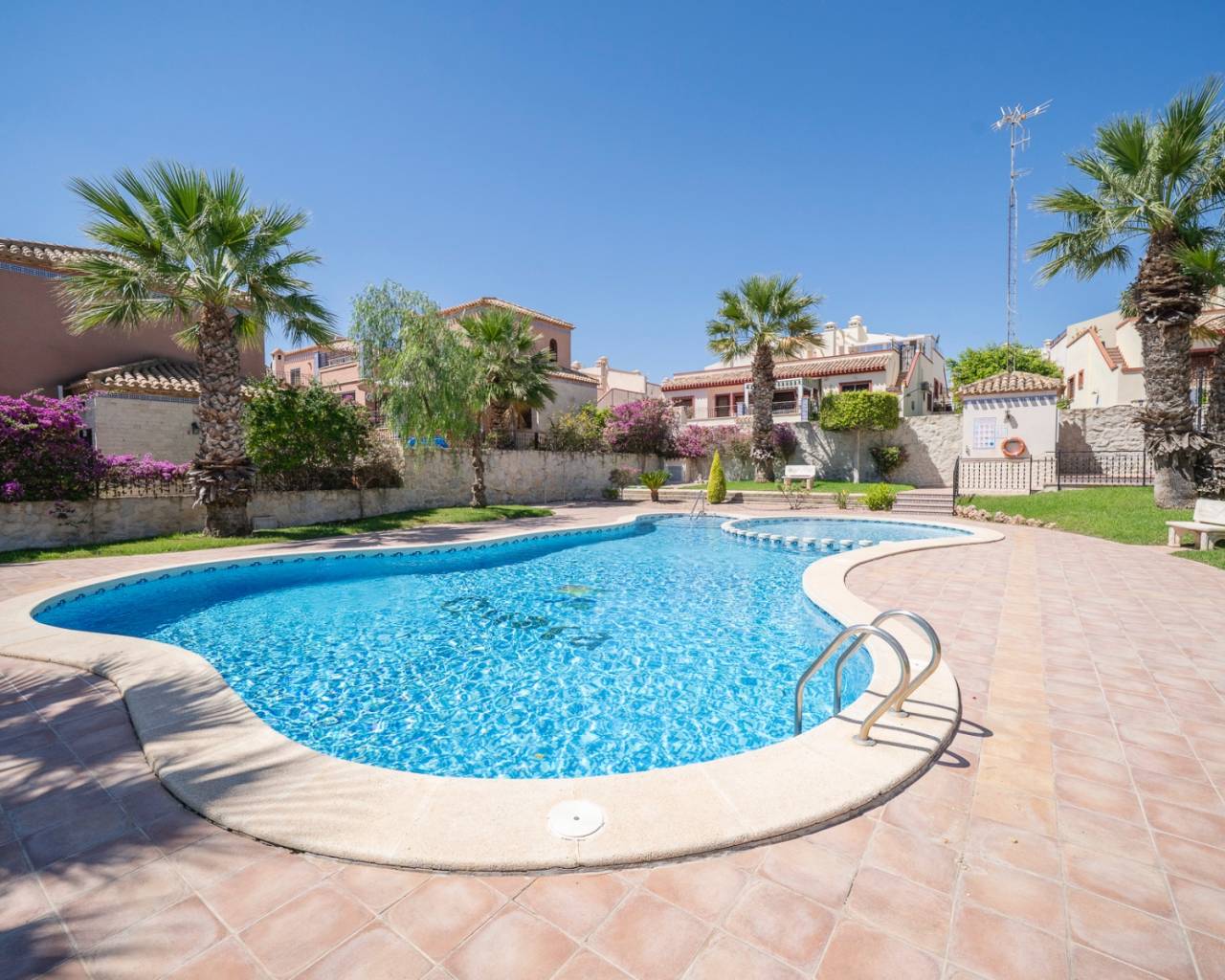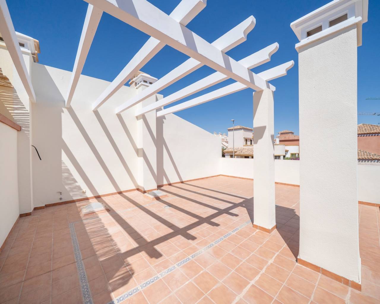 Gelegen in de prestigieuze Ciudad de las Comunicaciones, combineert dit gezellige quad-huis comfort, licht en een rustige omgeving. De woning, gebouwd in 2007, beschikt over 63 m² woonoppervlak met een woonkamer met open keuken en open haard, twee slaapkamers met inbouwkasten — waarvan één met eigen badkamer — en een tweede complete badkamer. Buiten is er een oostgericht terras met uitzicht op het gemeenschappelijk zwembad en privéparkeerplaats op het perceel. Een bijzonder pluspunt is het ruime solarium van 47 m², perfect om te genieten van de zon en het vrije uitzicht. De afgesloten urbanisatie beschikt over verzorgde gemeenschappelijke tuinen en een zwembad, ideaal om het hele jaar door te wonen of als vakantiewoning.