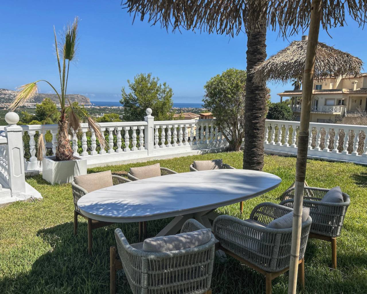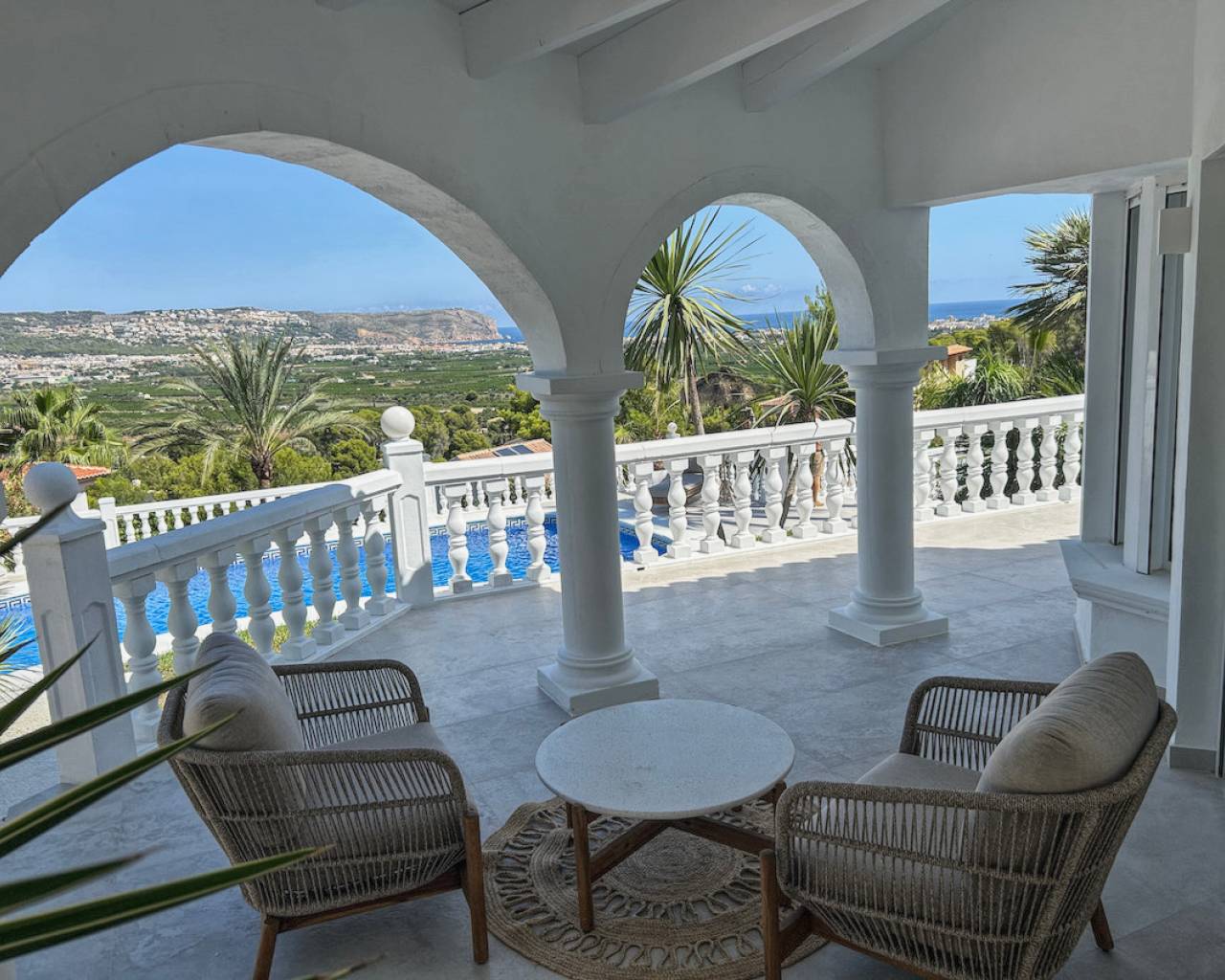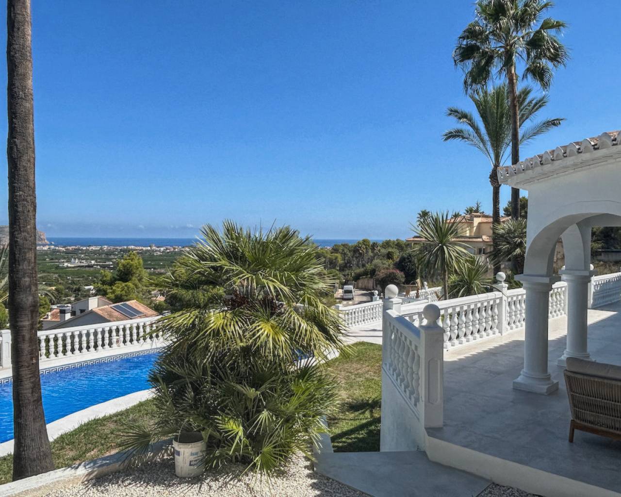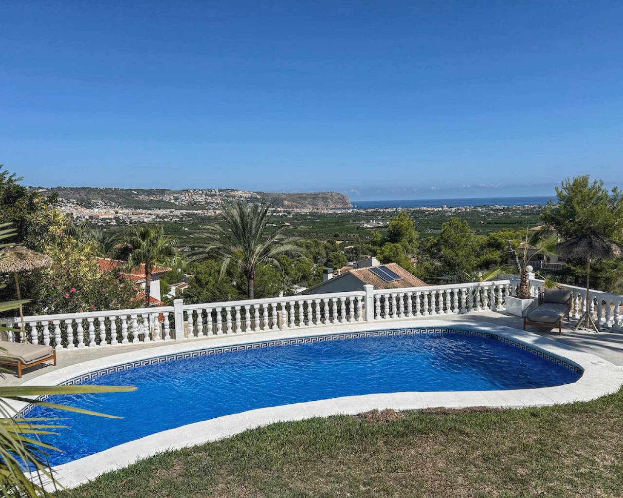 Deze charmante gelijkvloerse villa is volledig gerenoveerd in 2025 en bevindt zich op een imposante kavel met panoramisch uitzicht over de baai van Javea, de oude stad en de indrukwekkende Montgoberg. Het huis beschikt over een entree met aan de ene kant een smaakvolle woon/eetkamer met veel lichtinval en een moderne open keuken met luxe inbouwapparatuur. Vanuit hier heeft men directe toegang tot de ruime naya met prachtig uitzicht op zee. Aan de andere kant van de entree is een gang die leidt naar 3 slaapkamers en 2 badkamers. De hoofdslaapkamer heeft een eigen badkamer met ligbad en inloopdouche en tevens toegang tot het terras en zeezicht. De tuin is prachtig aangelegd met een mooi gazon, verschillende palmen en een groot zwembad van 48m2 en ruim terras. Tot slot is er ook een garage voor 1 auto.