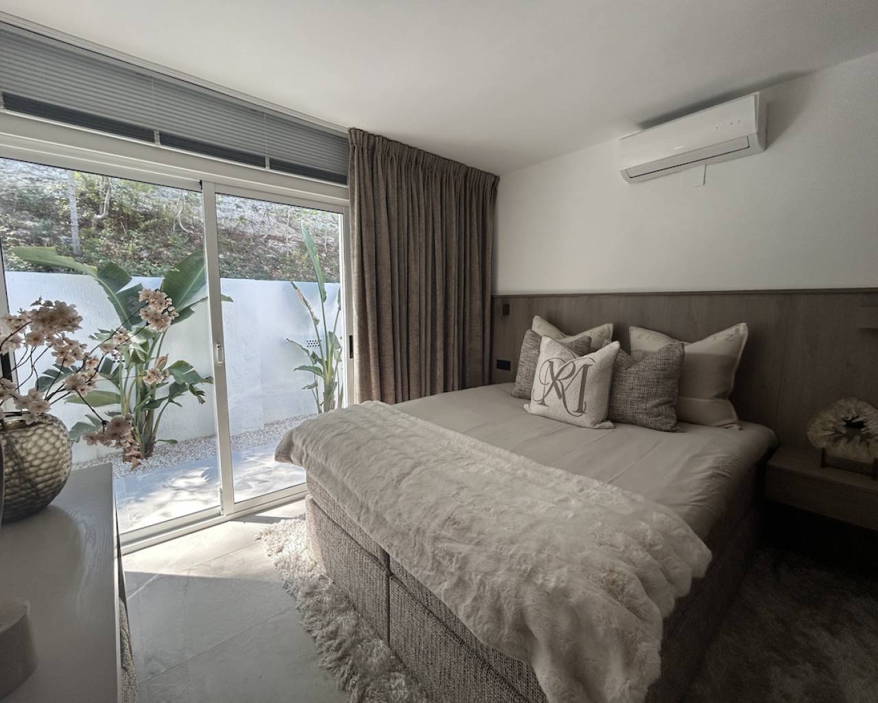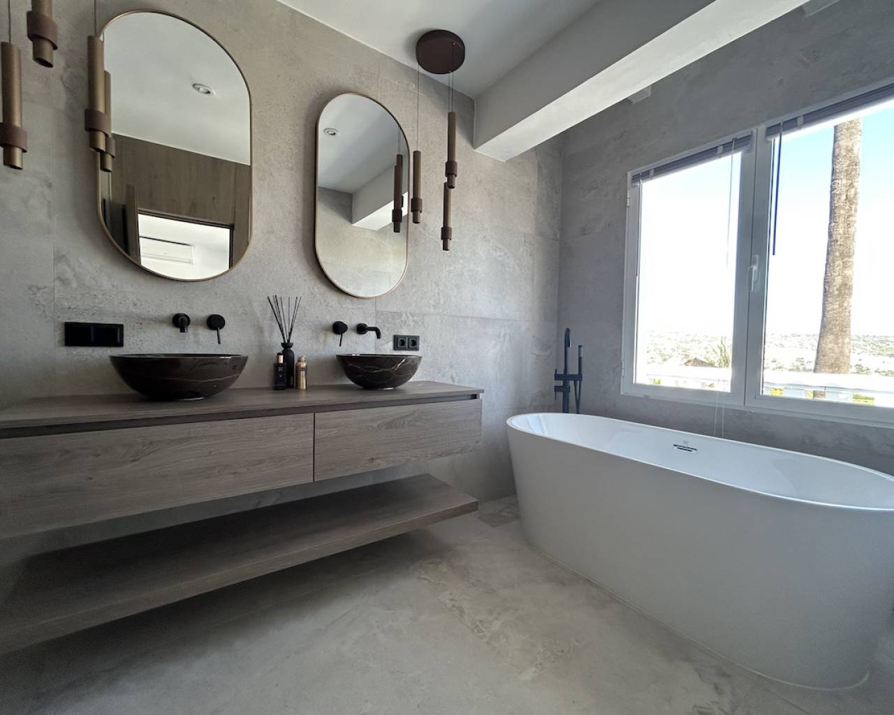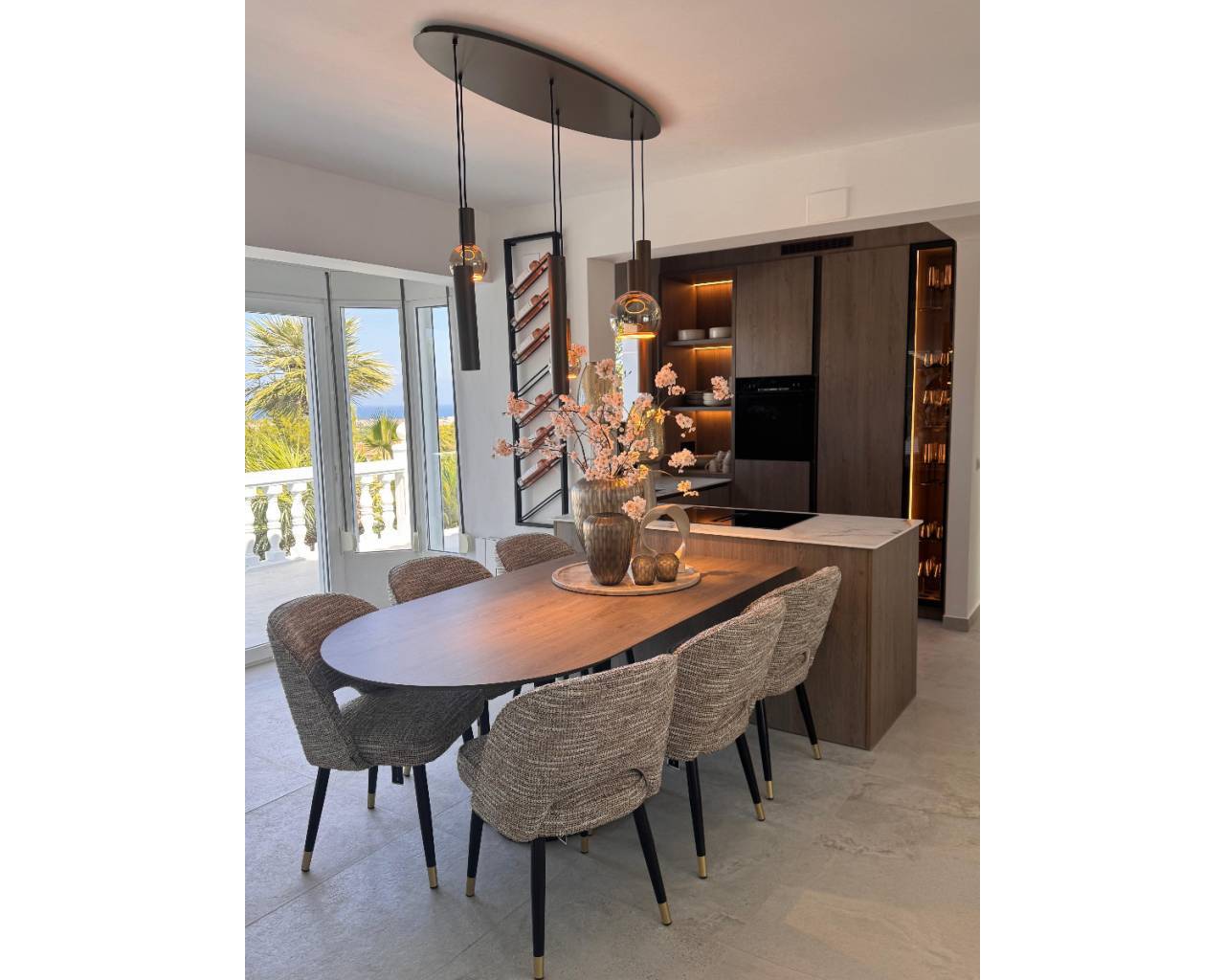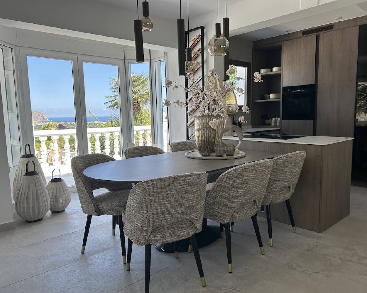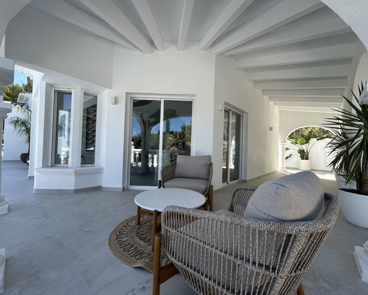 Deze charmante gelijkvloerse villa is volledig gerenoveerd in 2025 en bevindt zich op een imposante kavel met panoramisch uitzicht over de baai van Javea, de oude stad en de indrukwekkende Montgoberg. Het huis beschikt over een entree met aan de ene kant een smaakvolle woon/eetkamer met veel lichtinval en een moderne open keuken met luxe inbouwapparatuur. Vanuit hier heeft men directe toegang tot de ruime naya met prachtig uitzicht op zee. Aan de andere kant van de entree is een gang die leidt naar 3 slaapkamers en 2 badkamers. De hoofdslaapkamer heeft een eigen badkamer met ligbad en inloopdouche en tevens toegang tot het terras en zeezicht. De tuin is prachtig aangelegd met een mooi gazon, verschillende palmen en een groot zwembad van 48m2 en ruim terras. Tot slot is er ook een garage voor 1 auto.
