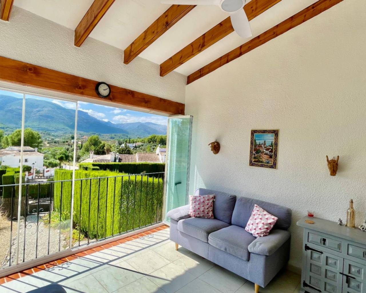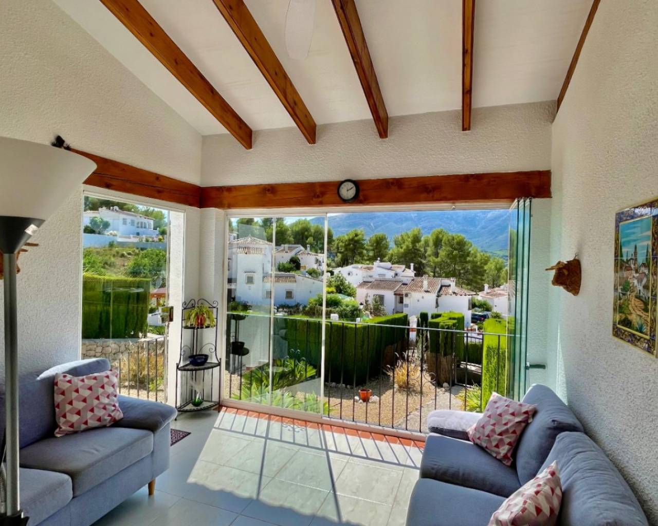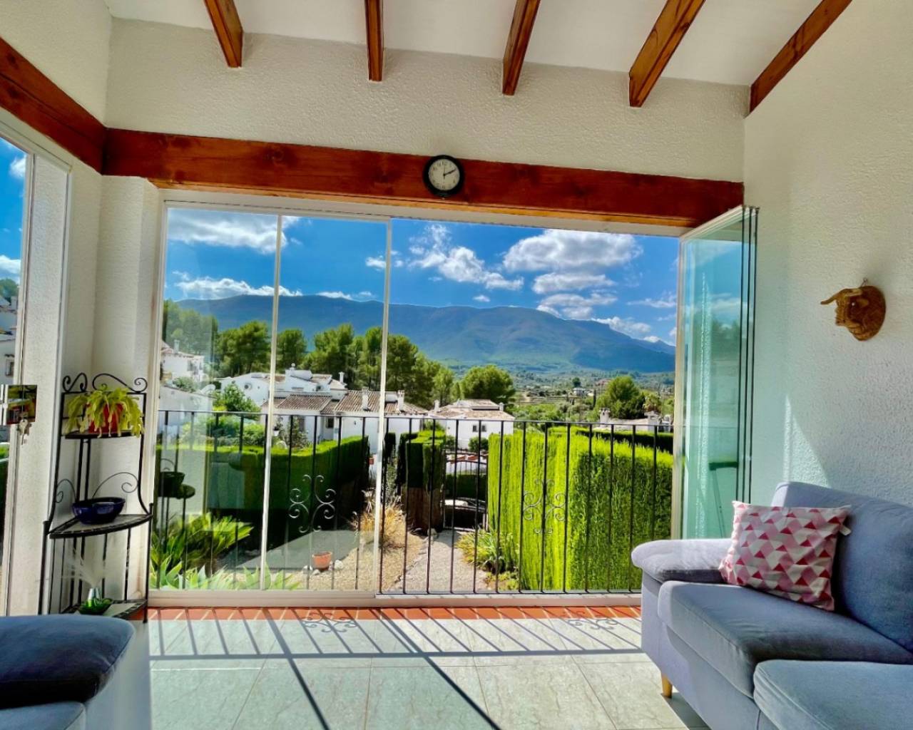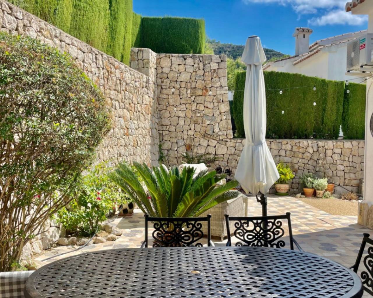 Deze zuid georiënteerde half vrijstaande villa met vrij uitzicht en eigen tuin bevindt zich in een mooie gemeenschap met groot gemeenschappelijke zwembad. Het huis bestaat uit een overdekte naya die leidt naar een grote open woon-/eetkamer met pelletkachel, (warme en koude) airconditioning en plafondventilatoren. De volledig ingerichte keuken heeft een buitendeur die leidt naar een zeer privé terras om te dineren/ontspannen met gasbarbecue. Er zijn twee tweepersoonsslaapkamers met inbouwkasten, (warme en koude) airconditioning, plafondventilatoren en een moderne badkamer. De villa heeft een kleine ondergrondse berging en parkeergelegenheid buiten op straat. De woning heeft ook toegang tot het gemeenschappelijke zwembad dat zeer goed onderhouden is en douches, toiletten, parasols en ligstoelen heeft. Op loopafstand vindt u een populair restaurant, het is 5 minuten rijden naar Orba/Jalon/Murla en 20 minuten rijden naar het bruisende stadje Denia en haar stranden, en 25/30 minuten naar Javea/Moraira en Calpe.