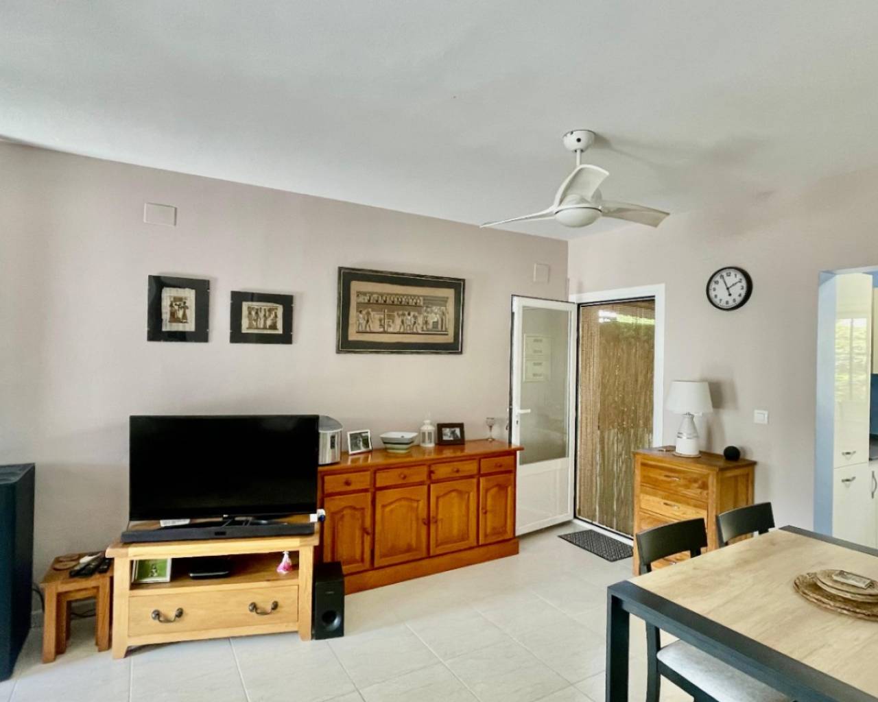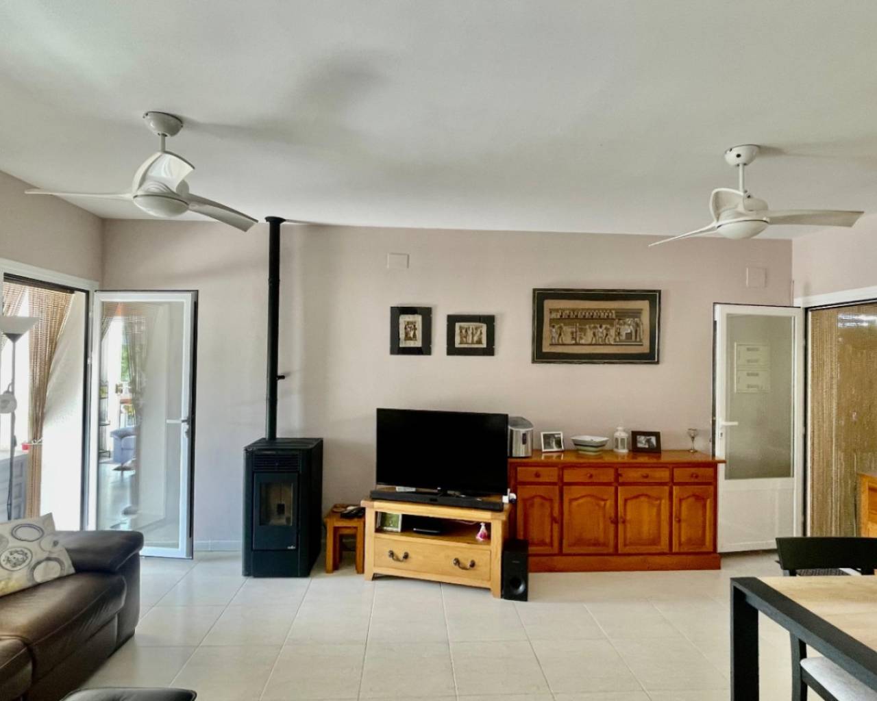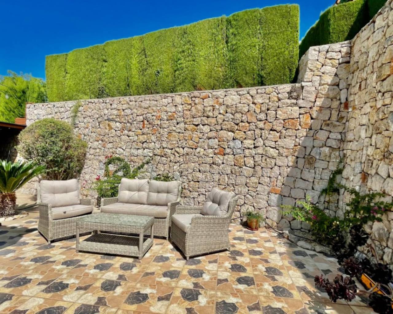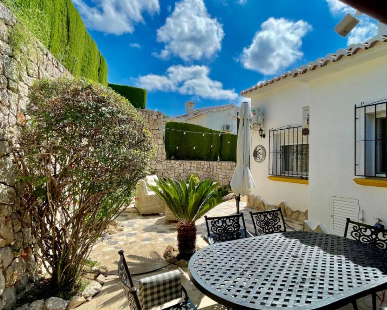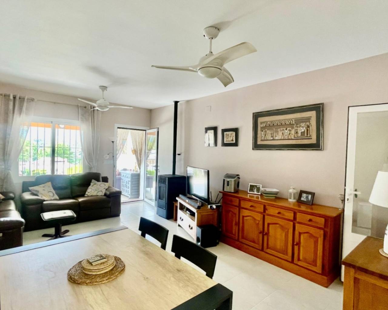 Deze zuid georiënteerde half vrijstaande villa met vrij uitzicht en eigen tuin bevindt zich in een mooie gemeenschap met groot gemeenschappelijke zwembad. Het huis bestaat uit een overdekte naya die leidt naar een grote open woon-/eetkamer met pelletkachel, (warme en koude) airconditioning en plafondventilatoren. De volledig ingerichte keuken heeft een buitendeur die leidt naar een zeer privé terras om te dineren/ontspannen met gasbarbecue. Er zijn twee tweepersoonsslaapkamers met inbouwkasten, (warme en koude) airconditioning, plafondventilatoren en een moderne badkamer. De villa heeft een kleine ondergrondse berging en parkeergelegenheid buiten op straat. De woning heeft ook toegang tot het gemeenschappelijke zwembad dat zeer goed onderhouden is en douches, toiletten, parasols en ligstoelen heeft. Op loopafstand vindt u een populair restaurant, het is 5 minuten rijden naar Orba/Jalon/Murla en 20 minuten rijden naar het bruisende stadje Denia en haar stranden, en 25/30 minuten naar Javea/Moraira en Calpe.