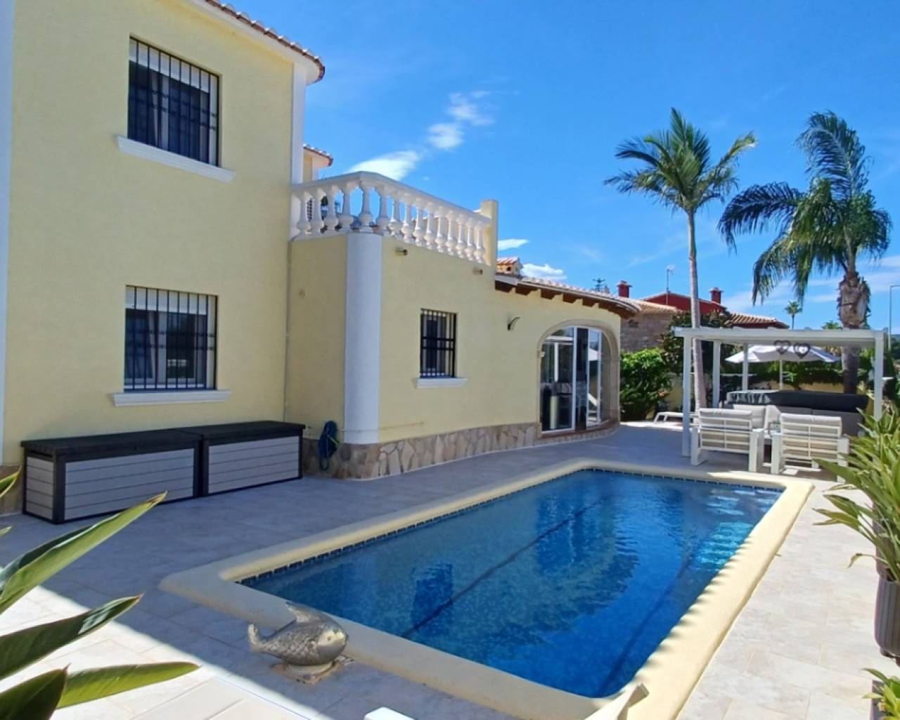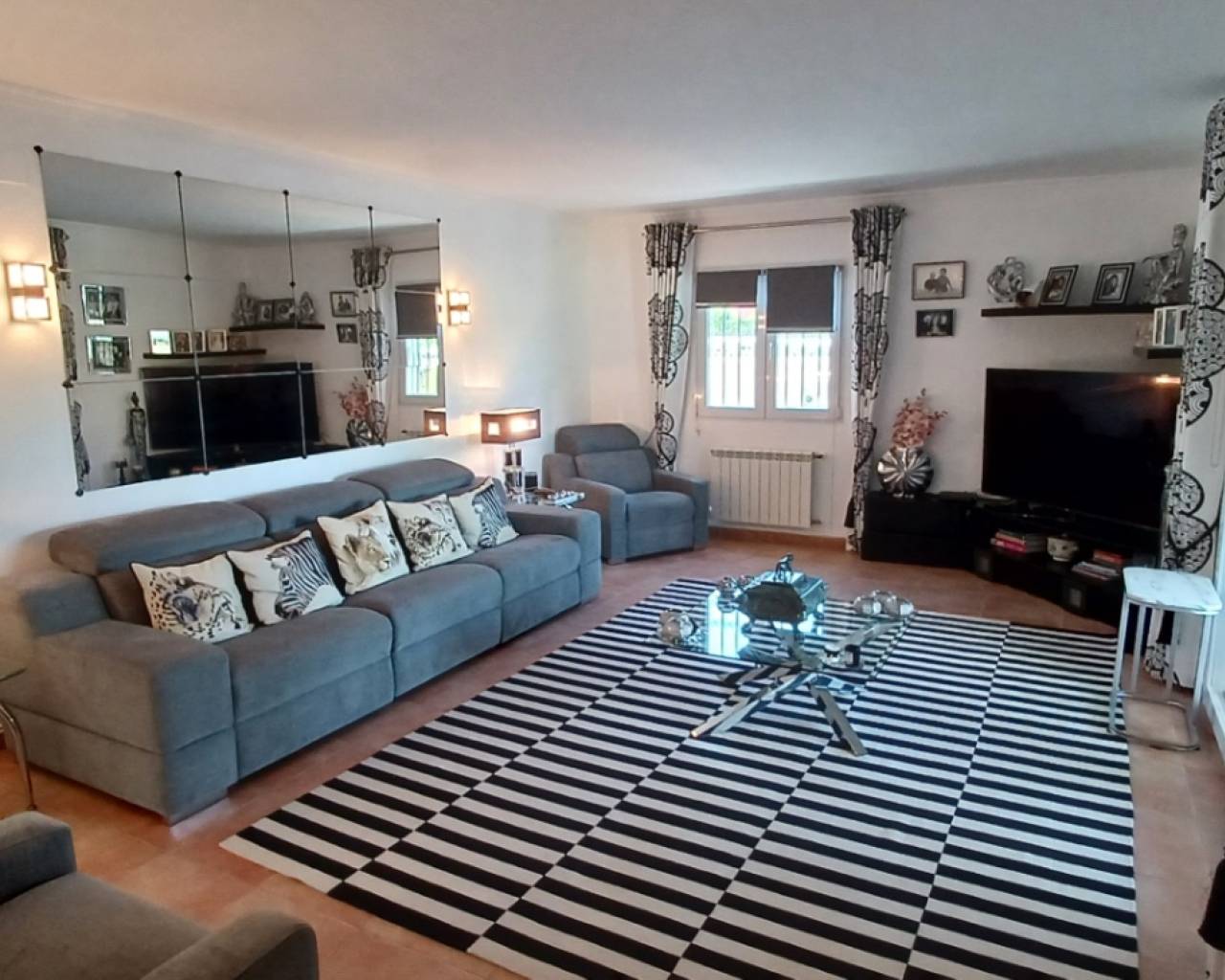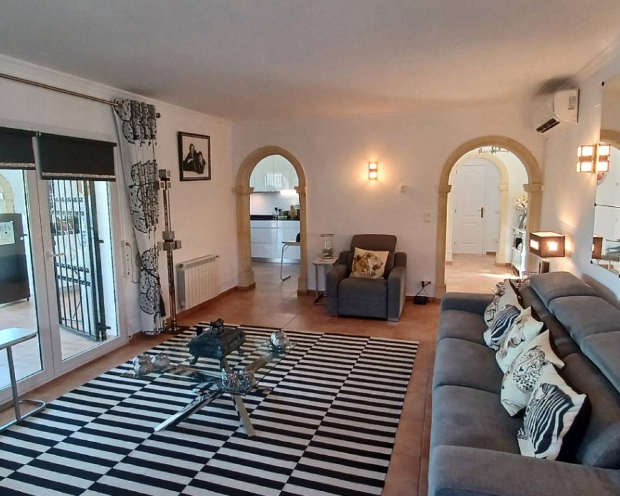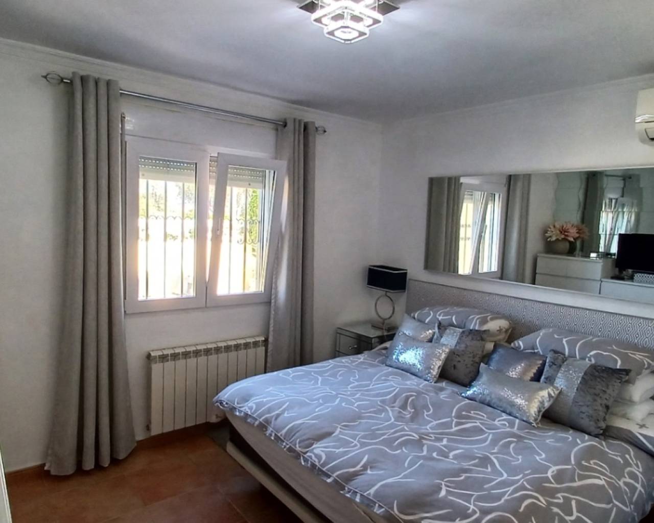 Charmante villa met zwembad en uitzicht op het Montgó-gebergte, gebouwd in 2002 op een vlakperceel op wandelafstand van het centrum van Denia en alle voorzieningen. Het huis beschikt over een compleet zonnesysteem voor elektriciteit en warm water. Er is airconditioning (warm en koud), dubbele beglazing en centrale verwarming op gas in de hele villa. Er is ook een verwarmd zwembad voor het hele jaar door, evenals een jacuzzi, overdekte en open terrassen, een zonneterras, een barbecueplek en een buitendouche. Op de begane grond bestaat het huis uit een grote woonkamer die leidt naar een overdekte serre/eetkamer met naya, een aparte, volledig uitgeruste keuken, twee tweepersoonsslaapkamers met inbouwkasten en een badkamer met douche. Boven bevindt zich de master suite met een badkamer met douche, een woonkamer en een groot terras met een prachtig open uitzicht. Er is ook een garage en carport, en een prachtige, onderhoudsvriendelijke tuin met sinaasappel-, citroen- en mangobomen en bloeiende struiken.