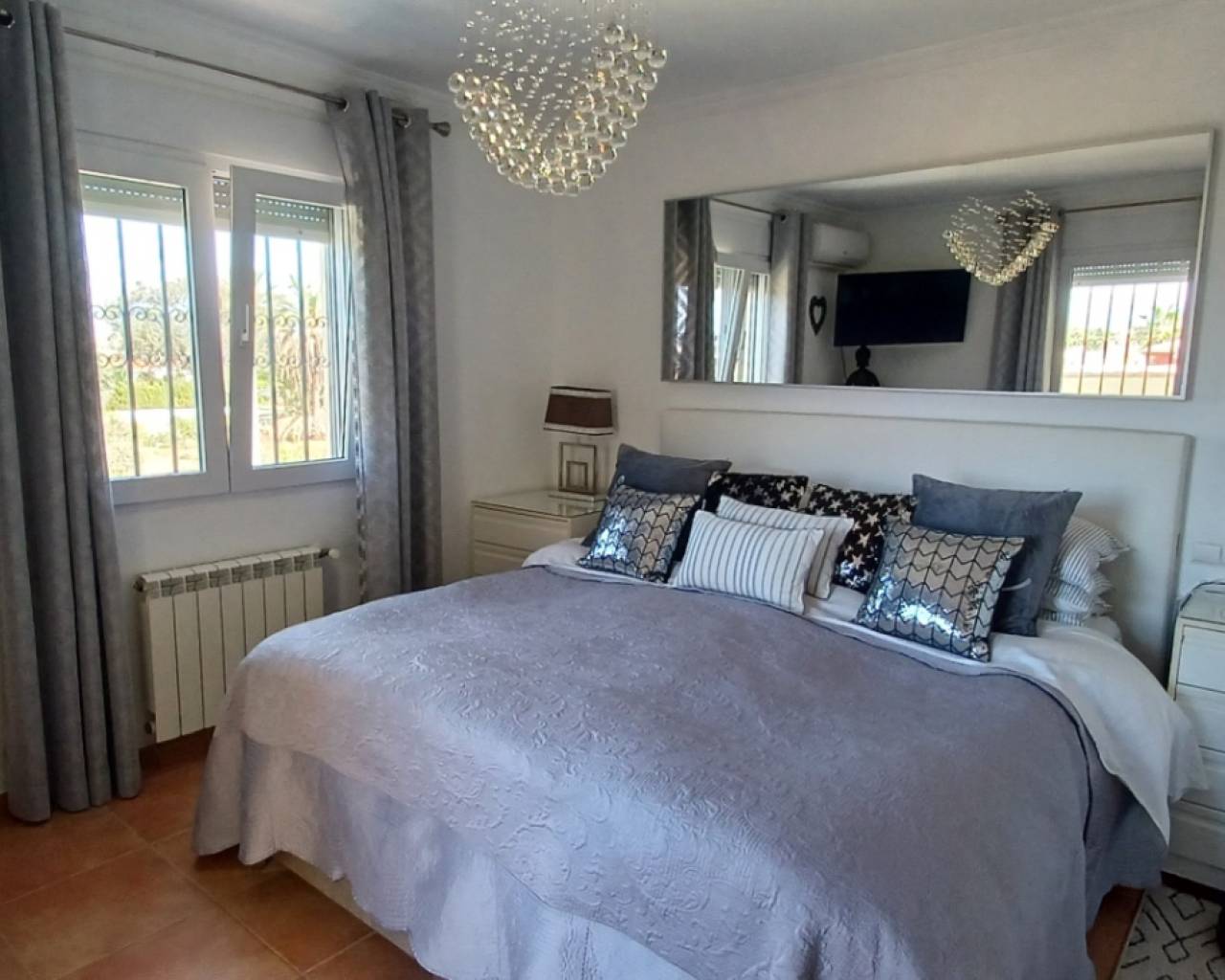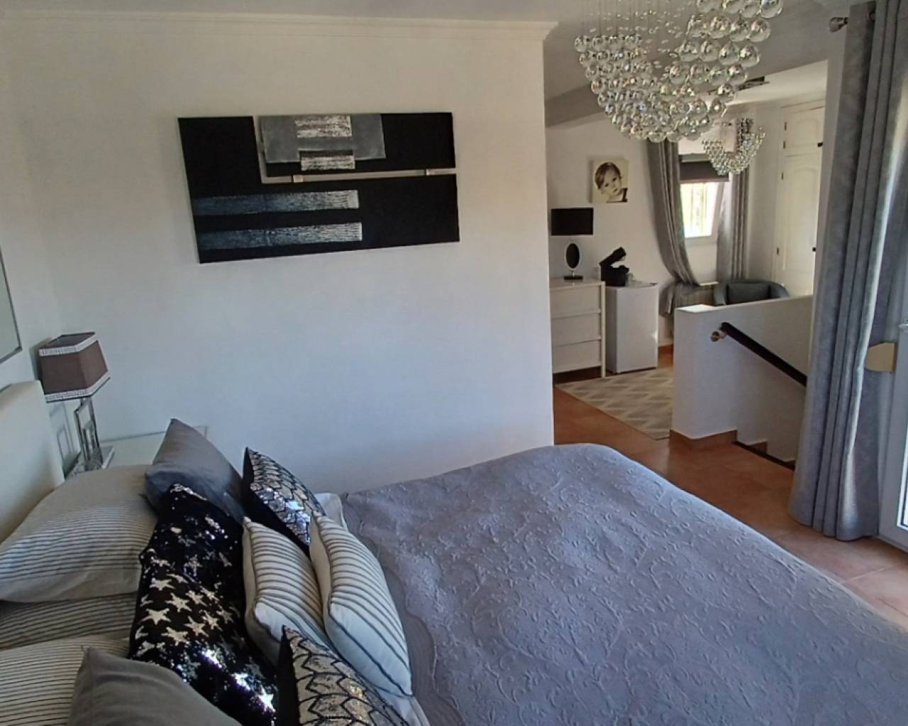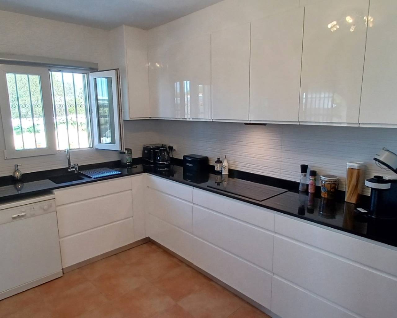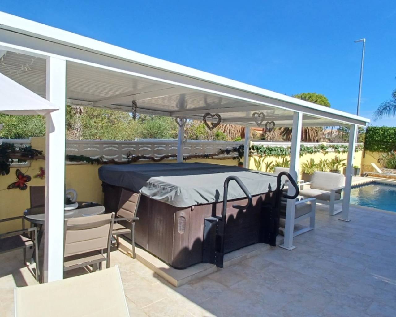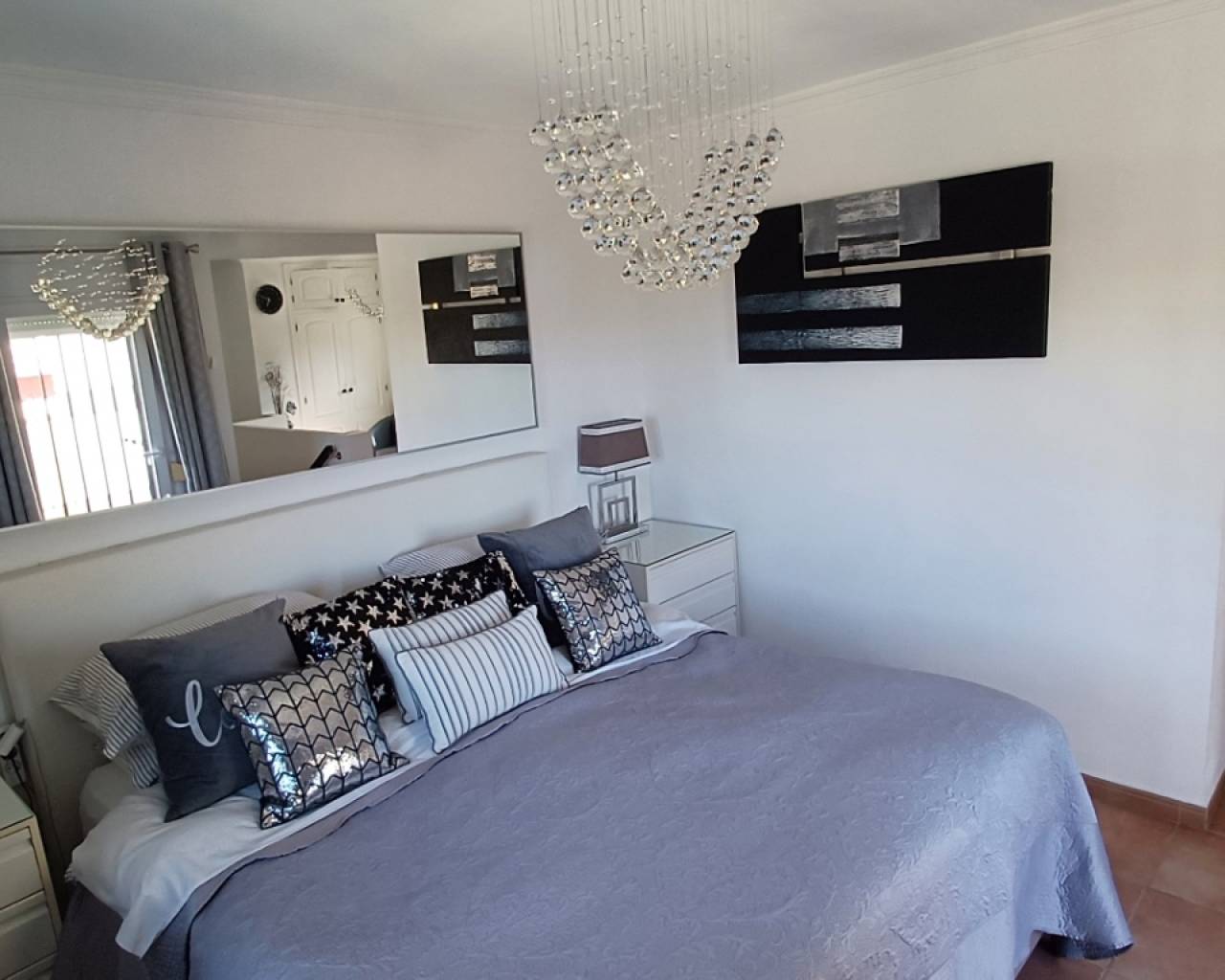 Charmante villa met zwembad en uitzicht op het Montgó-gebergte, gebouwd in 2002 op een vlakperceel op wandelafstand van het centrum van Denia en alle voorzieningen. Het huis beschikt over een compleet zonnesysteem voor elektriciteit en warm water. Er is airconditioning (warm en koud), dubbele beglazing en centrale verwarming op gas in de hele villa. Er is ook een verwarmd zwembad voor het hele jaar door, evenals een jacuzzi, overdekte en open terrassen, een zonneterras, een barbecueplek en een buitendouche. Op de begane grond bestaat het huis uit een grote woonkamer die leidt naar een overdekte serre/eetkamer met naya, een aparte, volledig uitgeruste keuken, twee tweepersoonsslaapkamers met inbouwkasten en een badkamer met douche. Boven bevindt zich de master suite met een badkamer met douche, een woonkamer en een groot terras met een prachtig open uitzicht. Er is ook een garage en carport, en een prachtige, onderhoudsvriendelijke tuin met sinaasappel-, citroen- en mangobomen en bloeiende struiken.