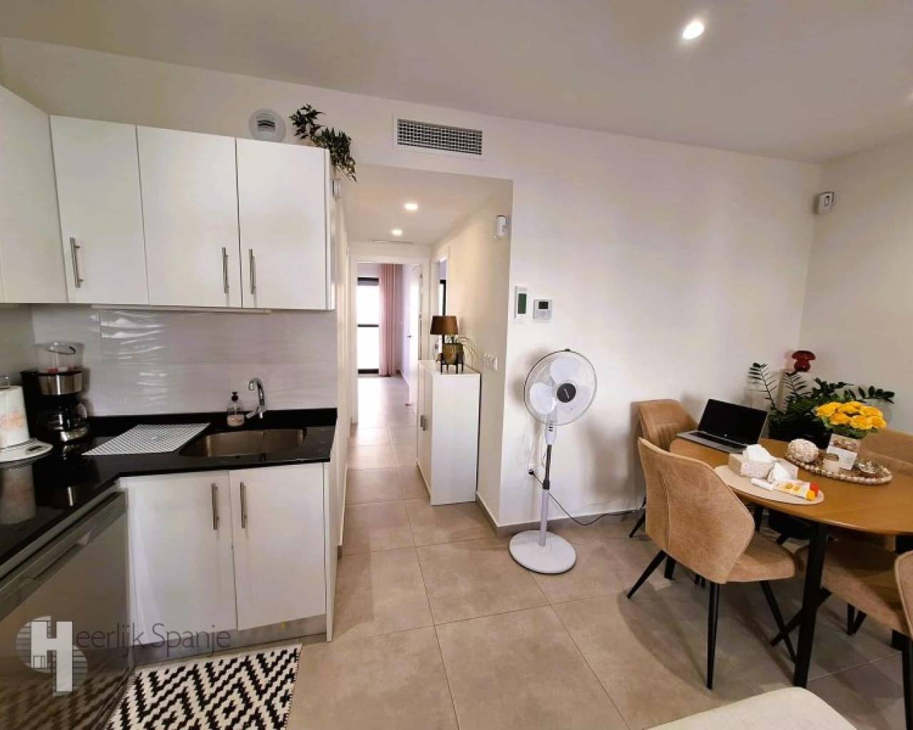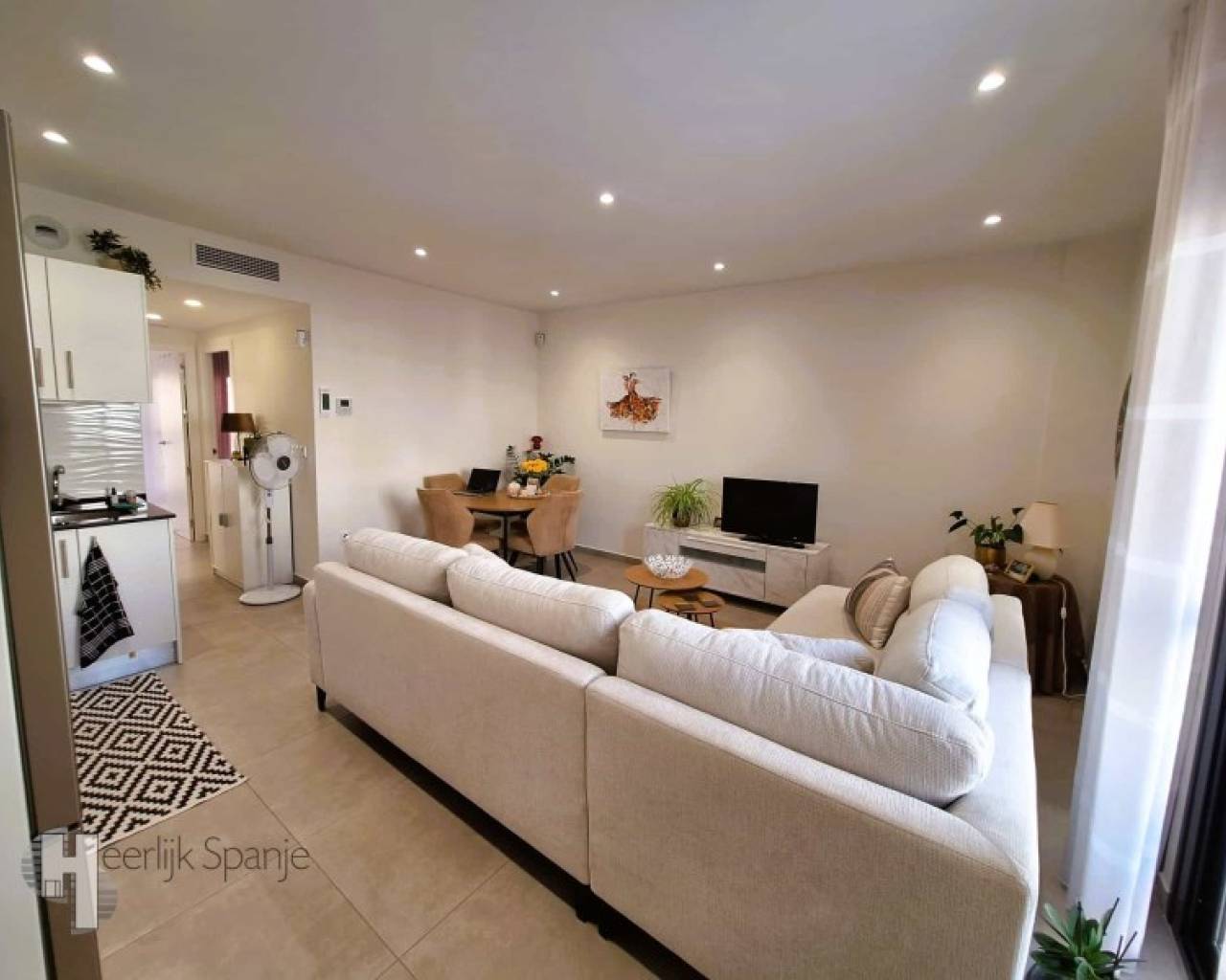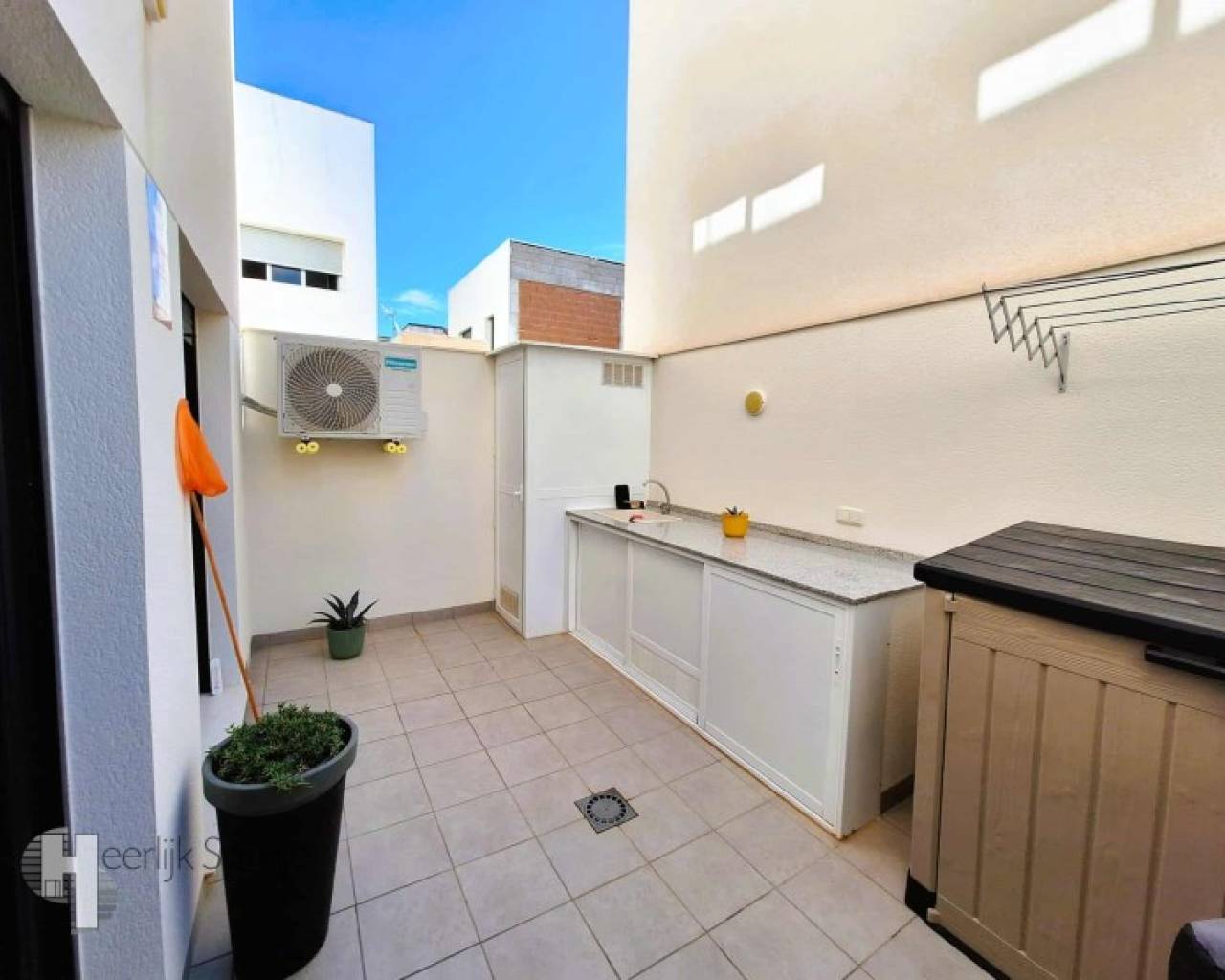In een rustige woonwijk van Lo Pagán vind je dit verzorgd gelijkvloers appartement met westgerichte buitenruimte en toegang tot een gemeenschappelijk zwembad. Het is gelegen op slechts 400 meter van het strand en het levendige centrum, ideaal voor wie wil genieten van het Spaanse buitenleven. Een aangename plek waar rust en bereikbaarheid hand in hand gaan. Een fijne plek om te overwinteren of om te verhuren - de toeristische licentie is al in orde. BINNEN: - Bebouwde oppervlakte: ca. 95 m² - 2 slaapkamers en 2 badkamers - Open leefruimte met keuken en veel licht - Dubbele beglazing, airconditioning voorzien - Nieuwbouw van 2020 - weinig onderhoud - Volledig gelijkvloers en instapklaar - Wordt gemeubileerd verkocht, inclusief wasmachine BUITEN: - Privéterras met westelijke oriëntatie - zon in de namiddag - Gemeenschappelijke tuin met zwembad - Rustige straat met parkeermogelijkheid in de buurt - Alles op één niveau, zonder trappen EXTRA INFO: - Volledige eigendom, geen schulden of beperkingen - Gemeenschappelijke kosten: €60/maand - IBI (gemeentebelasting): ca. €243/jaar - Lange termijn verhuur? Verhuurprijs rond €930/maand mogelijk OMGEVING: Je woont hier op een paar minuten wandelen van de zee, winkels, restaurants en de promenade van Lo Pagán. Dit charmante kustplaatsje maakt deel uit van San Pedro del Pinatar, in het noorden van de Costa Cálida. De sfeer is levendig maar gemoedelij, met lokale markten, tapasbars en het hele jaar door beweging, zonder druk massatoerisme. Lo Pagán staat bekend om z'n modderbaden, de warme lagune van de Mar Menor en het zachte microklimaat. Fietsen langs de salinas, wandelen langs de haven of simpelweg genieten op een terras Het leven is hier traag en zonnig. Met het Castelar College is er een trouwens een internationale school op wandelafstand. Murcia luchthaven ligt op 30 minuten rijden, Alicante op een uurtje. Een instapklare woning op een rustige locatie. Klaar voor persoonlijk gebruik of verhuur. #ref:HS_9