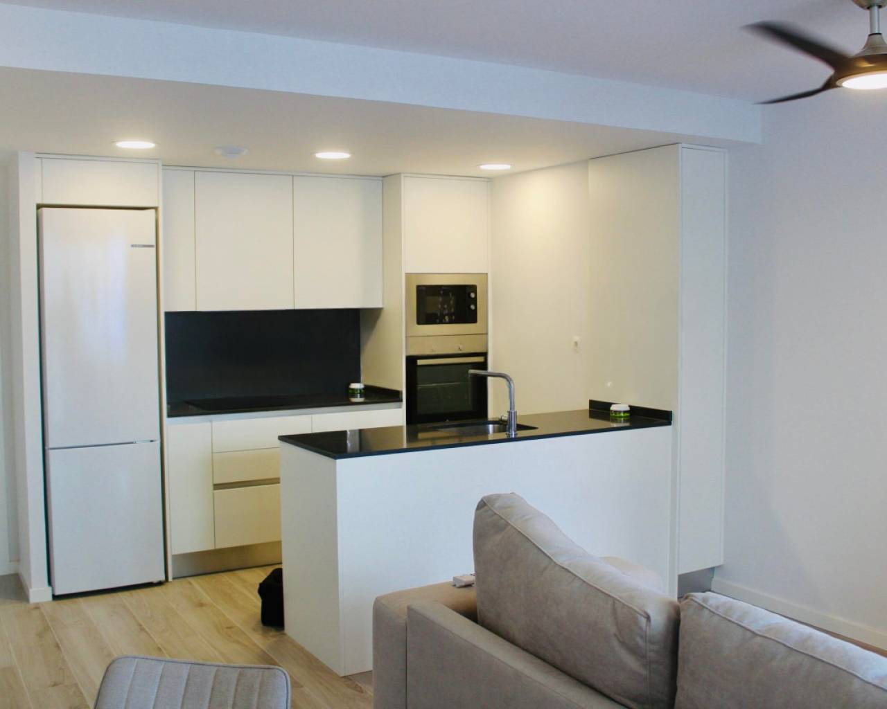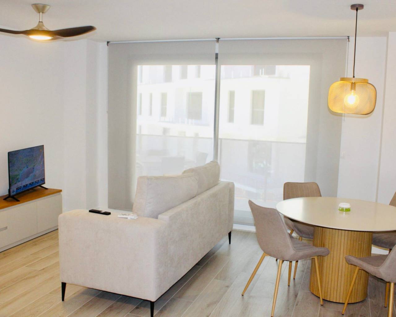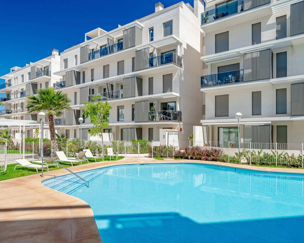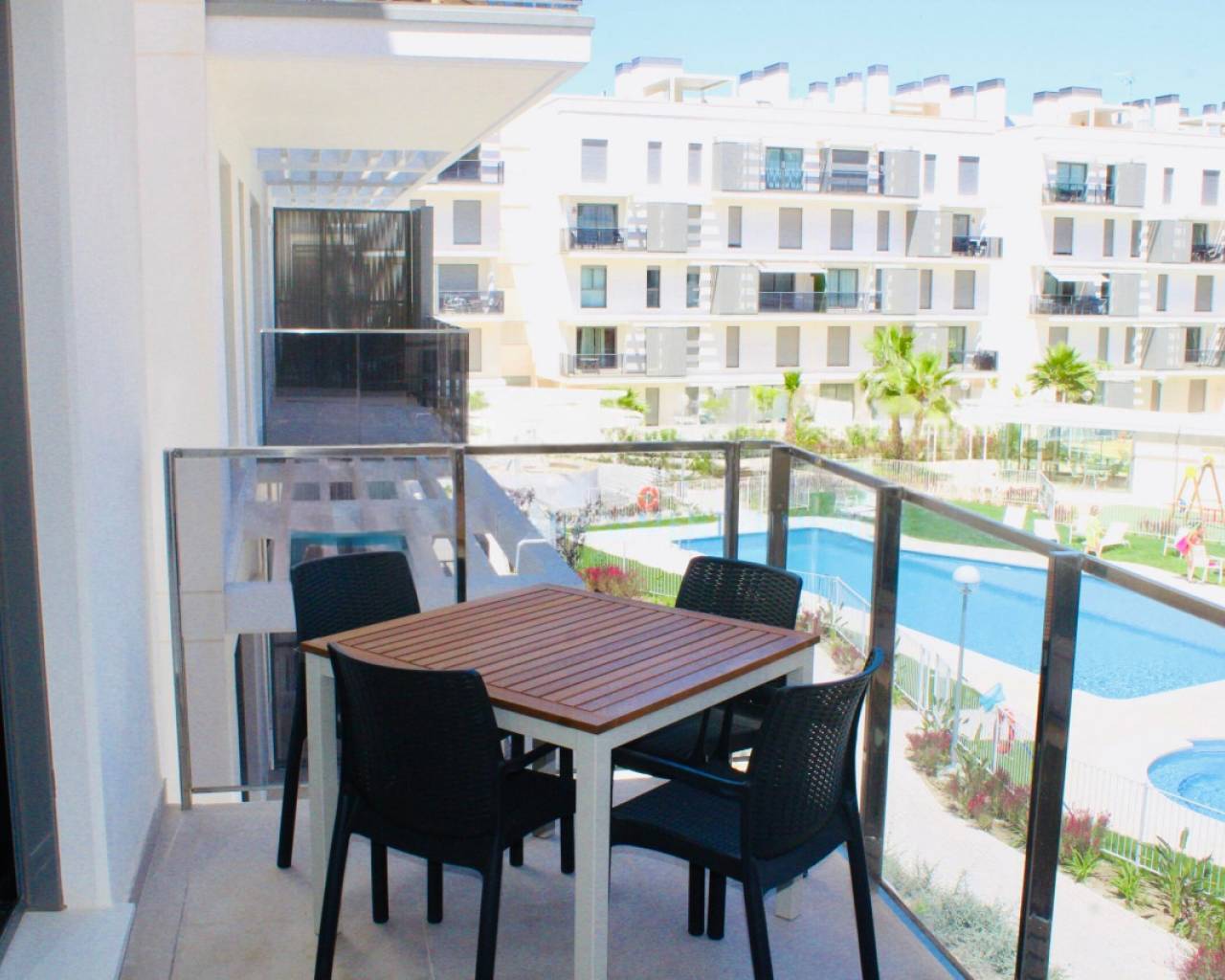 Modern recent gebouwd appartement (opgeleverd in maart 2025) gelegen in een mooi complex, op wandelafstand van de jachthaven, het centrum en strand van Denia. Het appartement ligt op de tweede verdieping, op het zuiden, en heeft een bebouwde oppervlakte van 88 m². Het bestaat uit een lichte woon-/eetkamer met een open keuken, volledig gemeubileerd en voorzien van moderne apparatuur. Vanuit het woongedeelte heeft men toegang tot een groot overdekt terras, ideaal om het hele jaar door van te genieten. Het appartement beschikt tevens over 2 slaapkamers met inbouwkasten en 2 badkamers, beide met hoogwaardige afwerking. Er is ook een aparte wasruimte en het appartement wordt verkocht inclusief parkeerplaats en berging in de ondergrondse garage.