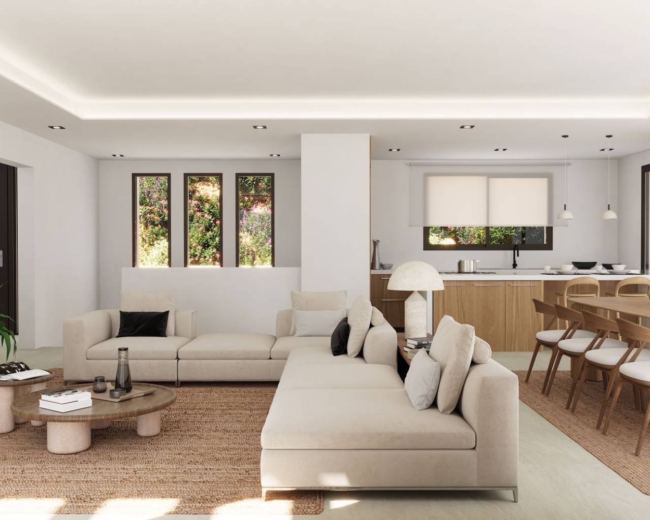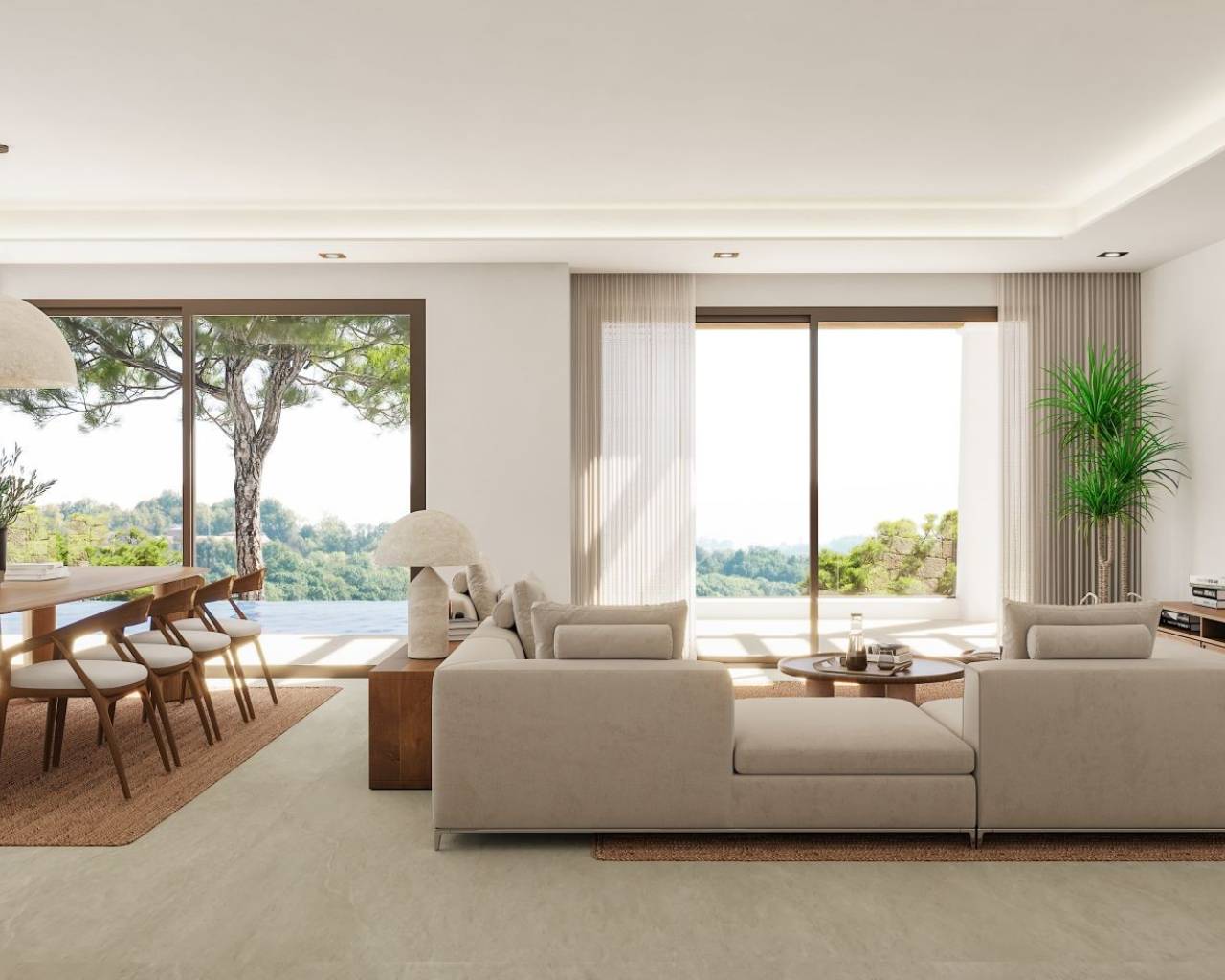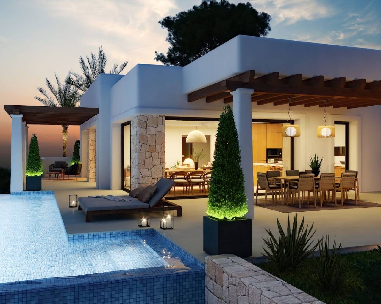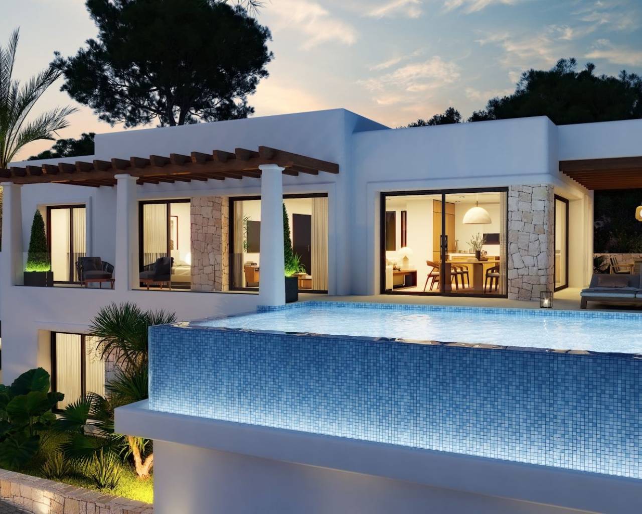 Moderne Villa naast Ifach Golf Club – Benissa Toplocatie Deze prachtige villa, gelegen in de rustige omgeving van de Ifach Golf Club in Benissa, biedt direct uitzicht op de golfbaan. Gelegen in een exclusieve woonwijk, combineert deze woning een luxueus ontwerp met een strategische locatie voor golfliefhebbers en wie op zoek is naar rust. Indeling en woonruimtes De woning is verdeeld over twee ruime verdiepingen met veel natuurlijk licht en een vloeiende indeling: Begane grond: Twee lichte slaapkamers, een complete badkamer, wasruimte en een ruime garage met plaats voor meerdere voertuigen. Bovenverdieping: Twee extra slaapkamers, waarvan één met en-suite badkamer, plus een gastentoilet en een moderne open keuken die verbonden is met een ruime woon-eetkamer met toegang tot het terras. Buitenleven De buitenruimte beschikt over een overdekt terras met pergola en een infinity pool die uitnodigt om te ontspannen en te genieten van het mediterrane klimaat. De groene omgeving zorgt voor privacy en een nauwe band met de natuur. Ontwerp en stijl Met zijn moderne architectuur, strakke lijnen en natuurlijke steendetails, past deze villa harmonieus in haar omgeving. De nabijheid van de golfbaan en het exclusieve ontwerp maken het de ideale keuze voor wie elegantie, comfort en een mediterrane levensstijl zoekt. Een luxe villa met uitzicht op de golfbaan en een modern design in een van de meest gewilde gebieden van Benissa – het perfecte evenwicht tussen rust, verfijning en natuur.