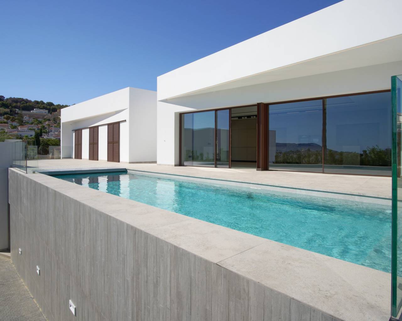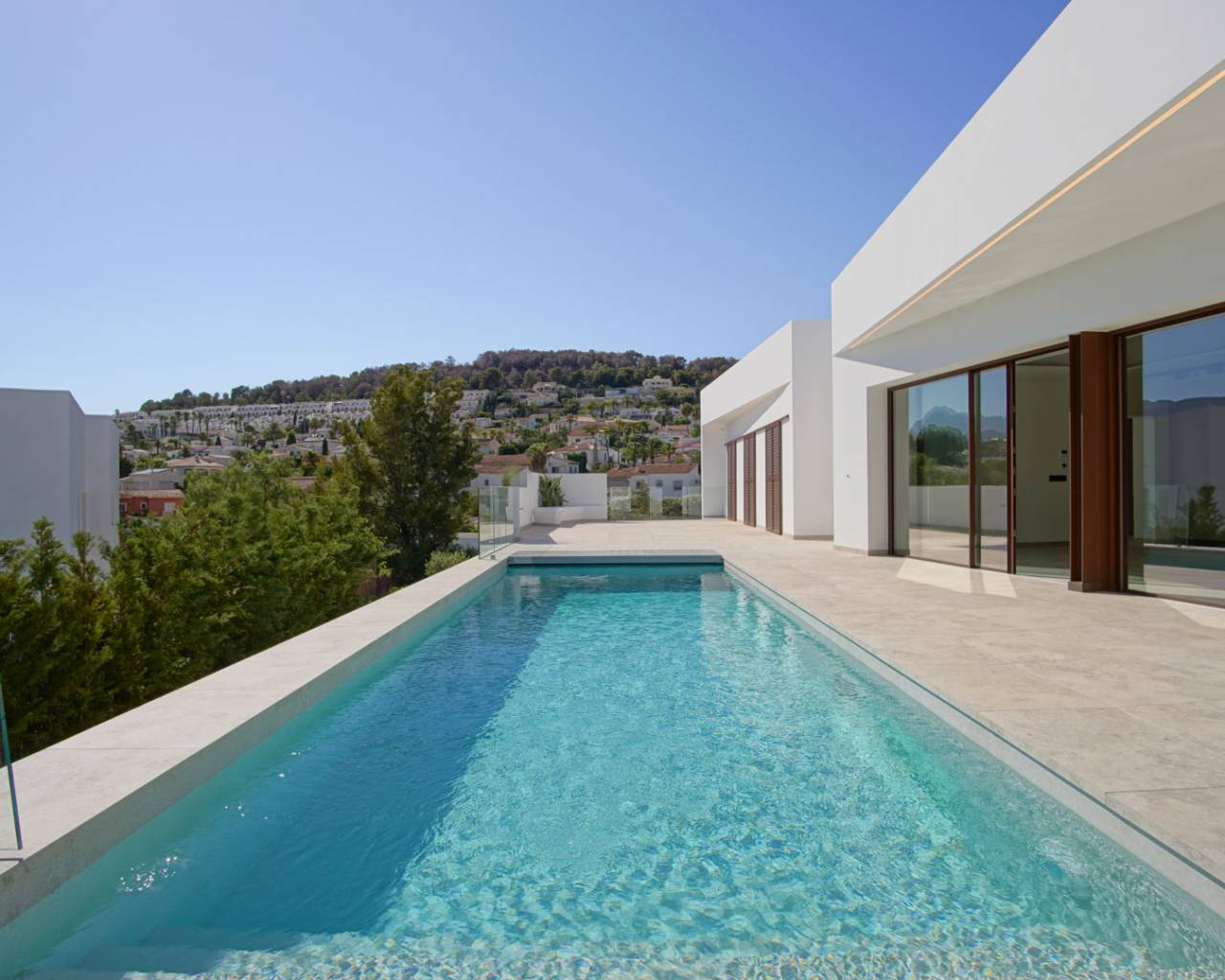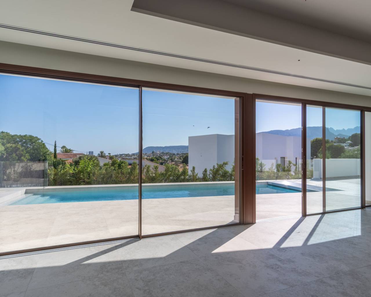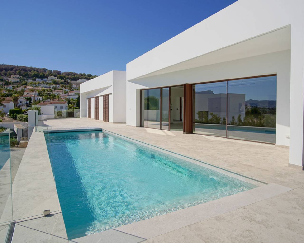 Exclusieve nieuwbouwvilla met een eigentijds design, gelegen in een van de meest gewilde woonwijken tussen Calpe en Moraira, op slechts 1,5 km van het strand van La Fustera en vlakbij de Les Basetes Yacht Club. De woning is verdeeld over twee verdiepingen met ruime, functionele ruimtes en hoogwaardige afwerkingen. Het beschikt over 4 slaapkamers (twee en suite), 3 badkamers, een gastentoilet, een grote woon-/eetkamer met een volledig uitgeruste open keuken, een wasruimte en een spectaculaire spa/recreatieruimte met pre-installatie voor een jacuzzi, een bar, een bioscoop en meer. Het exterieur beschikt over een verwarmd zwembad met RGB LED-verlichting en automatische afdekking, ruime terrassen en een onderhoudsarme tuin. Premium voorzieningen zijn onder andere vloerverwarming, airconditioning met ruimteregeling, thermisch onderbroken aluminium kozijnen, low-e glas, fotovoltaïsche systemen, een voorgeïnstalleerd alarmsysteem, LED-verlichting, gevoerde kledingkasten, gemotoriseerde jaloezieën en meer. Een onovertroffen locatie, dicht bij voorzieningen, charmante baaien en op slechts enkele minuten van Calpe, Moraira, golfbanen en watersporten. Een villa ontworpen om in luxe en comfort te genieten van de mediterrane levensstijl.
