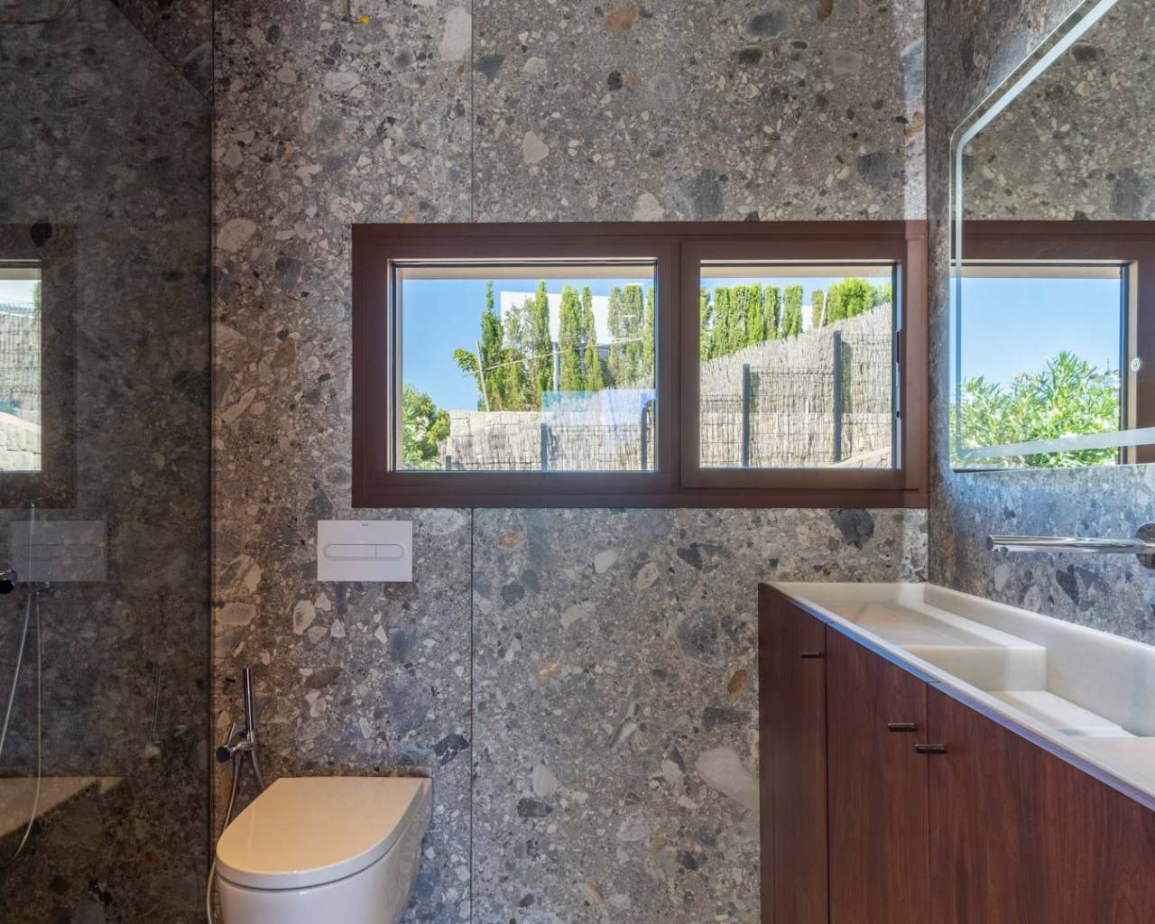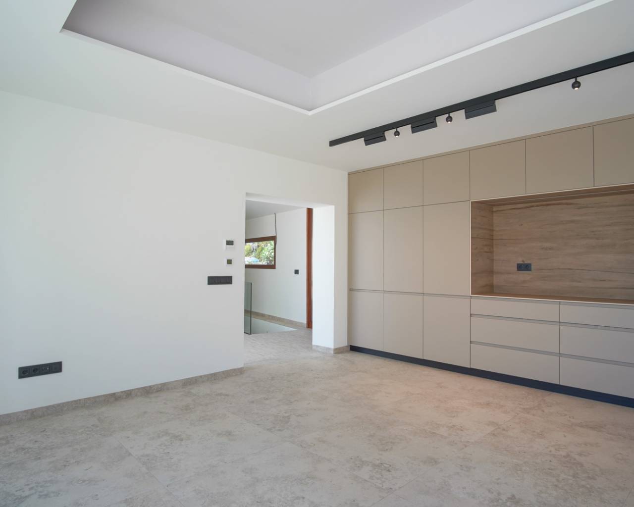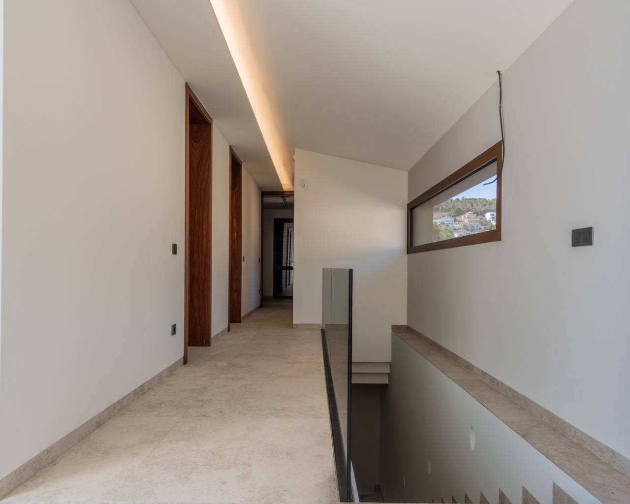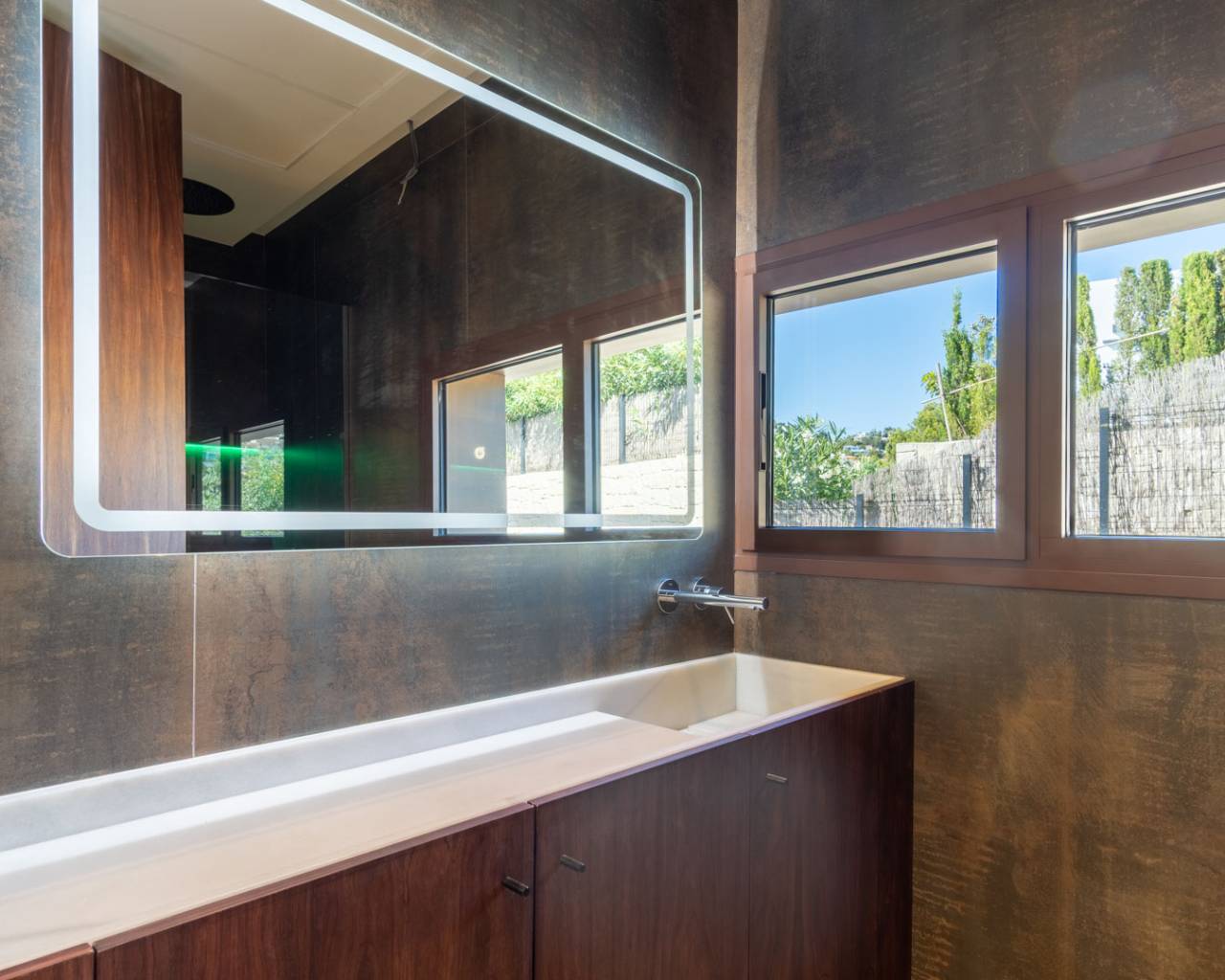 Exclusieve nieuwbouwvilla met een eigentijds design, gelegen in een van de meest gewilde woonwijken tussen Calpe en Moraira, op slechts 1,5 km van het strand van La Fustera en vlakbij de Les Basetes Yacht Club. De woning is verdeeld over twee verdiepingen met ruime, functionele ruimtes en hoogwaardige afwerkingen. Het beschikt over 4 slaapkamers (twee en suite), 3 badkamers, een gastentoilet, een grote woon-/eetkamer met een volledig uitgeruste open keuken, een wasruimte en een spectaculaire spa/recreatieruimte met pre-installatie voor een jacuzzi, een bar, een bioscoop en meer. Het exterieur beschikt over een verwarmd zwembad met RGB LED-verlichting en automatische afdekking, ruime terrassen en een onderhoudsarme tuin. Premium voorzieningen zijn onder andere vloerverwarming, airconditioning met ruimteregeling, thermisch onderbroken aluminium kozijnen, low-e glas, fotovoltaïsche systemen, een voorgeïnstalleerd alarmsysteem, LED-verlichting, gevoerde kledingkasten, gemotoriseerde jaloezieën en meer. Een onovertroffen locatie, dicht bij voorzieningen, charmante baaien en op slechts enkele minuten van Calpe, Moraira, golfbanen en watersporten. Een villa ontworpen om in luxe en comfort te genieten van de mediterrane levensstijl.