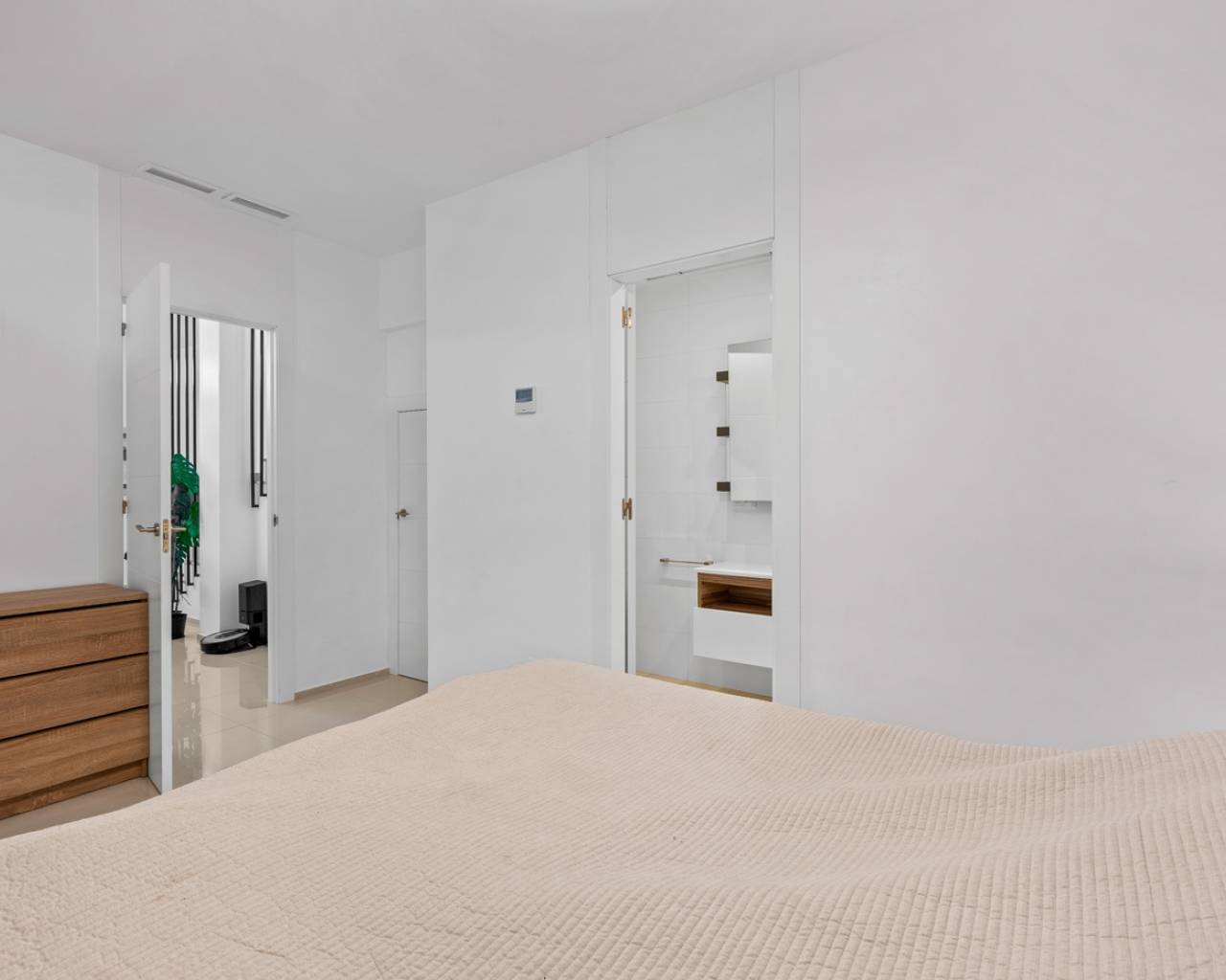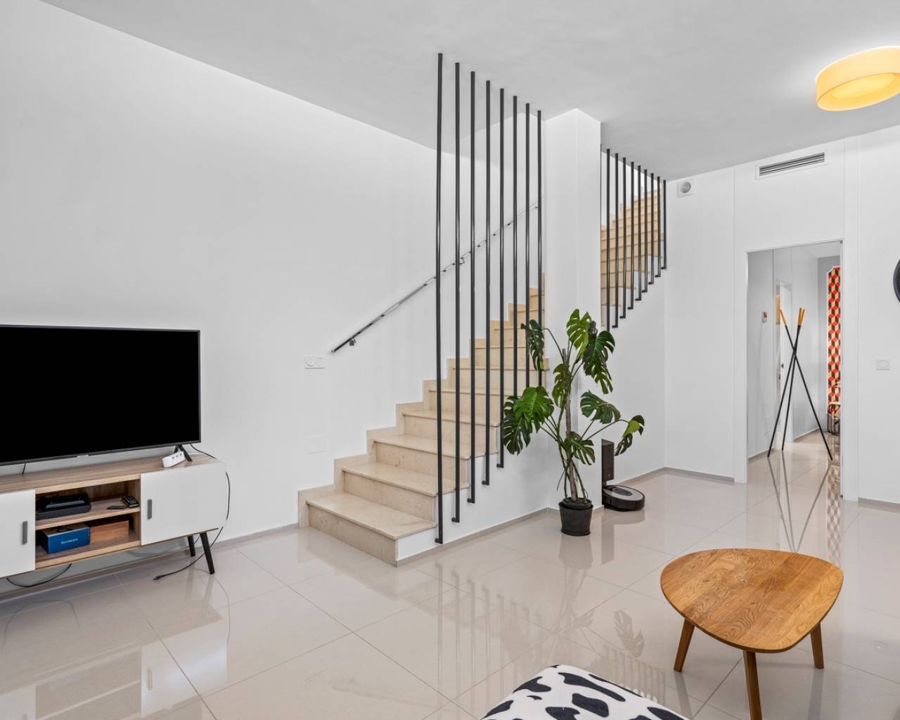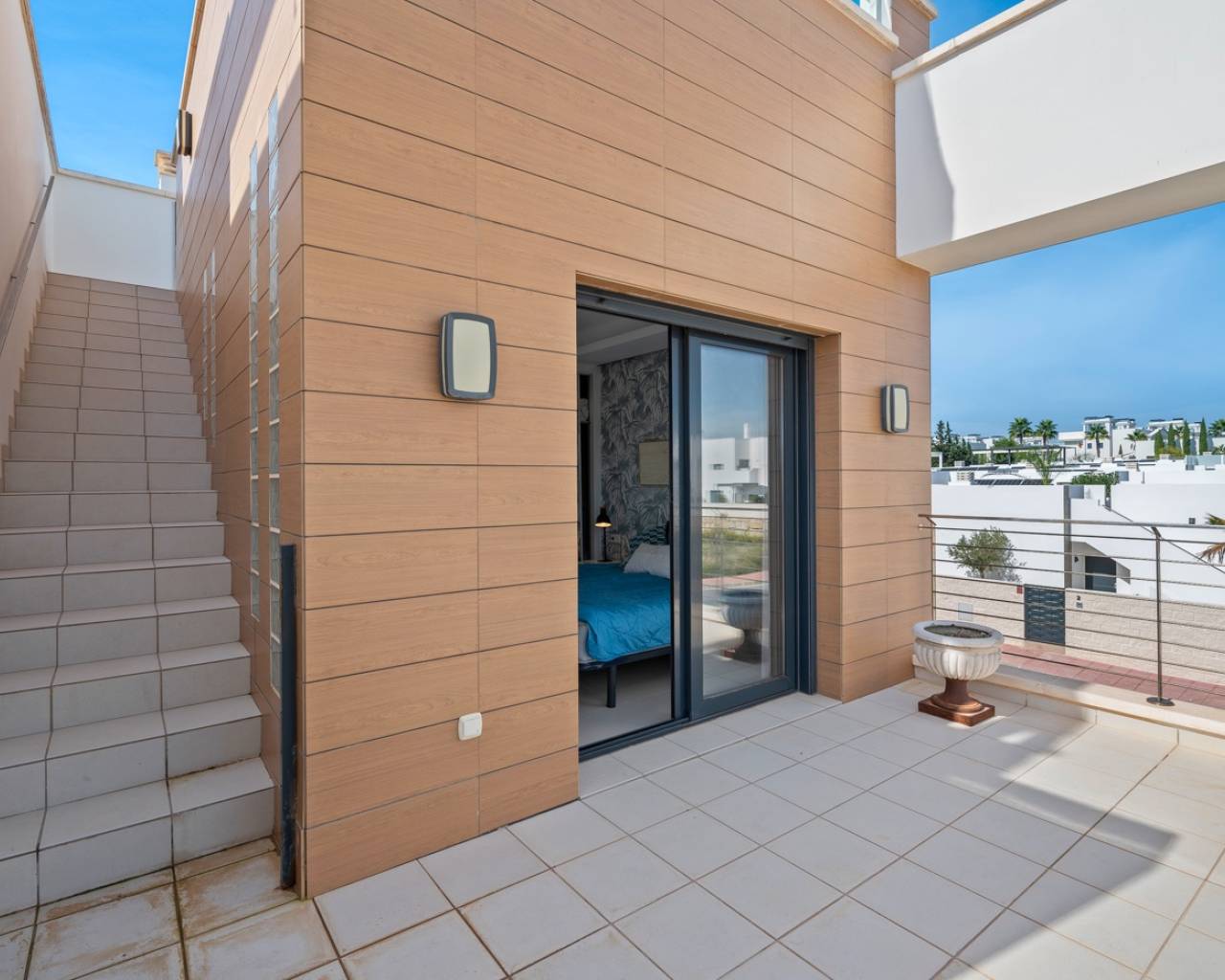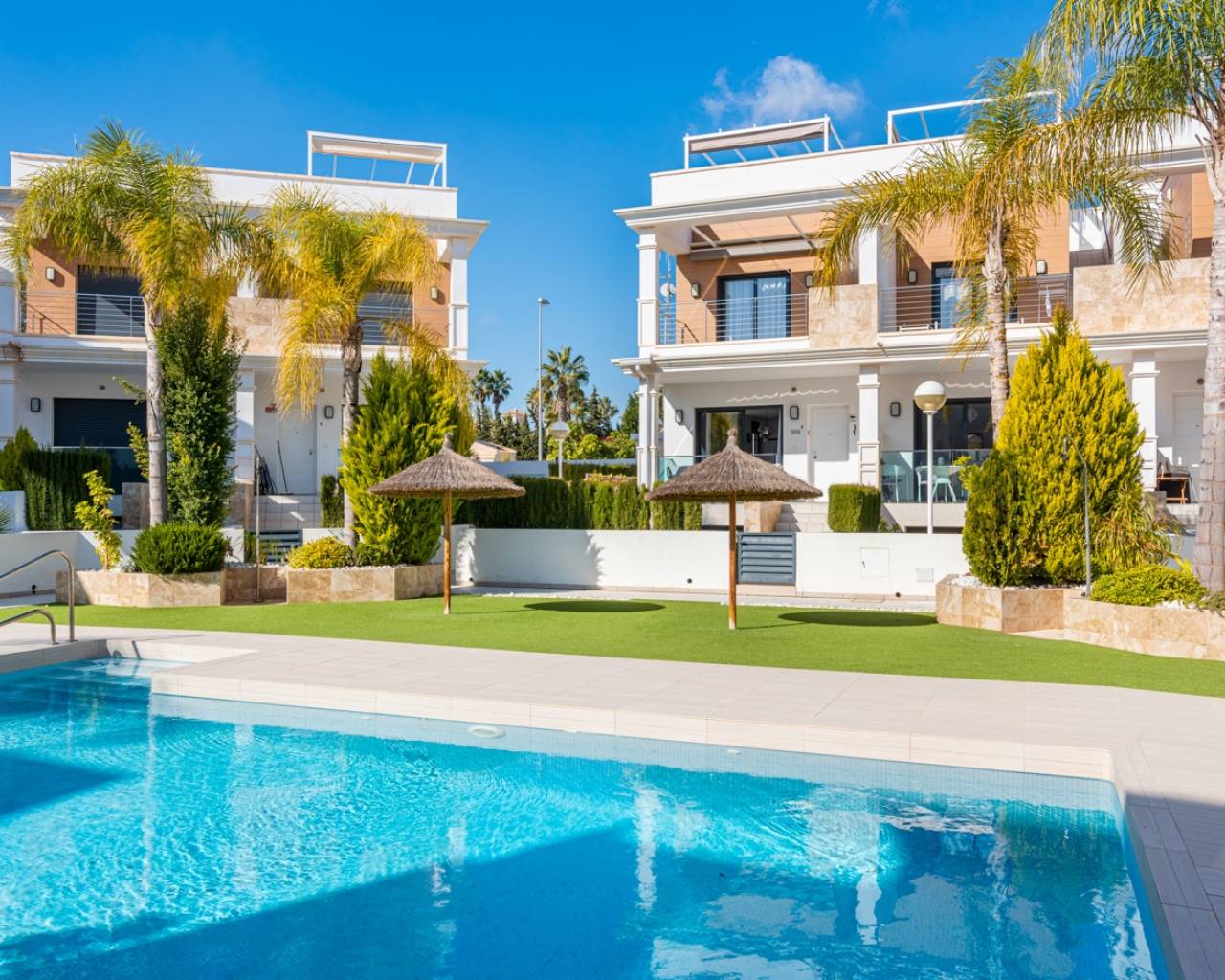 Deze charmante twee-onder-een-kapwoning ligt in een prestigieuze wijk van Ciudad Quesada, in een rustige, afgesloten gemeenschap die de bewoners toegang biedt tot een prachtig gemeenschappelijk zwembad en verzorgde groene ontspanningsruimtes. Het is de ideale keuze voor wie dagelijks comfort wil combineren met de mediterrane levensstijl en het vakantiegevoel het hele jaar door. Het interieur is ontworpen met oog voor functionaliteit en comfort. Op de begane grond bevindt zich een ruime, lichte woonkamer met een moderne open keuken. Vanuit zowel de woonkamer als de keuken is er directe toegang tot de privé-tuin – de perfecte plek om te genieten van een ontbijt in de ochtendzon of een diner bij zonsondergang in een ontspannen, mediterrane sfeer. Op deze verdieping bevinden zich ook een gastentoilet en een praktische bijkeuken. Het lichte souterrain biedt een extra slaapkamer met een eigen badkamer en een recreatieruimte die gebruikt kan worden als fitnessruimte, gastenverblijf of ontspanningsruimte. Op de eerste verdieping bevinden zich twee comfortabele slaapkamers met ingebouwde kasten en een stijlvolle badkamer. Elke slaapkamer heeft directe toegang tot een eigen privébalkon, waar je kunt genieten van het uitzicht op het groen en het natuurlijke licht gedurende de dag. Op het dak bevindt zich een ruim solarium – een privé-oase van rust, perfect om te zonnebaden, te lezen of te genieten van de warme Spaanse avonden onder de sterren. De woning is omgeven door een goed onderhouden privé-tuin waar je volop kunt genieten van het mediterrane klimaat en meer dan 300 dagen zon per jaar. De locatie biedt gemakkelijke toegang tot supermarkten, restaurants, cafés en alle benodigde voorzieningen. Deze woning combineert comfort, stijl en rust op een perfecte manier – ideaal als permanente woning of als investering voor vakantieverhuur. Volledig gemeubileerd en instapklaar, nodigt ze je uit om een nieuw hoofdstuk van je leven te beginnen onder de warme Spaanse zon.