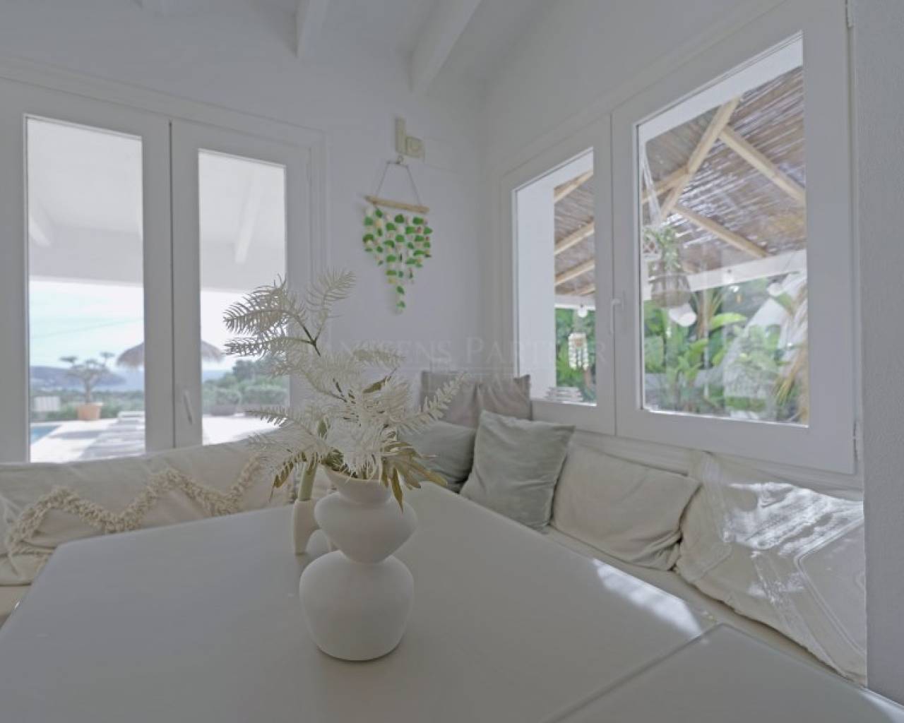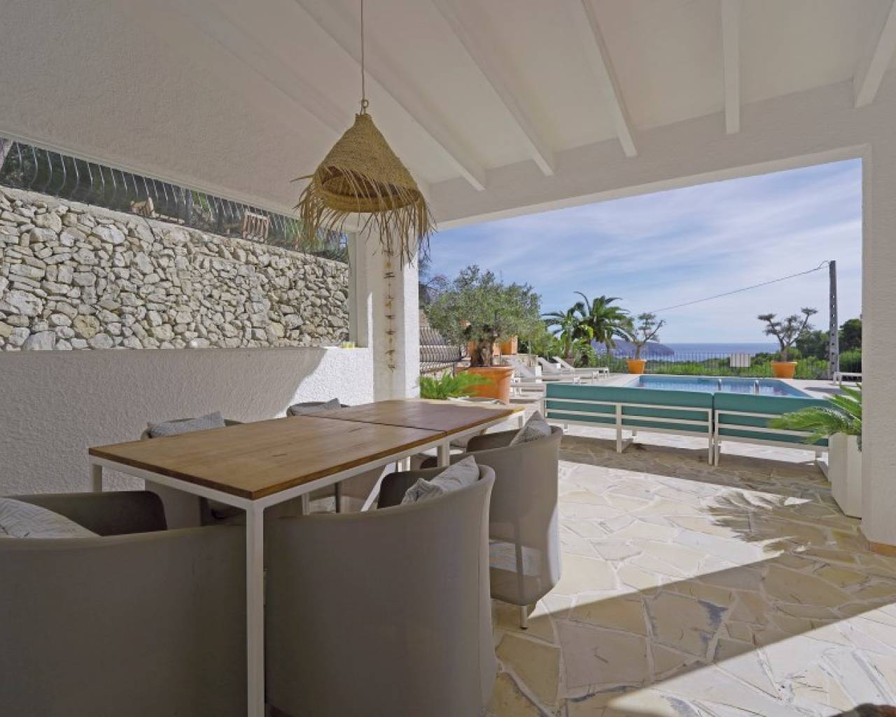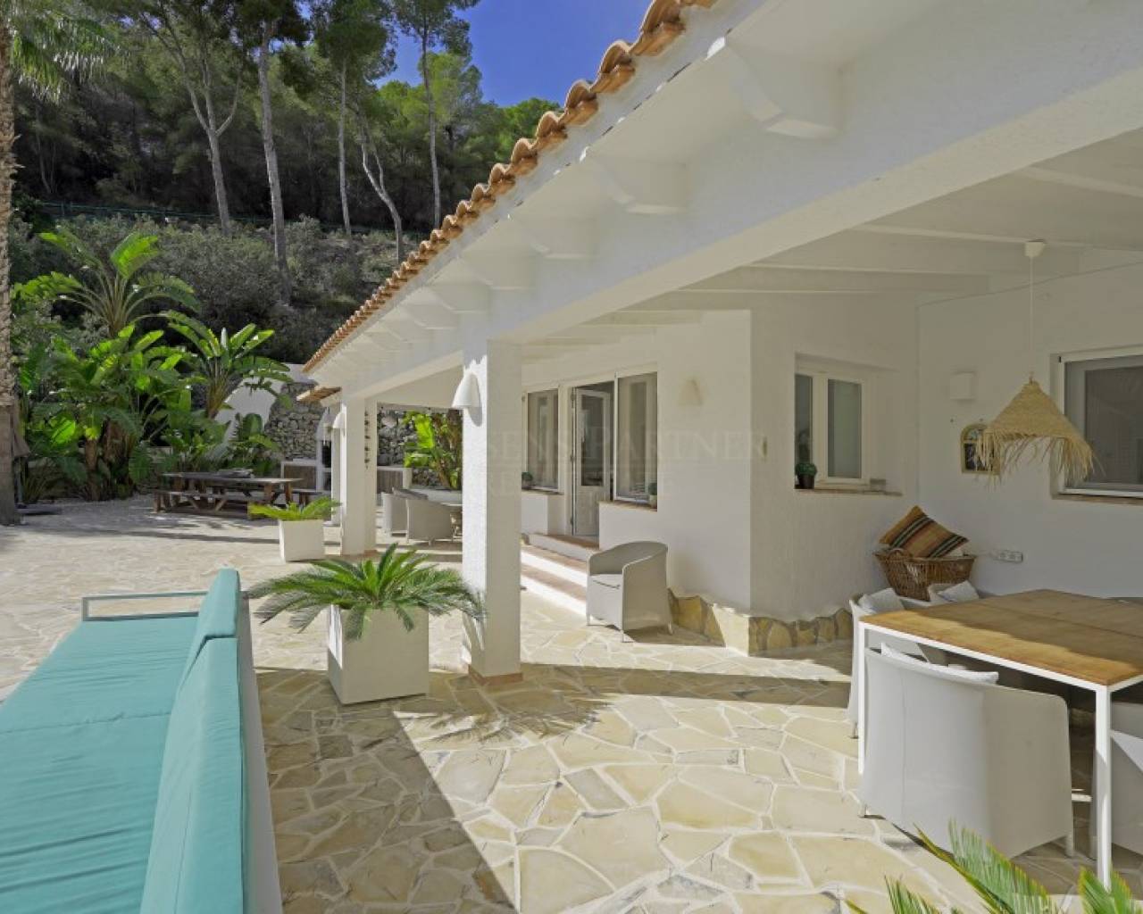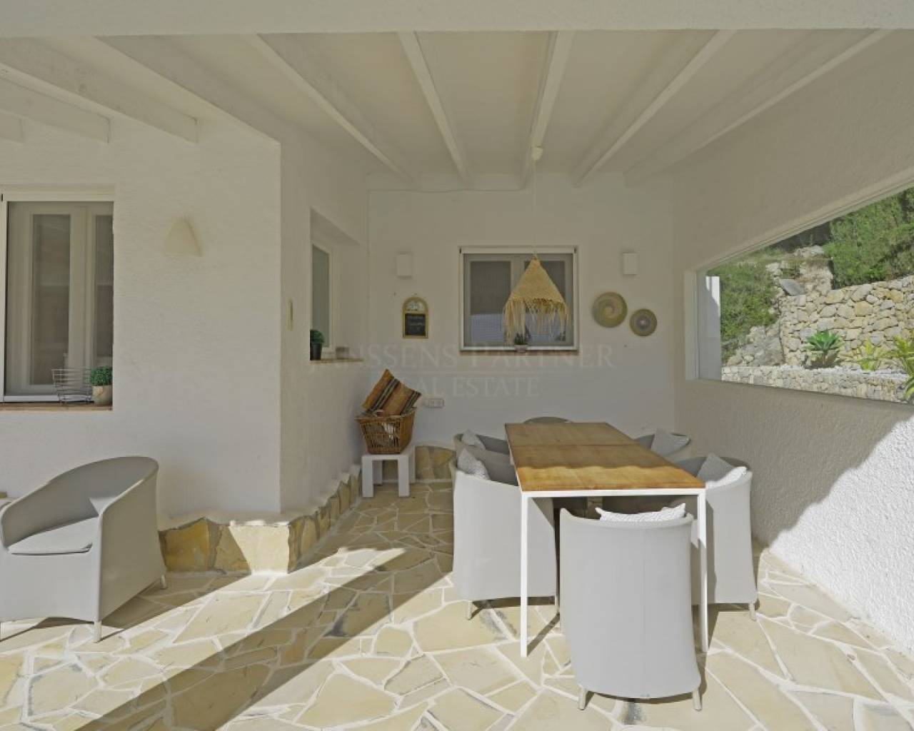 Gelegen in de heuvels van Moraira, tussen de zee en de bergen. Deze moderne woning biedt luxe en privacy, met een verwarmd privézwembad, een ruim terras en een adembenemend panoramisch uitzicht op zee. De villa beschikt over vier slaapkamers en twee badkamers, evenals een buitendouche. In 2025 is het terras volledig vernieuwd met flagstone natuurstenen, en er is een half-schaduw pergola aan het huis gebouwd, ideaal om buiten te ontspannen of te dineren in de zomer. Voor parkeermogelijkheden is er een carport beneden, waar twee auto's in de schaduw kunnen staan. De lichte woonkamer is voorzien van een open haard, een gezellige eethoek en een volledig uitgeruste moderne keuken. Het omheinde privéterrein biedt volop rust en veiligheid, met een zonneterras, een buitensalon en een barbecue voor sfeervol buiten dineren. De woning beschikt tevens over airconditioning. Villa Paulanni ligt in een rustige, groene heuvelachtige omgeving, waar u kunt genieten van de privacy en het panoramische uitzicht. Tegelijkertijd bent u slechts enkele minuten verwijderd van het centrum van Moraira, met zijn charmante winkels, restaurants en prachtige stranden. Villa Paulanni combineert modern comfort, stijl en een uitzonderlijke locatie, en is daarmee een ideale woning voor wie wil genieten van het mediterrane leven aan de Costa Blanca. De woning bedraagt 157m2 en bevindt zich op een plot van 1360m2. Tevens grenst het aan een tweede plot, wat 1610m2 bevat. #ref:1766