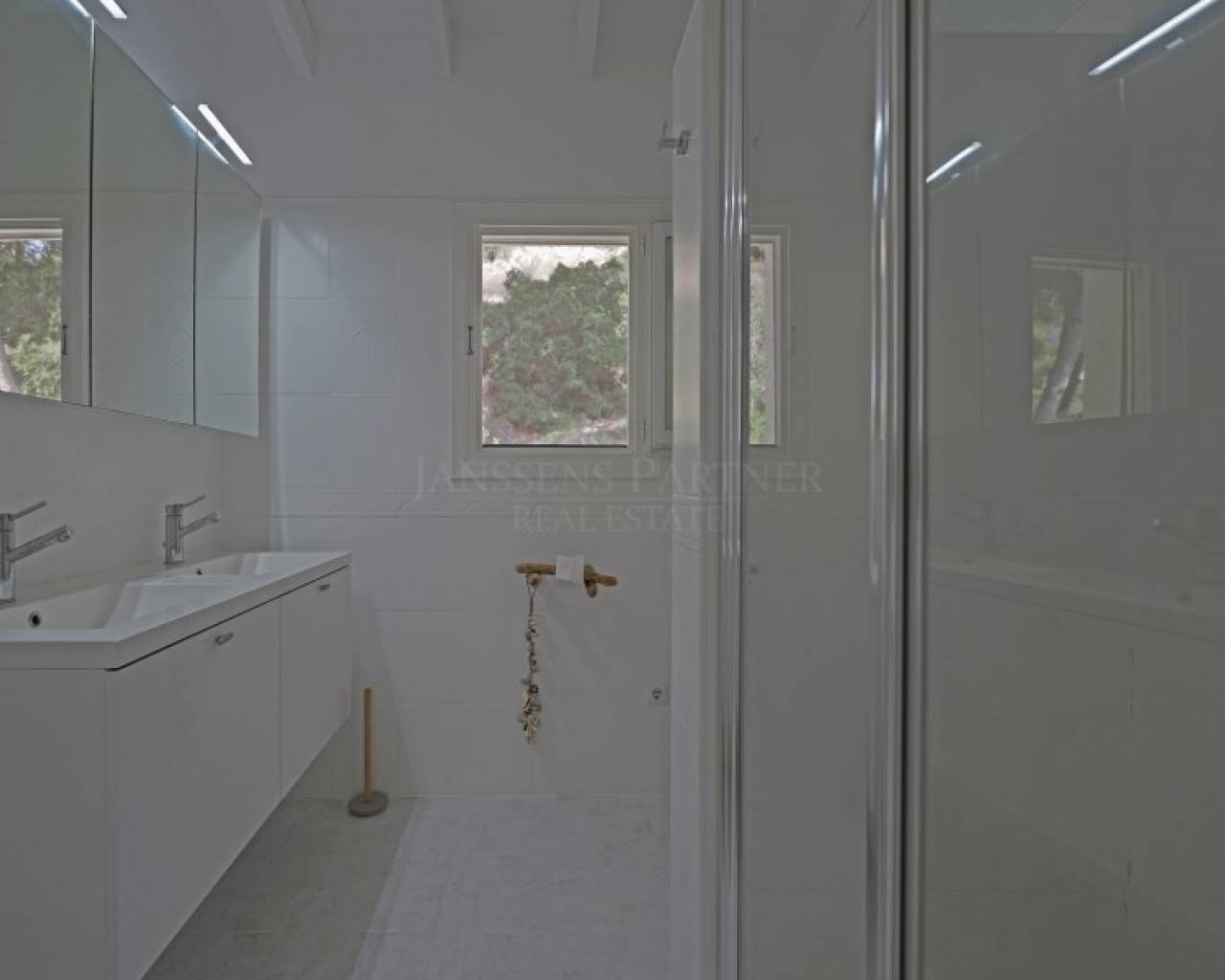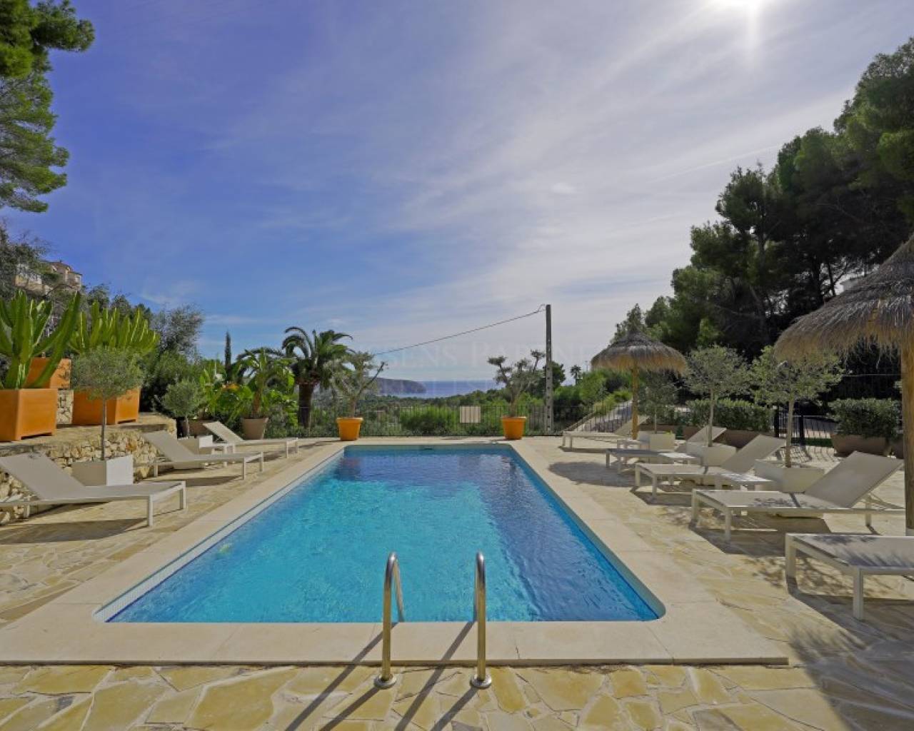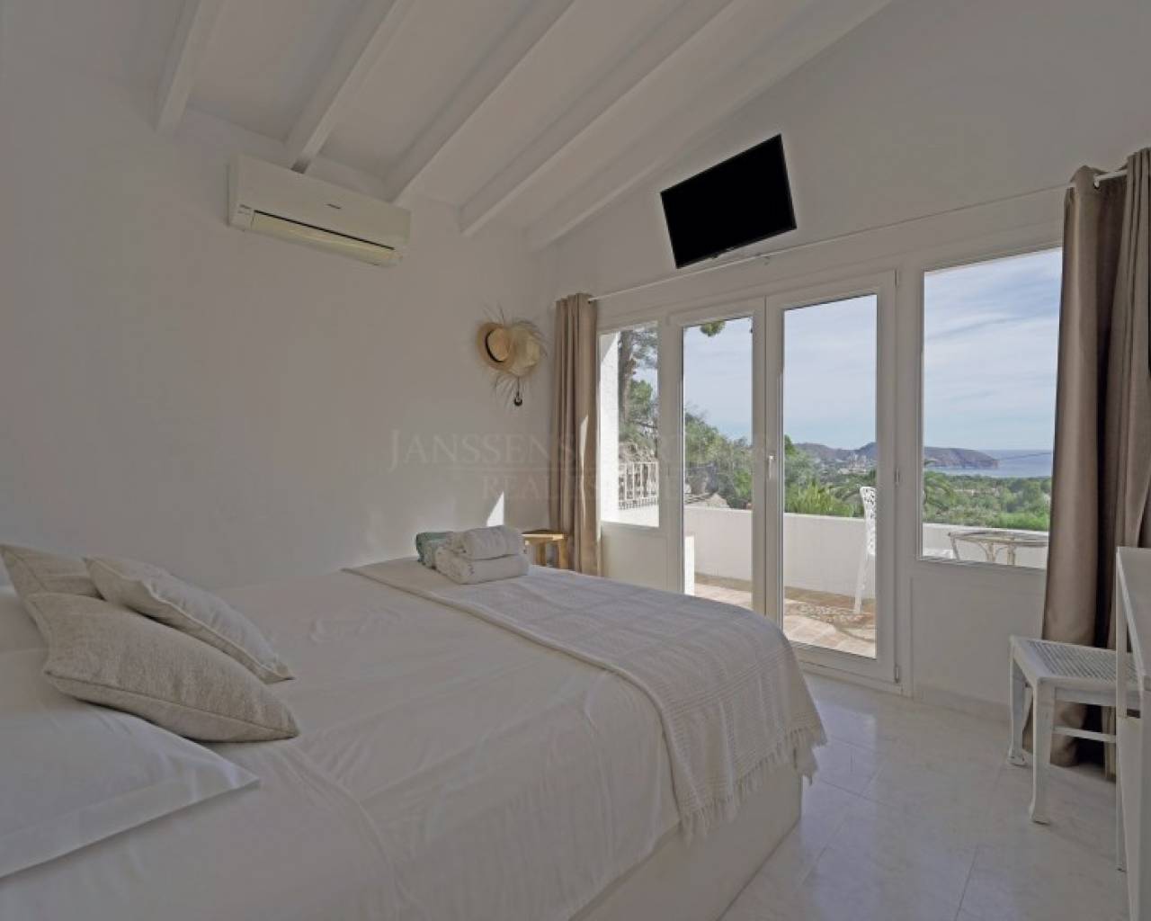 Gelegen in de heuvels van Moraira, tussen de zee en de bergen. Deze moderne woning biedt luxe en privacy, met een verwarmd privézwembad, een ruim terras en een adembenemend panoramisch uitzicht op zee. De villa beschikt over vier slaapkamers en twee badkamers, evenals een buitendouche. In 2025 is het terras volledig vernieuwd met flagstone natuurstenen, en er is een half-schaduw pergola aan het huis gebouwd, ideaal om buiten te ontspannen of te dineren in de zomer. Voor parkeermogelijkheden is er een carport beneden, waar twee auto's in de schaduw kunnen staan. De lichte woonkamer is voorzien van een open haard, een gezellige eethoek en een volledig uitgeruste moderne keuken. Het omheinde privéterrein biedt volop rust en veiligheid, met een zonneterras, een buitensalon en een barbecue voor sfeervol buiten dineren. De woning beschikt tevens over airconditioning. Villa Paulanni ligt in een rustige, groene heuvelachtige omgeving, waar u kunt genieten van de privacy en het panoramische uitzicht. Tegelijkertijd bent u slechts enkele minuten verwijderd van het centrum van Moraira, met zijn charmante winkels, restaurants en prachtige stranden. Villa Paulanni combineert modern comfort, stijl en een uitzonderlijke locatie, en is daarmee een ideale woning voor wie wil genieten van het mediterrane leven aan de Costa Blanca. De woning bedraagt 157m2 en bevindt zich op een plot van 1360m2. Tevens grenst het aan een tweede plot, wat 1610m2 bevat. #ref:1766