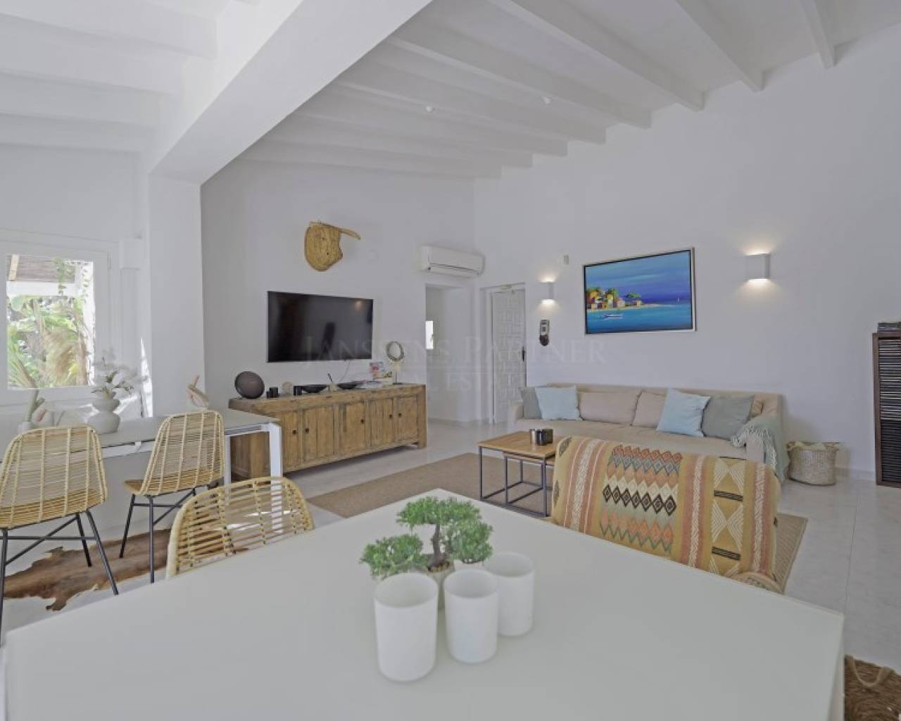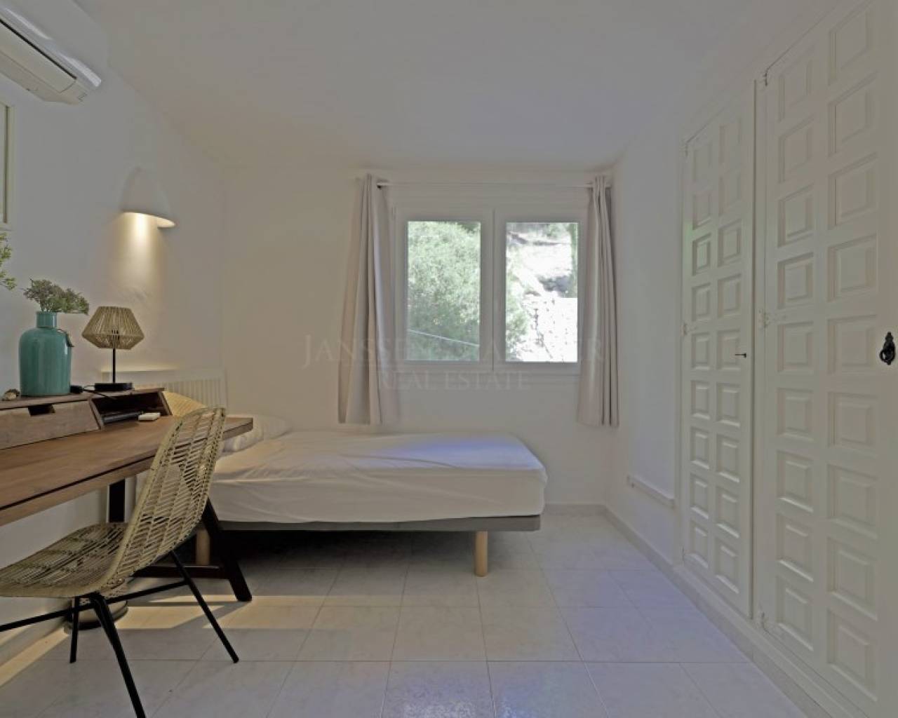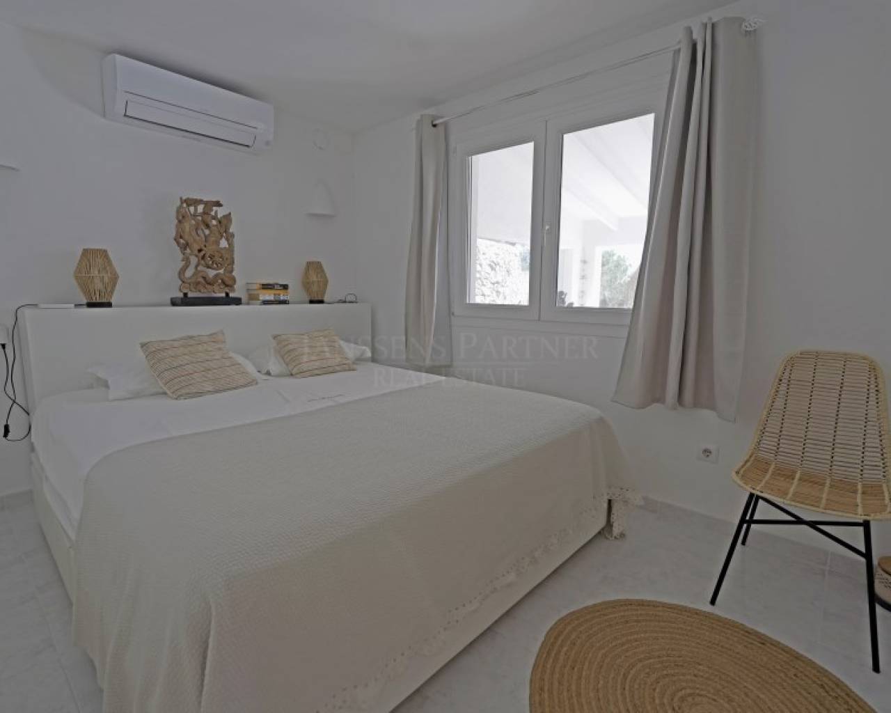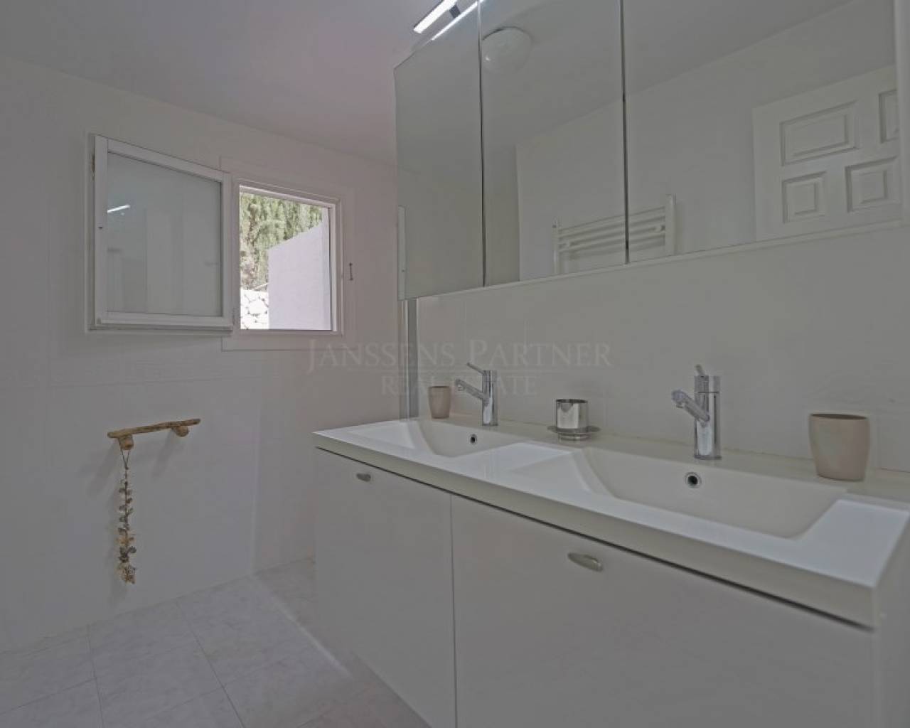 Gelegen in de heuvels van Moraira, tussen de zee en de bergen. Deze moderne woning biedt luxe en privacy, met een verwarmd privézwembad, een ruim terras en een adembenemend panoramisch uitzicht op zee. De villa beschikt over vier slaapkamers en twee badkamers, evenals een buitendouche. In 2025 is het terras volledig vernieuwd met flagstone natuurstenen, en er is een half-schaduw pergola aan het huis gebouwd, ideaal om buiten te ontspannen of te dineren in de zomer. Voor parkeermogelijkheden is er een carport beneden, waar twee auto's in de schaduw kunnen staan. De lichte woonkamer is voorzien van een open haard, een gezellige eethoek en een volledig uitgeruste moderne keuken. Het omheinde privéterrein biedt volop rust en veiligheid, met een zonneterras, een buitensalon en een barbecue voor sfeervol buiten dineren. De woning beschikt tevens over airconditioning. Villa Paulanni ligt in een rustige, groene heuvelachtige omgeving, waar u kunt genieten van de privacy en het panoramische uitzicht. Tegelijkertijd bent u slechts enkele minuten verwijderd van het centrum van Moraira, met zijn charmante winkels, restaurants en prachtige stranden. Villa Paulanni combineert modern comfort, stijl en een uitzonderlijke locatie, en is daarmee een ideale woning voor wie wil genieten van het mediterrane leven aan de Costa Blanca. De woning bedraagt 157m2 en bevindt zich op een plot van 1360m2. Tevens grenst het aan een tweede plot, wat 1610m2 bevat. #ref:1766