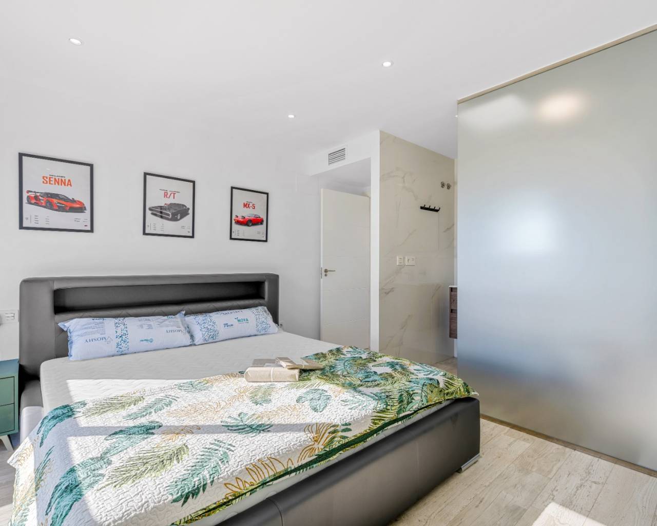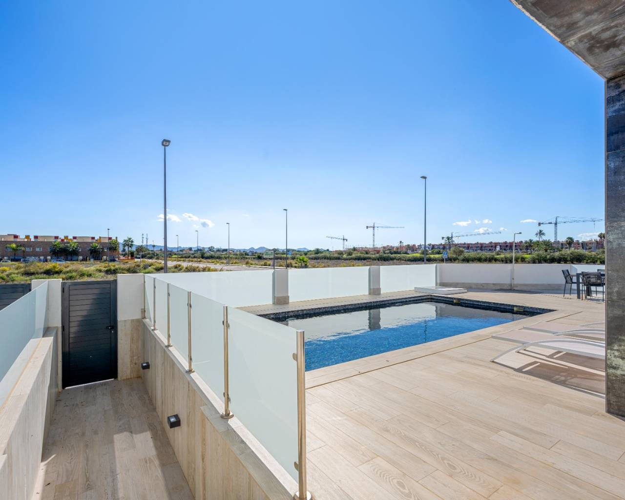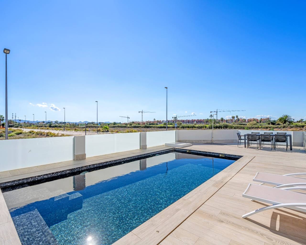Ontdek deze prachtige moderne villa met 4 slaapkamers en 3,5 badkamers, perfect gelegen tussen Serena Golf en de glinsterende kust van de Mar Menor. Deze volledig gemeubileerde woning combineert stijl, comfort en functionaliteit en biedt de ideale balans tussen luxe wonen en rust aan de kust. Met 192 m² bruikbare ruimte beschikt de villa over een lichte en luchtige open woonkamer die naadloos aansluit op het buitenterras en het zwembad. De zuidoostelijke ligging zorgt voor natuurlijk licht gedurende de hele dag, wat de elegante moderne afwerking en smaakvolle inrichting benadrukt. Het solarium op de bovenste verdieping (83 m²) biedt een spectaculaire ruimte om te ontspannen of gasten te ontvangen, met een panoramisch uitzicht op de golfbaan en het omliggende landschap. De enorme kelder is ontworpen voor ontspanning en gemak, met een bioscoopzaal, een biljarttafel en een garage, samen met een extra slaapkamer die comfortabel plaats biedt aan maximaal vier personen — perfect voor gasten of familiebijeenkomsten. Buiten kunt u genieten van een privézwembad, een eethoek en een groene zone, ideaal om te genieten van de mediterrane zon of rustige avonden. Deze villa ligt in een rustige omgeving met prachtig uitzicht en biedt privacy, terwijl het slechts enkele minuten verwijderd is van golfbanen, stranden, restaurants en alle lokale voorzieningen. Belangrijkste kenmerken: 4 slaapkamers, 3,5 badkamers 192 m² bebouwde oppervlakte + 83 m² dakterras Volledig gemeubileerd, klaar om te betrekken Privézwembad en aangelegde buitenruimte Ruime kelder met bioscoop, pooltafel en garage Zuidoostelijke ligging voor optimaal zonlicht Rustige locatie tussen Serena Golf & Mar Menor Deze villa is de perfecte woning voor wie op zoek is naar een moderne mediterrane levensstijl met een vleugje luxe en ontspanning.
