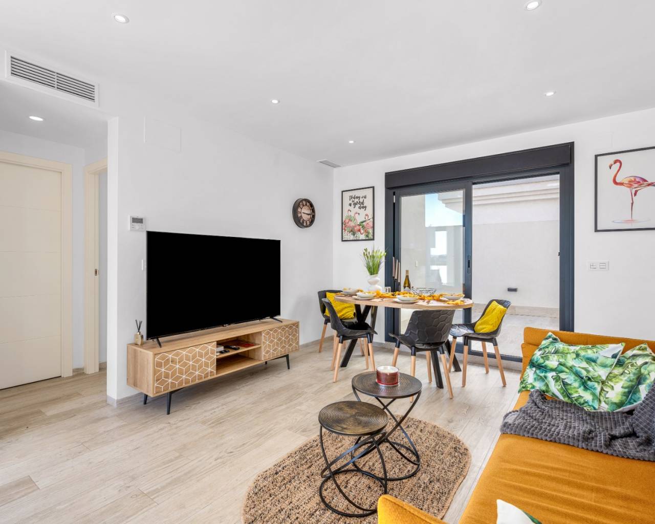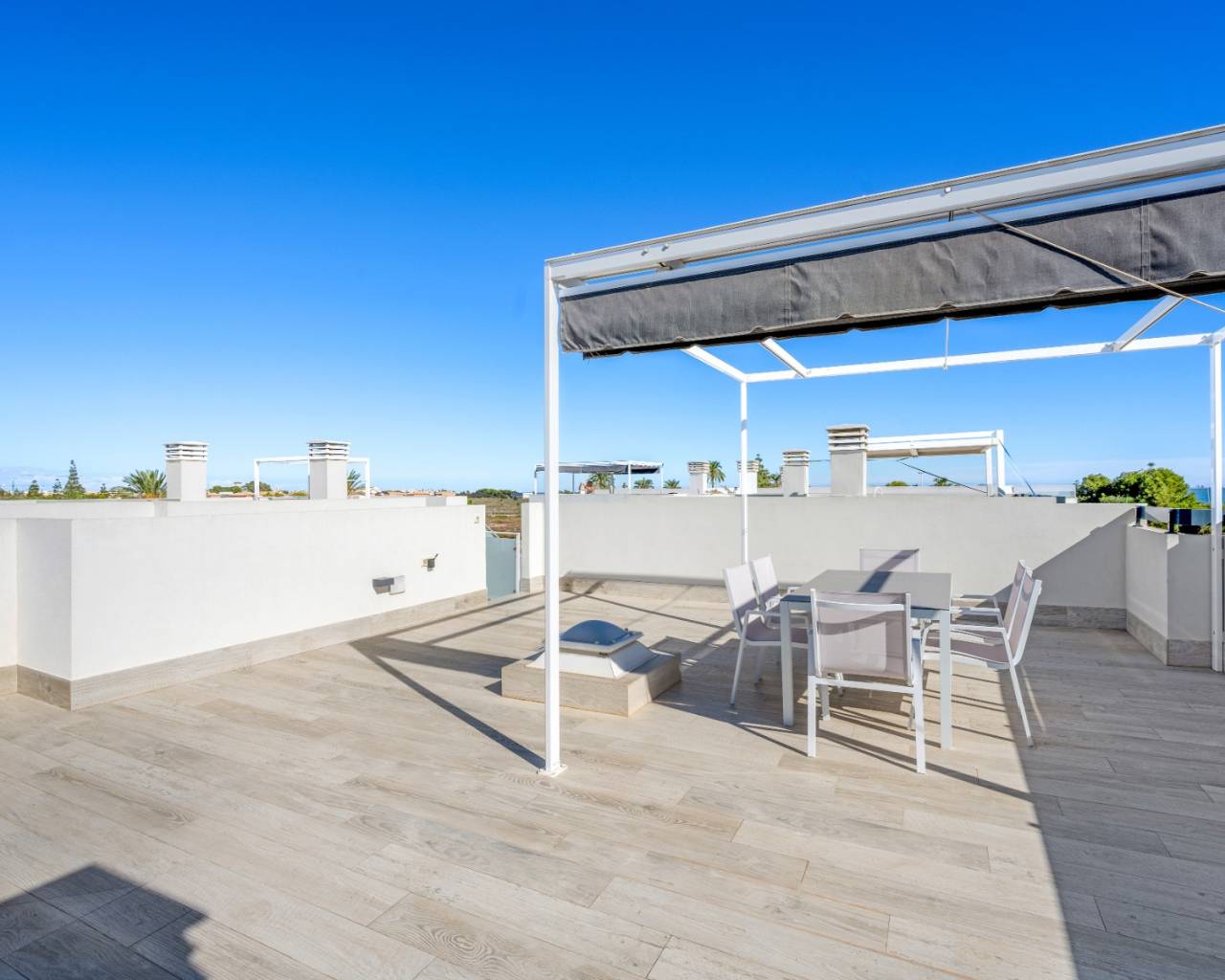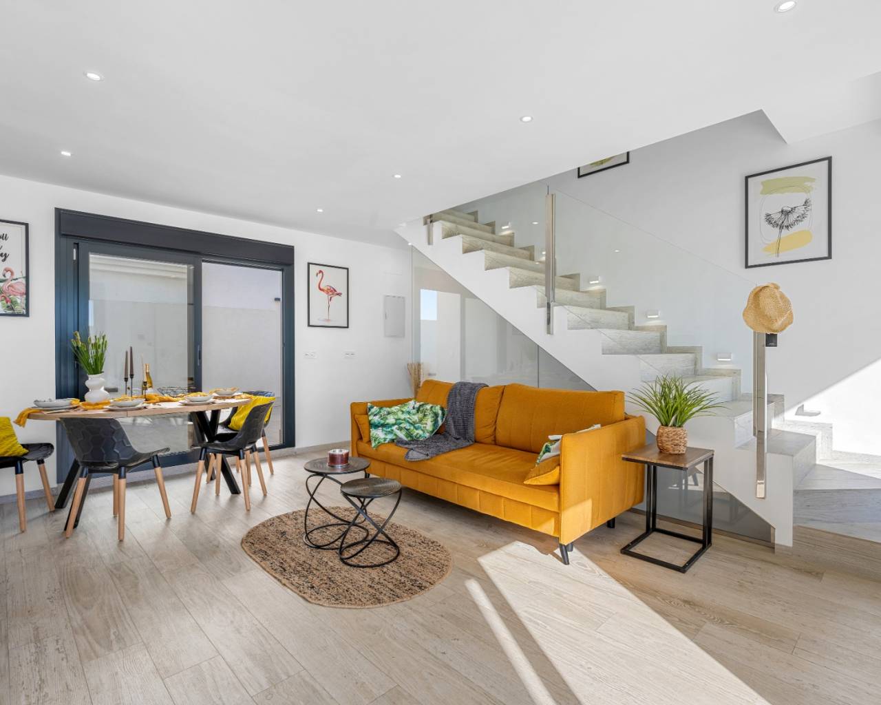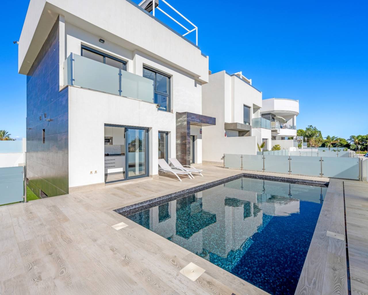 Ontdek deze prachtige moderne villa met 4 slaapkamers en 3,5 badkamers, perfect gelegen tussen Serena Golf en de glinsterende kust van de Mar Menor. Deze volledig gemeubileerde woning combineert stijl, comfort en functionaliteit en biedt de ideale balans tussen luxe wonen en rust aan de kust. Met 192 m² bruikbare ruimte beschikt de villa over een lichte en luchtige open woonkamer die naadloos aansluit op het buitenterras en het zwembad. De zuidoostelijke ligging zorgt voor natuurlijk licht gedurende de hele dag, wat de elegante moderne afwerking en smaakvolle inrichting benadrukt. Het solarium op de bovenste verdieping (83 m²) biedt een spectaculaire ruimte om te ontspannen of gasten te ontvangen, met een panoramisch uitzicht op de golfbaan en het omliggende landschap. De enorme kelder is ontworpen voor ontspanning en gemak, met een bioscoopzaal, een biljarttafel en een garage, samen met een extra slaapkamer die comfortabel plaats biedt aan maximaal vier personen — perfect voor gasten of familiebijeenkomsten. Buiten kunt u genieten van een privézwembad, een eethoek en een groene zone, ideaal om te genieten van de mediterrane zon of rustige avonden. Deze villa ligt in een rustige omgeving met prachtig uitzicht en biedt privacy, terwijl het slechts enkele minuten verwijderd is van golfbanen, stranden, restaurants en alle lokale voorzieningen. Belangrijkste kenmerken: 4 slaapkamers, 3,5 badkamers 192 m² bebouwde oppervlakte + 83 m² dakterras Volledig gemeubileerd, klaar om te betrekken Privézwembad en aangelegde buitenruimte Ruime kelder met bioscoop, pooltafel en garage Zuidoostelijke ligging voor optimaal zonlicht Rustige locatie tussen Serena Golf & Mar Menor Deze villa is de perfecte woning voor wie op zoek is naar een moderne mediterrane levensstijl met een vleugje luxe en ontspanning.