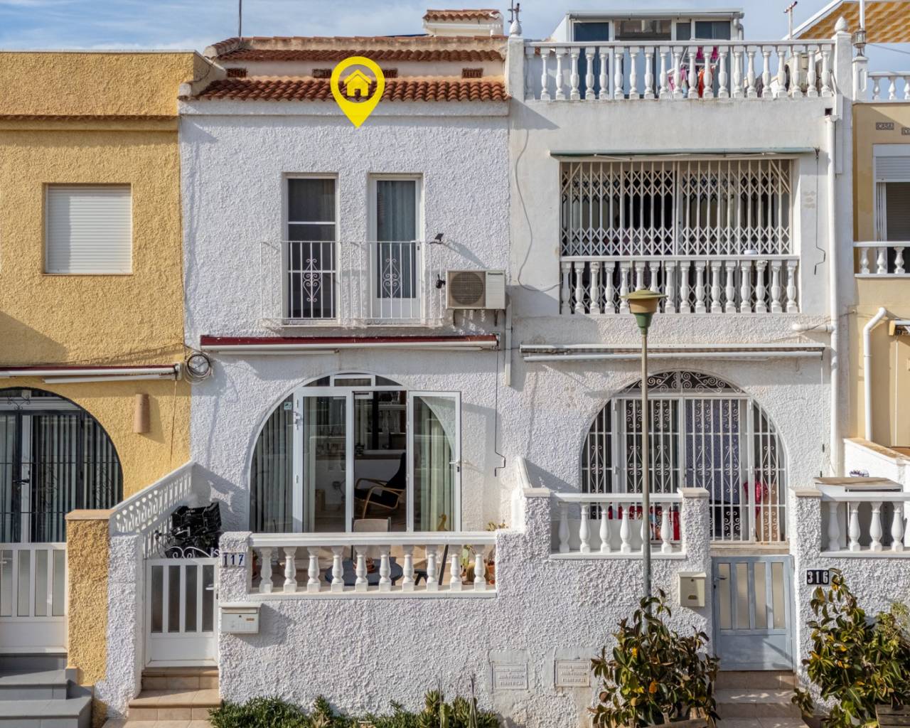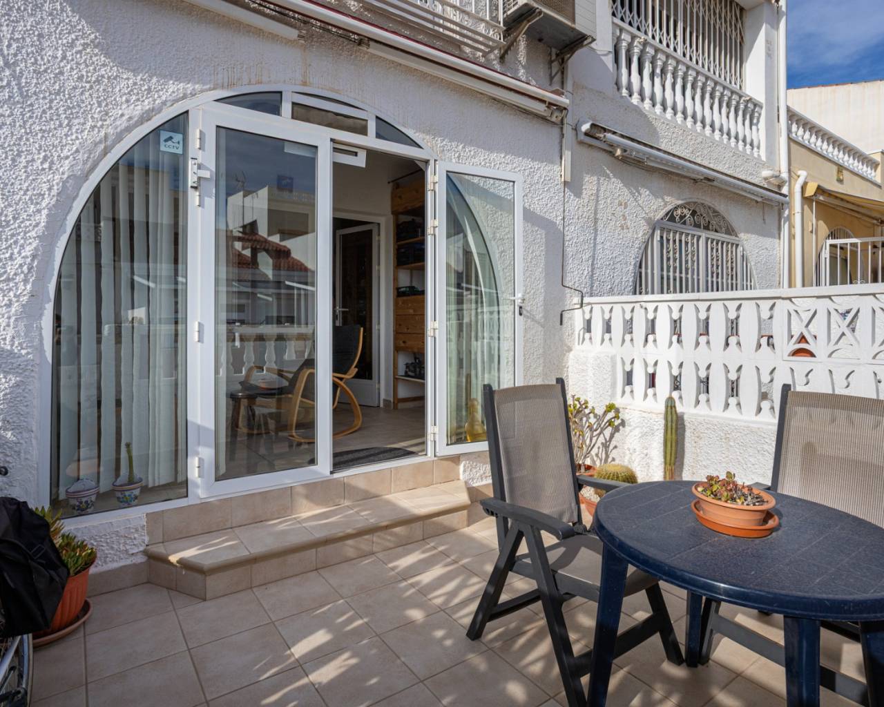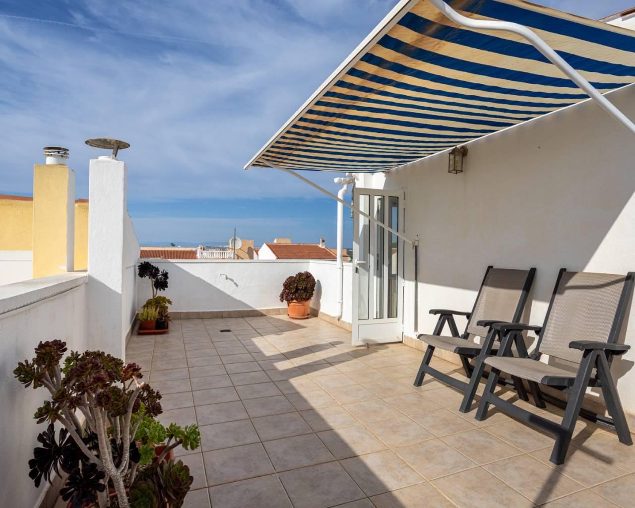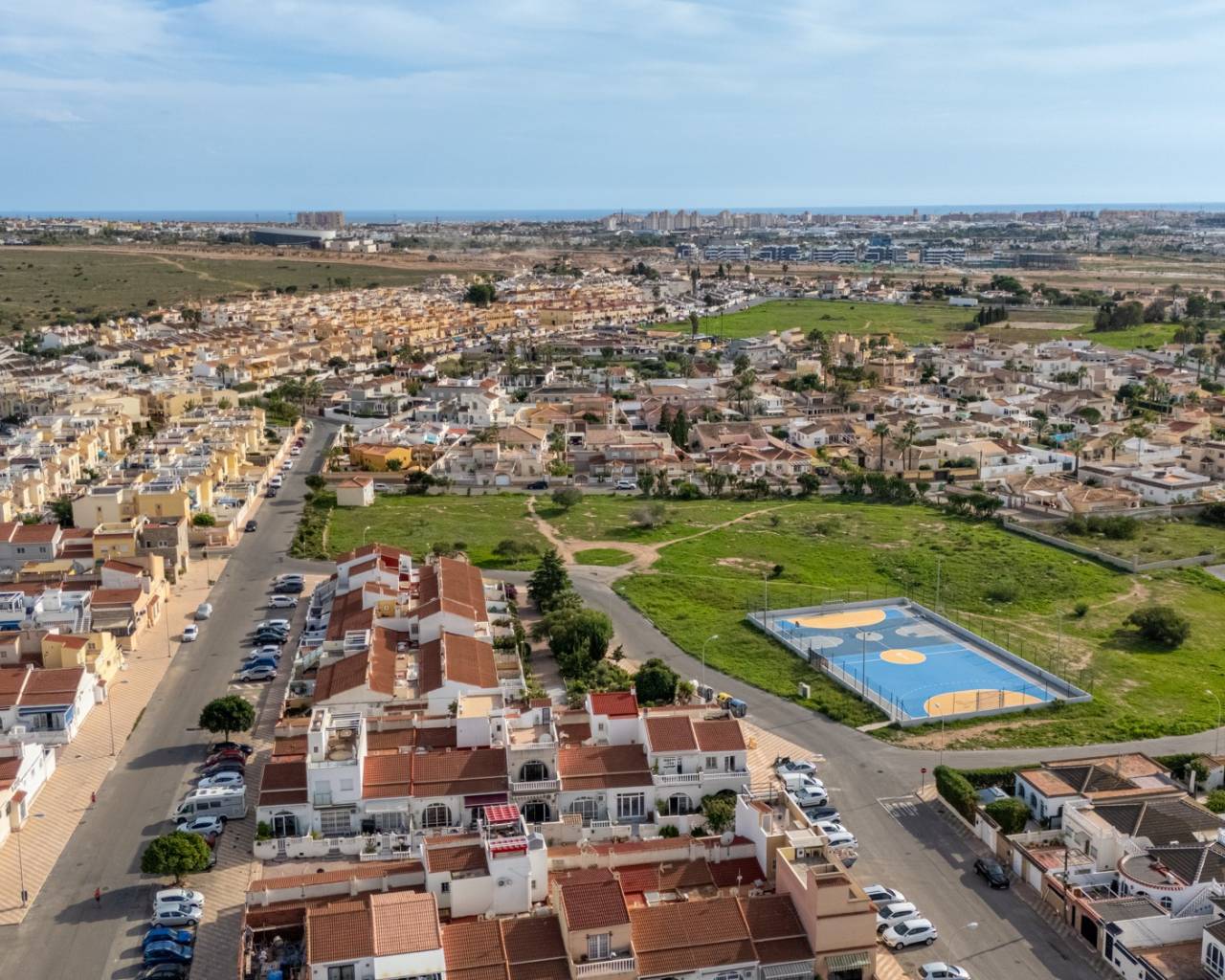 Ontdek deze prachtige woning in een woonwijk aan de rand van Torrevieja, waar u het hele jaar door kunt genieten van de zon, de rust en de mediterrane sfeer. Op slechts enkele minuten afstand ligt het prachtige natuurreservaat La Mata, ideaal voor wie van wandelen en de natuur houdt. De woning beschikt over een woonoppervlakte van 88 m², functioneel en licht ingedeeld. Op de begane grond vindt u een gezellige woon-/eetkamer met directe toegang tot de veranda en het privéterras, een perfecte plek om te ontspannen, tijd door te brengen met familie en vrienden, of te genieten van aangename zomeravonden. De open, moderne en volledig uitgeruste keuken sluit naadloos aan op de woonkamer en creëert een ruime en praktische omgeving. De woning beschikt over drie slaapkamers met veel natuurlijk licht, inbouwkasten en een comfortabele indeling. Beide badkamers verkeren in uitstekende staat en zijn modern en functioneel afgewerkt. De woning wordt gemeubileerd verkocht, is voorzien van airconditioning en is instapklaar zonder renovatiewerkzaamheden. De huidige eigenaren hebben veel werk aan de woning verricht, waaronder:* alle nieuwe ramen en deuren met wit aluminium en dubbel glas* alle nieuwe luiken (persianas) met aluminium in plaats van plastic* horren voor sommige ramen* nieuwe vloeren en plinten* binnen en buiten geschilderd (buiten met speciale waterdichte verf)* overal nieuwe elektrische bedrading Buiten bieden het privéterras en de veranda een ideale plek om te genieten van het mediterrane klimaat, buiten te ontbijten of gewoon te ontspannen. Ongeëvenaarde locatie: Slechts 15 minuten van de prachtige stranden van Torrevieja40 minuten van de luchthaven Alicante-Elche5 minuten van recreatiegebieden, restaurants en winkels15 minuten van diverse golfbanen, perfect voor sport- en natuurliefhebbers1 minuut van de bushalte5 minuten van het waterpark Flamingo15 minuten lopen van een groot sport- en recreatiepark met vele sportfaciliteiten, een pumptrack, padel- en tennisbanen Deze woning combineert comfort, een geweldige locatie en charme aan de kust, waardoor het een ideale keuze is voor permanente bewoning, vakantiehuis of investering.