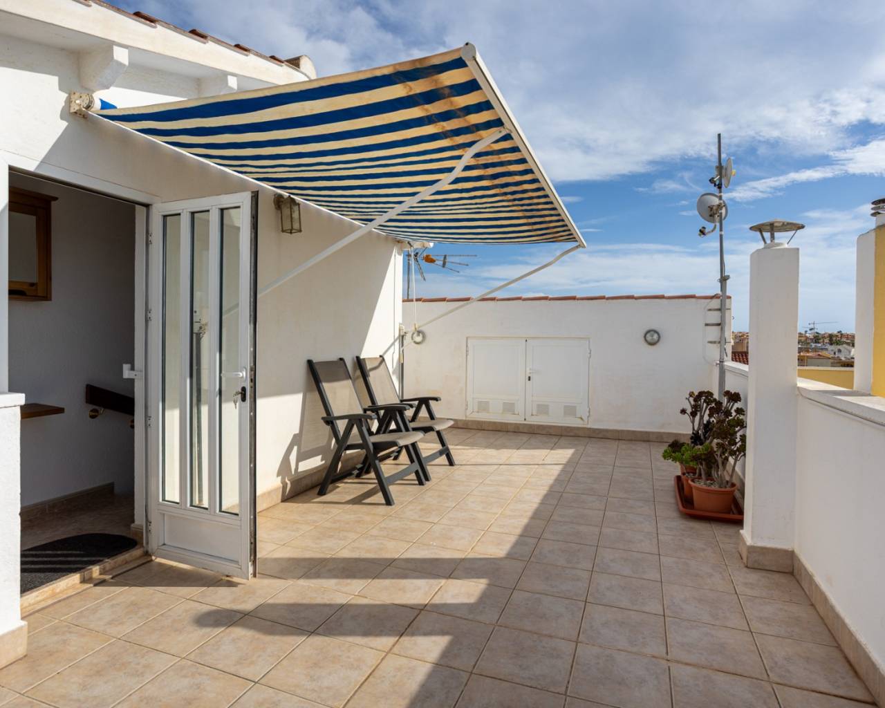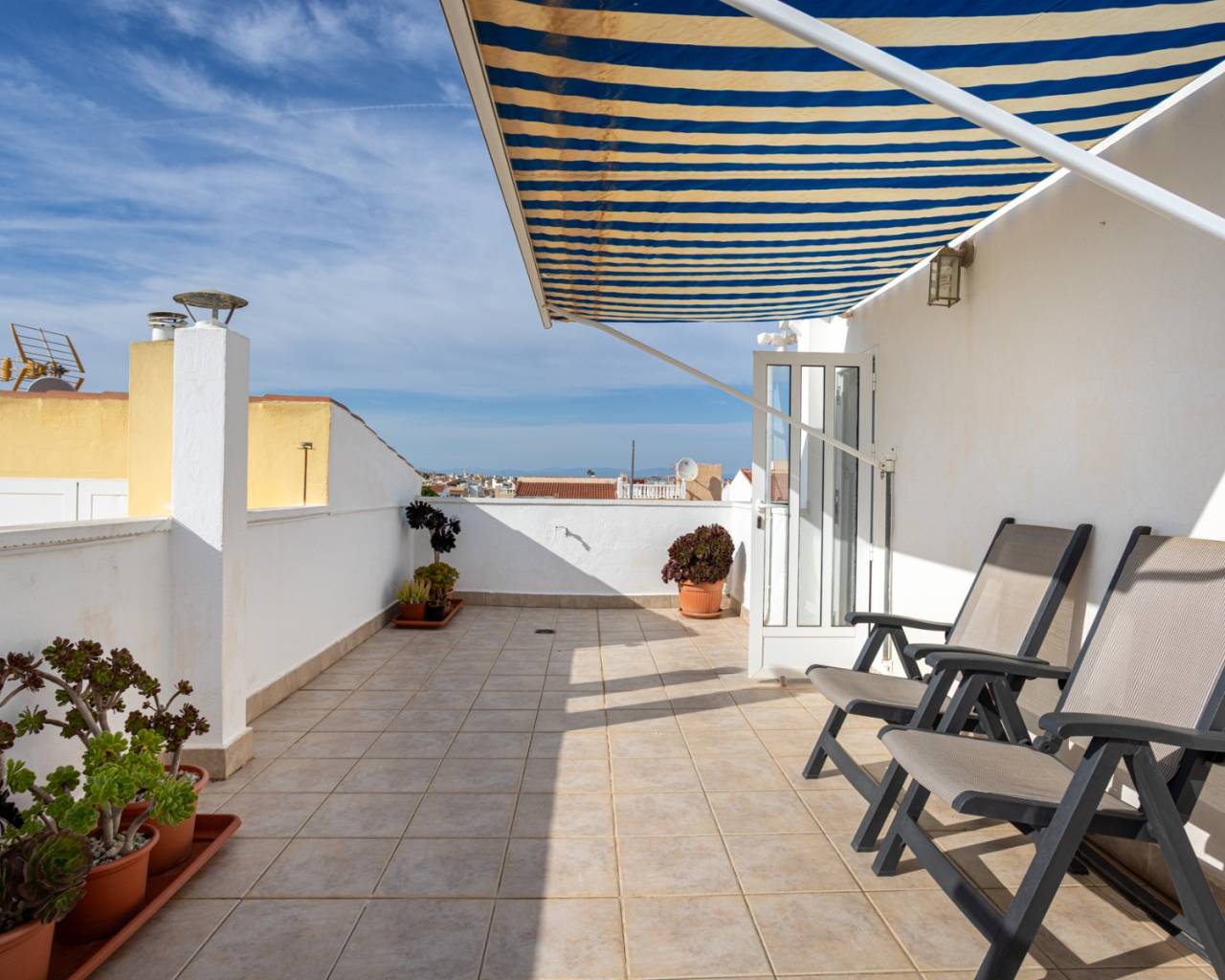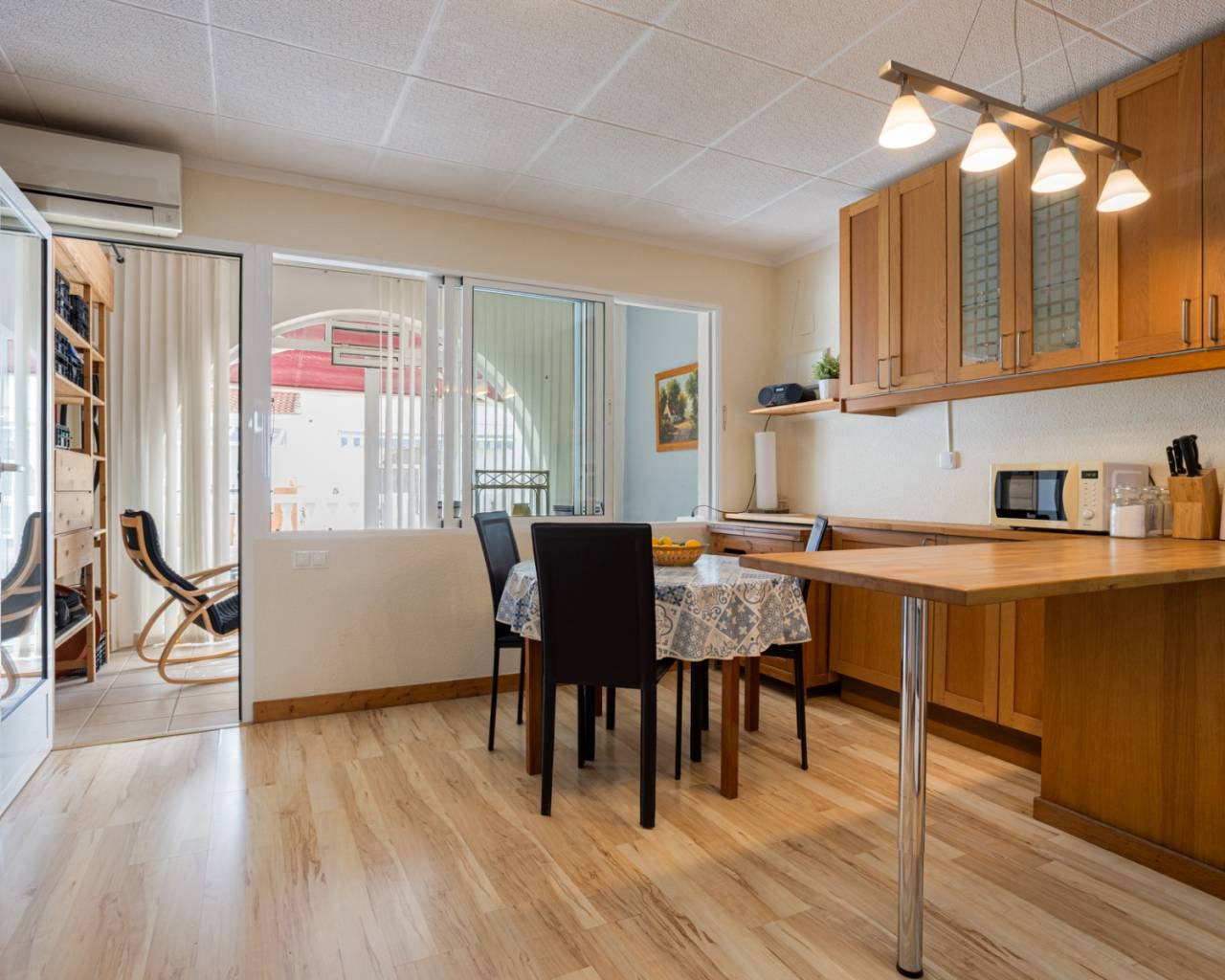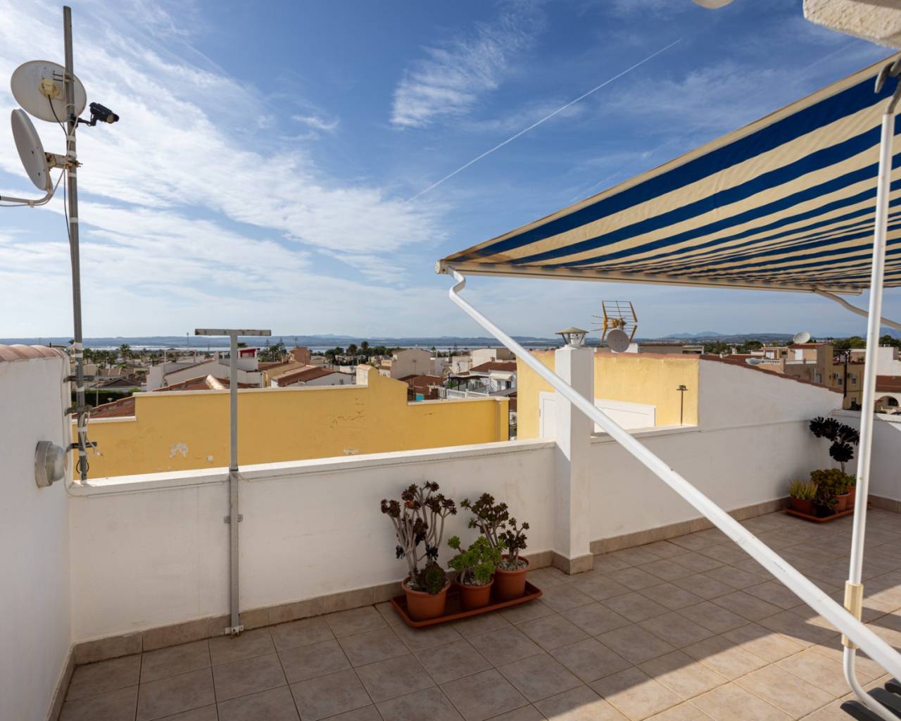 Ontdek deze prachtige woning in een woonwijk aan de rand van Torrevieja, waar u het hele jaar door kunt genieten van de zon, de rust en de mediterrane sfeer. Op slechts enkele minuten afstand ligt het prachtige natuurreservaat La Mata, ideaal voor wie van wandelen en de natuur houdt. De woning beschikt over een woonoppervlakte van 88 m², functioneel en licht ingedeeld. Op de begane grond vindt u een gezellige woon-/eetkamer met directe toegang tot de veranda en het privéterras, een perfecte plek om te ontspannen, tijd door te brengen met familie en vrienden, of te genieten van aangename zomeravonden. De open, moderne en volledig uitgeruste keuken sluit naadloos aan op de woonkamer en creëert een ruime en praktische omgeving. De woning beschikt over drie slaapkamers met veel natuurlijk licht, inbouwkasten en een comfortabele indeling. Beide badkamers verkeren in uitstekende staat en zijn modern en functioneel afgewerkt. De woning wordt gemeubileerd verkocht, is voorzien van airconditioning en is instapklaar zonder renovatiewerkzaamheden. De huidige eigenaren hebben veel werk aan de woning verricht, waaronder:* alle nieuwe ramen en deuren met wit aluminium en dubbel glas* alle nieuwe luiken (persianas) met aluminium in plaats van plastic* horren voor sommige ramen* nieuwe vloeren en plinten* binnen en buiten geschilderd (buiten met speciale waterdichte verf)* overal nieuwe elektrische bedrading Buiten bieden het privéterras en de veranda een ideale plek om te genieten van het mediterrane klimaat, buiten te ontbijten of gewoon te ontspannen. Ongeëvenaarde locatie: Slechts 15 minuten van de prachtige stranden van Torrevieja40 minuten van de luchthaven Alicante-Elche5 minuten van recreatiegebieden, restaurants en winkels15 minuten van diverse golfbanen, perfect voor sport- en natuurliefhebbers1 minuut van de bushalte5 minuten van het waterpark Flamingo15 minuten lopen van een groot sport- en recreatiepark met vele sportfaciliteiten, een pumptrack, padel- en tennisbanen Deze woning combineert comfort, een geweldige locatie en charme aan de kust, waardoor het een ideale keuze is voor permanente bewoning, vakantiehuis of investering.
