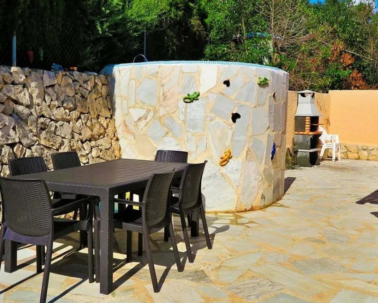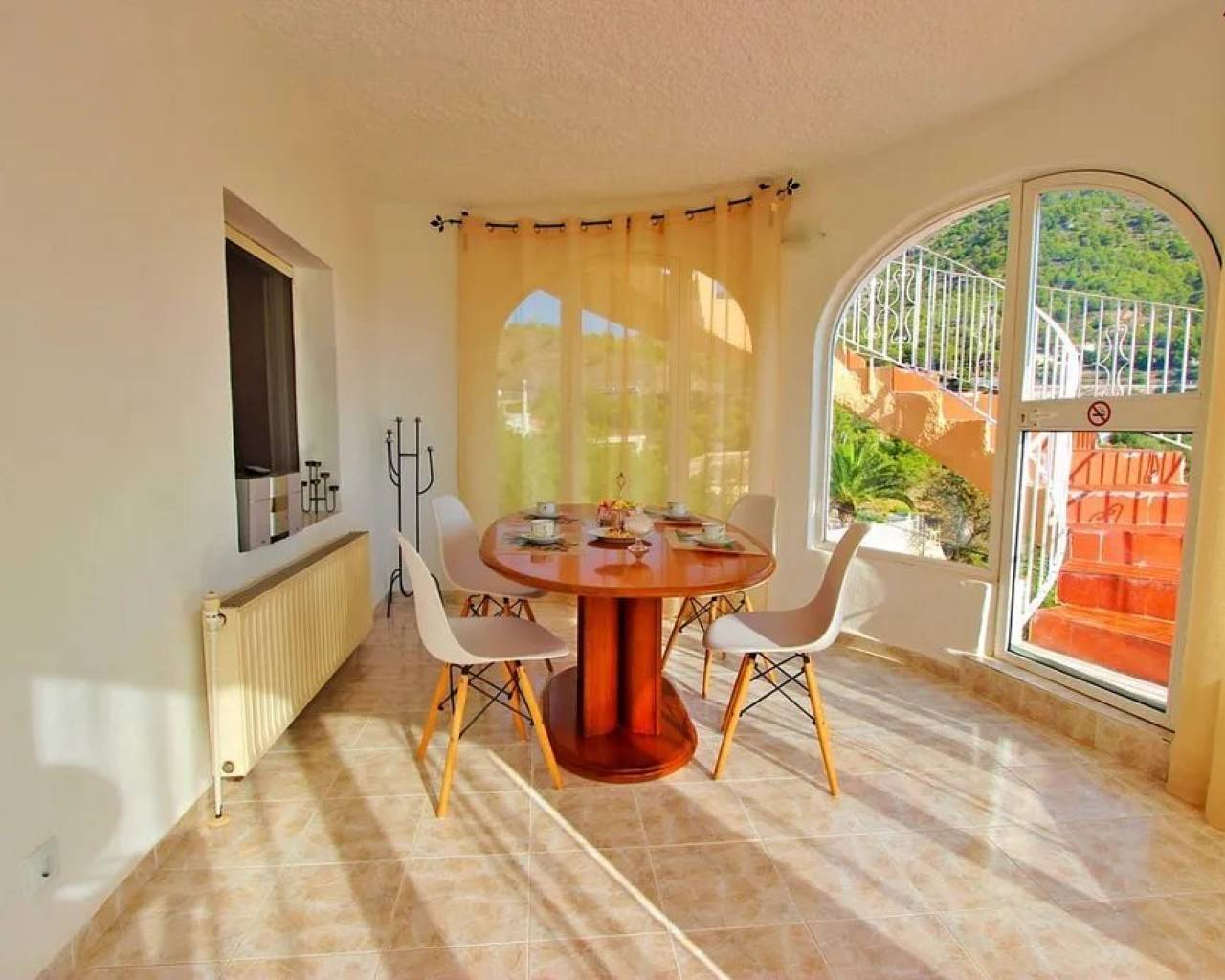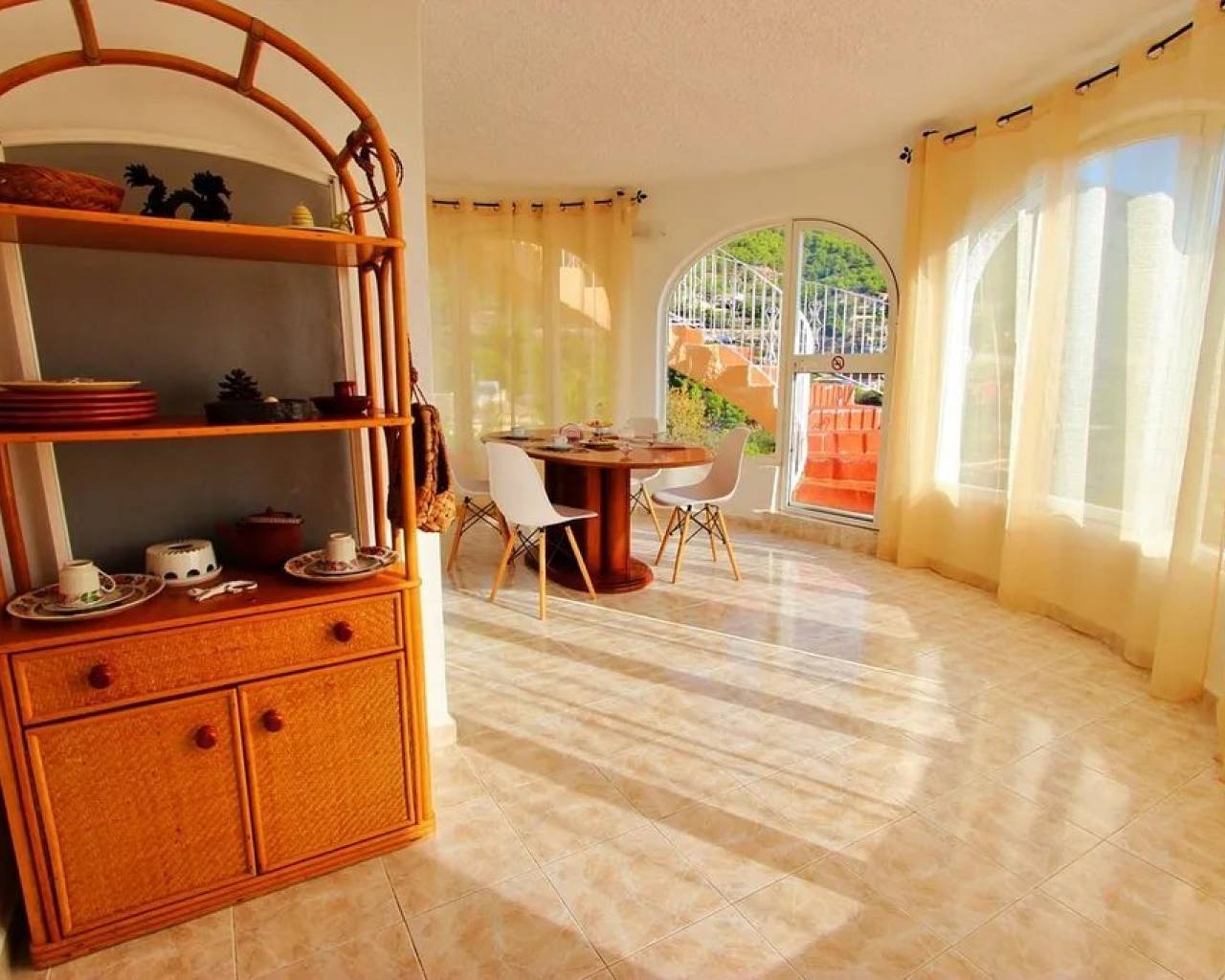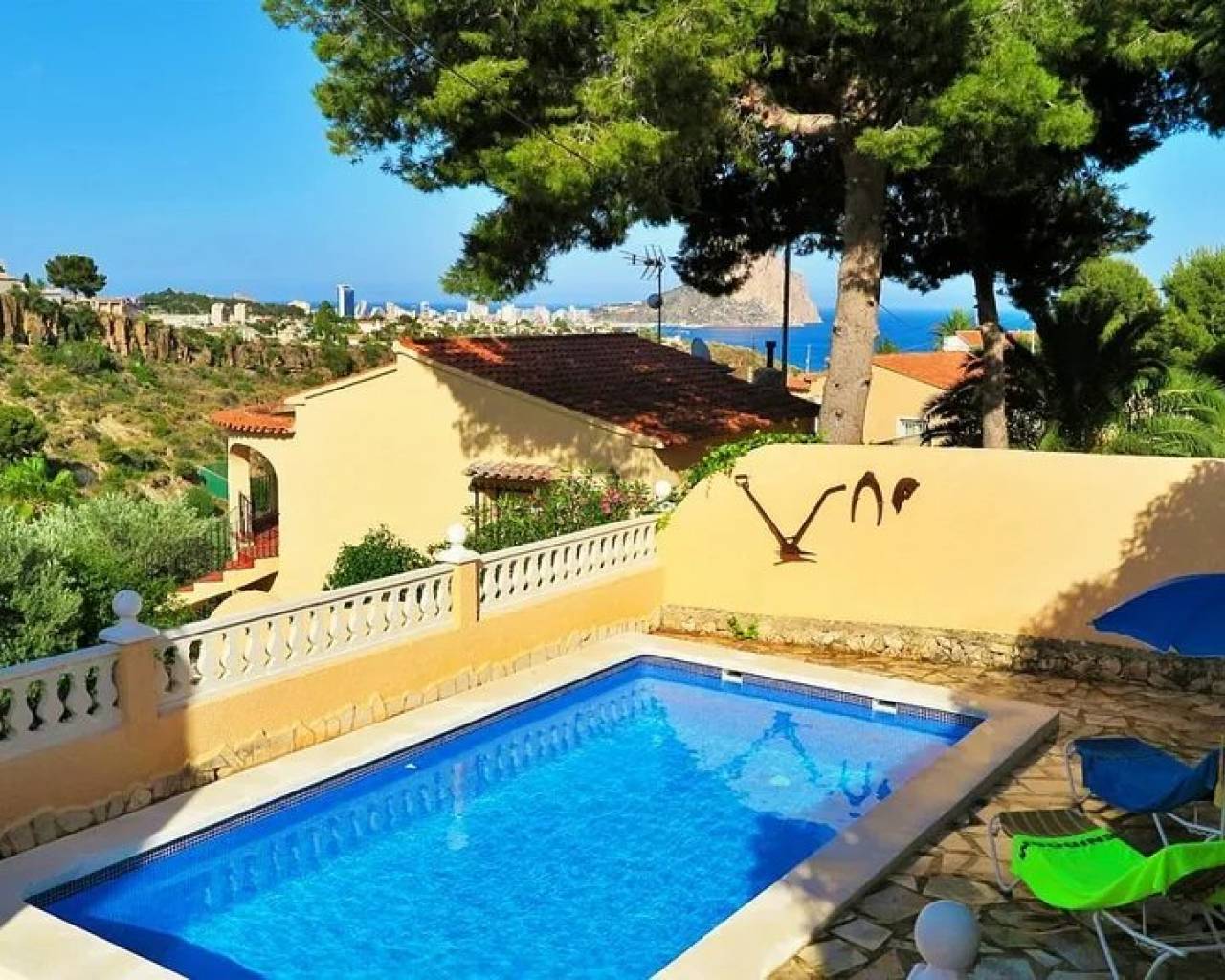 Charmante villa in Calpe met prive zwembad, gastenverblijf en uitzicht op de zee en de Ifach-rots. Op het hoofdniveau bevinden zich 2 tweepersoonsslaapkamers en 1 badkamer, 1 volledig uitgeruste keuken, een grote woonkamer met open haard, een eetkamer met toegang tot een zonneterras, beide met een prachtig uitzicht op de zee en de Ifach. Op de benedenverdieping bevindt zich een apart gastenverblijf met 1 grote slaapkamer met tweepersoonsbed, een kleine woonkamer, een kitchenette en 1 badkamer. Buiten vindt u een mooi zwembad dat vanaf beide verdiepingen toegankelijk is, een buitendouche, een barbecueplek en een garage voor 1 auto.