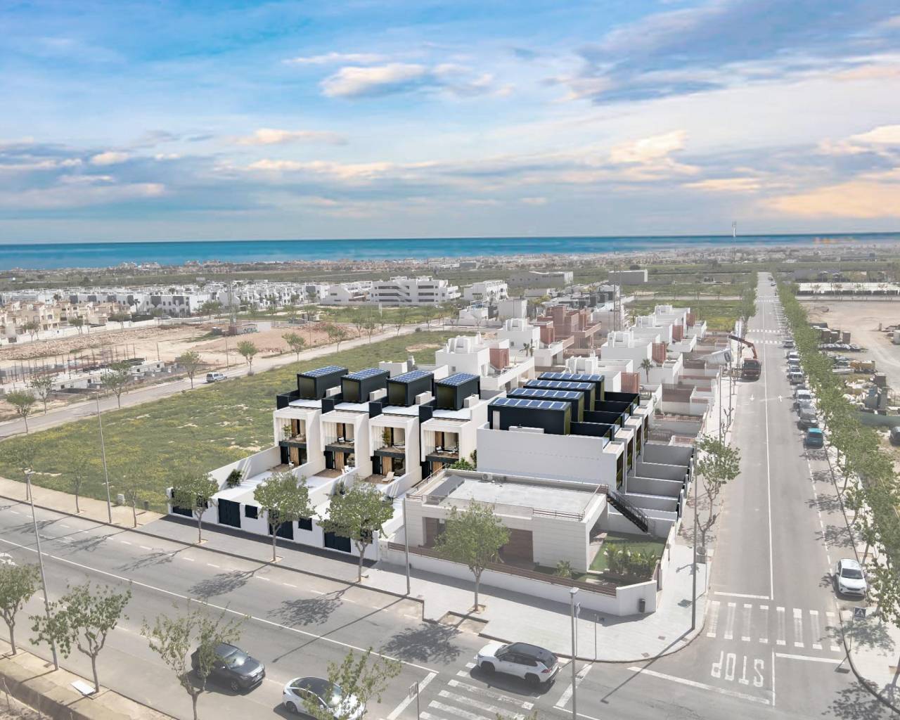 Duurzame nieuwbouwwoningen in Pilar de la Horadada, Costa Blanca Moderne woningen met technologie en energie-efficiëntie Ontdek deze exclusieve nieuwbouwproject in Pilar de la Horadada, een van de meest aantrekkelijke gebieden van de zuidelijke Costa Blanca. Dit project van geschakelde woningen combineert een eigentijds ontwerp, duurzaamheid en technologie om een comfortabele, efficiënte en verbonden levensstijl te bieden. De woonwijk bestaat uit 8 rijtjeshuizen met 3 slaapkamers en 3 badkamers, allemaal met een privézwembad, een solarium met zomerkeuken en parkeergelegenheid op het perceel. Bovendien wordt een van de woningen volledig gemeubileerd en instapklaar opgeleverd, met 2 slaapkamers en 2 badkamers. Elegante en functionele binnenruimtes Elke woning is met oog voor detail ontworpen: Volledig ingerichte keuken met Siemens-apparatuur of vergelijkbaar Badkamers met wastafels op een blad, mengkranen en veiligheidsglas Voorbereiding voor airconditioning via luchtkanalen Aerothermisch systeem voor sanitair warm water LED-verlichting binnen en buiten, inclusief decoratieve strips in de keuken, woonkamer en badkamers De woningen zijn ook voorzien van een domoticasysteem voor de bediening van zonwering, buitenverlichting, airconditioning en zwembad, evenals een fotovoltaïsche installatie met 6 zonnepanelen voor eigen gebruik. Privébuitenruimte en solarium met zomerkeuken Geniet van een ruime buitenruimte met: Privézwembad met douche en led-spots Tuin met geïntegreerde spots Zonneterras met aluminium buitenkeuken, werkblad en spoelbak Alles is ontworpen om het hele jaar door van het mediterrane klimaat te kunnen genieten. Pilar de la Horadada: levenskwaliteit op slechts enkele minuten van de zee Deze gemeente biedt een uitstekende infrastructuur, een levendig plaatselijk leven en stranden met blauwe vlag op slechts 2 km afstand. Daarnaast zijn er fietspaden, wandelroutes en tal van sportmogelijkheden. Belangrijkste afstanden: Strand van Torre de la Horadada: 2 km Golfbaan Lo Romero: 5 km Jachthaven Torre de la Horadada: 3 km Winkelcentrum Zenia Boulevard: 15 km Luchthaven Murcia (Corvera): 40 km Luchthaven Alicante: 55 km Vraag informatie aan en plan uw bezoek Dit is uw kans om een efficiënte, moderne woning dicht bij de zee te kopen in een van de meest gewilde gebieden van de Costa Blanca. Neem vandaag nog contact met ons op voor meer informatie of om een persoonlijk bezoek te plannen.