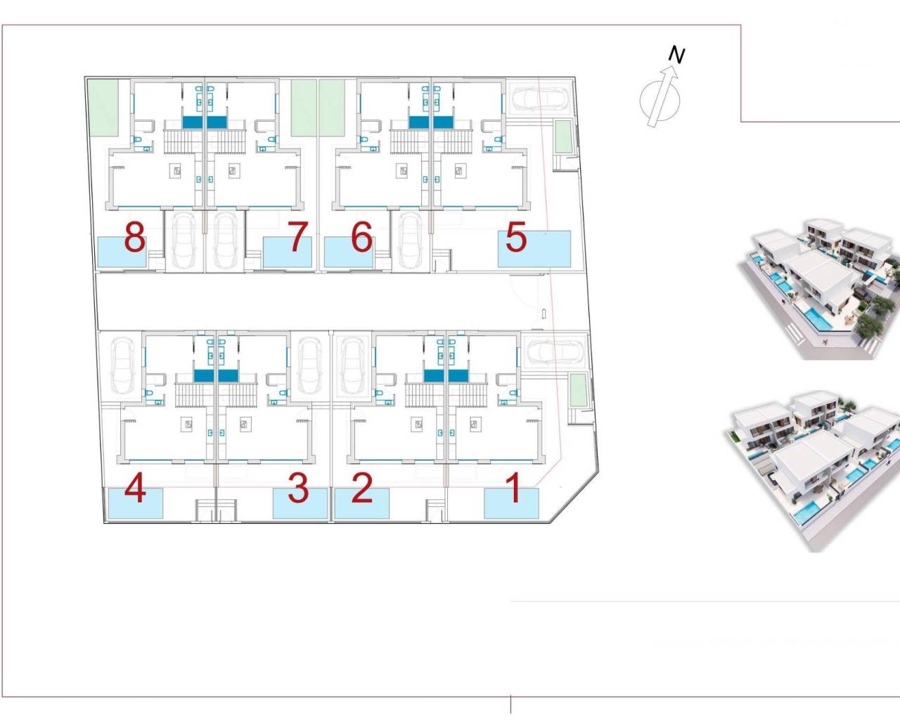 Nieuwbouw Halfvrijstaande villa's in Dolores Dit moderne woonproject in Dolores bestaat uit nieuw gebouwde halfvrijstaande villa's. Ontworpen met een eigentijdse stijl en comfort in het achterhoofd, is elke woning verdeeld over twee verdiepingen, met 3 slaapkamers en 3 badkamers. De open keuken sluit naadloos aan op de woonkamer, die direct uitkomt op een privéterras en -tuin. Elk huis heeft ook een eigen zwembad en parkeerplaats. Hoogwaardige afwerking en moderne voorzieningen Deze huizen zijn gebouwd met hoogwaardige materialen en afwerkingen. Het buitenschrijnwerk is gemaakt van aluminium met thermische onderbreking en de badkamers zijn voorzien van glazen douchewanden. Overal in het pand is LED-verlichting geïnstalleerd, wat zorgt voor energiezuinigheid en een moderne sfeer. Deze kenmerken zorgen samen voor een comfortabele, stijlvolle leefomgeving voor jou en je gezin. Toplocatie in de buurt van dagelijkse voorzieningen Deze woningen liggen aan de rand van het charmante stadje Dolores, op loopafstand van essentiële dagelijkse voorzieningen, zoals winkels, restaurants en lokale voorzieningen. Dolores maakt deel uit van de regio Vega Baja del Segura, in het zuidelijke deel van de provincie Alicante, bekend om zijn agrarische landschappen en ontspannen levenstempo. Dichtbij de belangrijkste bezienswaardigheden Strand La Marina: 10 km Strand van Guardamar: 10 km Luchthaven Alicante: 30 km Luchthaven Murcia-Corvera: 60 km Golfbanen: 15 km Winkelcentra: 12 km Perfect om te genieten van de levensstijl aan de Costa Blanca Met het mediterrane klimaat, prachtige stranden op slechts een klein eindje rijden en verschillende golfbanen in de buurt, biedt dit project de ideale balans tussen ontspanning en vrije tijd. Of je nu op zoek bent naar een vakantiehuis of een permanente verblijfplaats, deze nieuwbouwwoningen in Dolores bieden een moderne woonstijl op een serene, goed verbonden locatie.