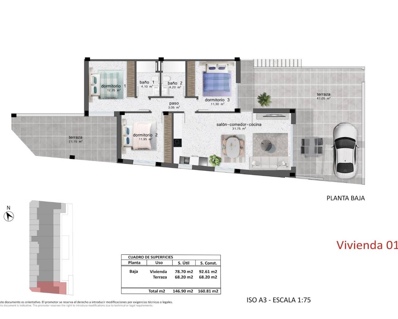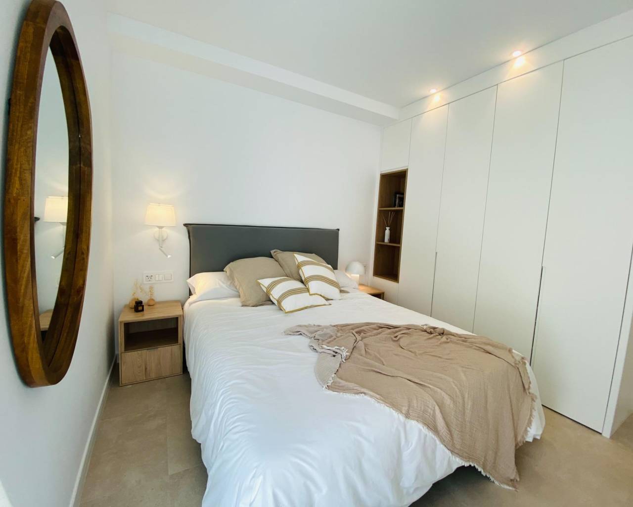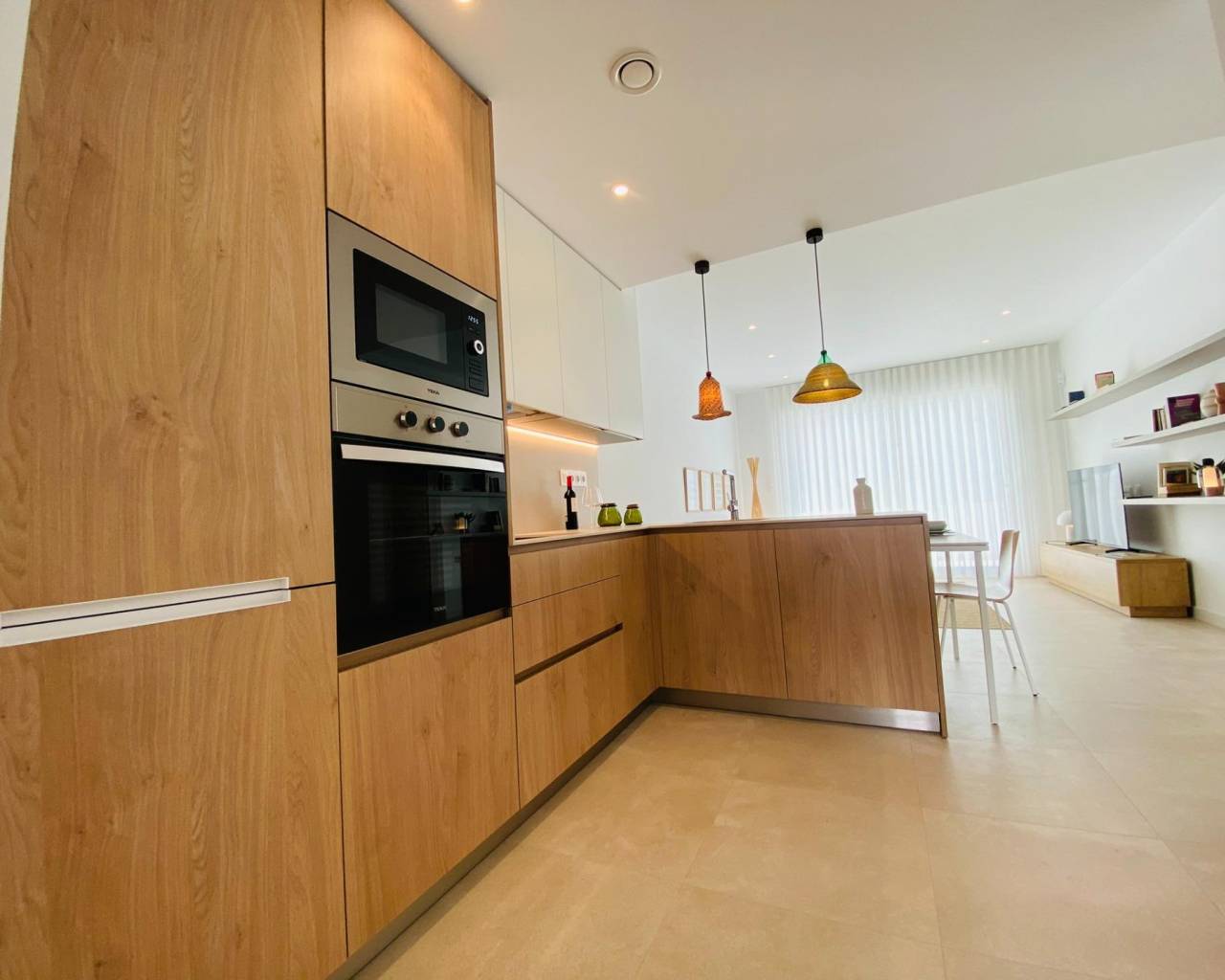 Nieuwbouw Bungalow Wooncomplex in Pilar de la Horadada Exclusieve moderne bungalows in Pilar de la Horadada Dit nieuwe project biedt 16 stijlvolle bungalows in de populaire plaats Pilar de la Horadada, gelegen in het meest zuidelijke deel van de Costa Blanca. Kies uit opties met 2 of 3 slaapkamers, elk met 2 badkamers. De woningen op de begane grond hebben ruime terrassen aan de voor- en achterkant, met directe toegang tot het gemeenschappelijke zwembad en de tuin, terwijl de woningen op de bovenste verdieping beschikken over een groot privédakterras. Ruim wonen met moderne functies Elke bungalow heeft een lichte en open woon/eetkamer en een volledig uitgeruste keuken met grote schuifdeuren die de binnen- en buitenruimtes naadloos met elkaar verbinden. De slaapkamers hebben ingebouwde kasten. Airconditioning met schoorsteen is geïnstalleerd en het complex heeft een lift voor gemakkelijke toegang tot de bovenste verdiepingen. Privéparkeerplaatsen zijn ook inbegrepen voor alle wooneenheden. Toplocatie in Pilar de la Horadada Pilar de la Horadada is een traditioneel Spaans dorp met een levendige hoofdstraat met supermarkten, winkels, restaurants en bars. De prachtige stranden van Torre de la Horadada en Mil Palmeras liggen op slechts 5 minuten afstand. Het project is gunstig gelegen op 40 km van de luchthaven van Corvera (Murcia) en 55 km van de luchthaven van Alicante, waardoor het een ideale locatie is voor zowel permanente bewoning als vakantie.