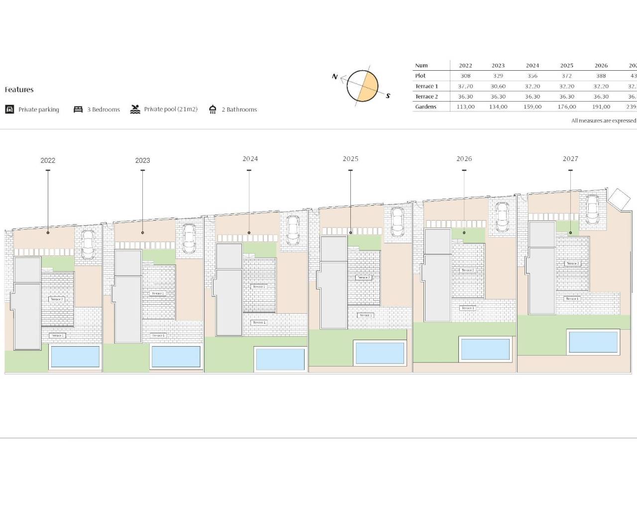 NIEUWBOUW VILLA'S IN ALGORFA Nieuwbouwcomplex met prachtige villa's in Algorfa. Villa's gebouwd over 2 verdiepingen, heeft 3 slaapkamers, 2 badkamers, open keuken met woonkamer, waar grote ramen zijn met directe toegang tot het terras en het zwembad. Het heeft een parkeerplaats op het perceel. Algorfa heeft een infrastructuur van hoge kwaliteit diensten die u toelaat om comfortabel te leven. Dichtbij de prachtige stranden van Guardamar en Torrevieja waar je kunt genieten van het warme water en zonnebaden voor meer dan driehonderd dagen per jaar. Bovendien vind je in deze toeristische steden winkelcentra, restaurants en uitgaansgelegenheden. De luchthaven van Alicante ligt op 40 minuten rijden en die van Murcia op 55 minuten rijden.