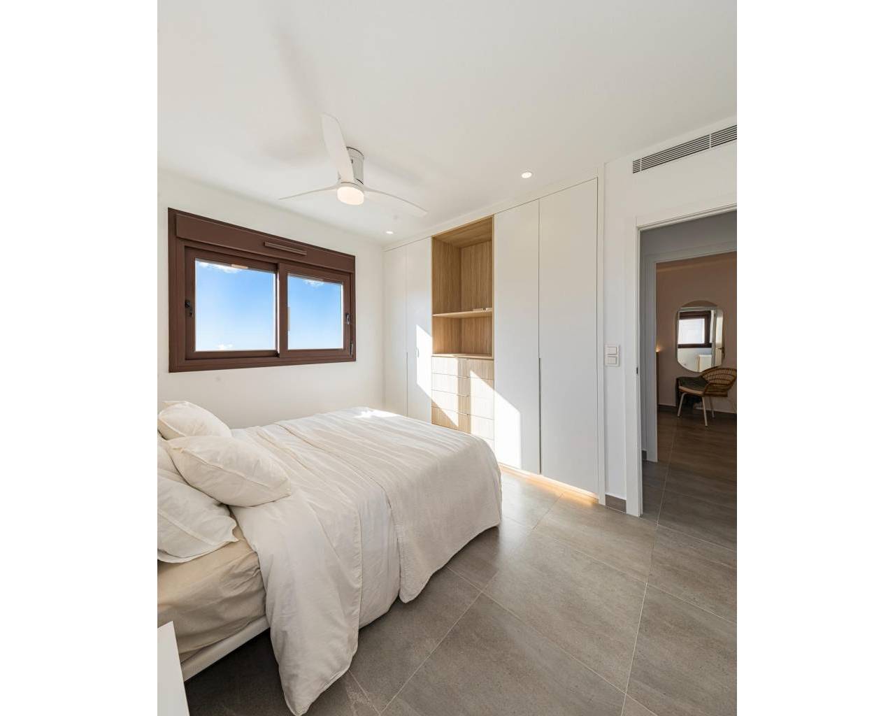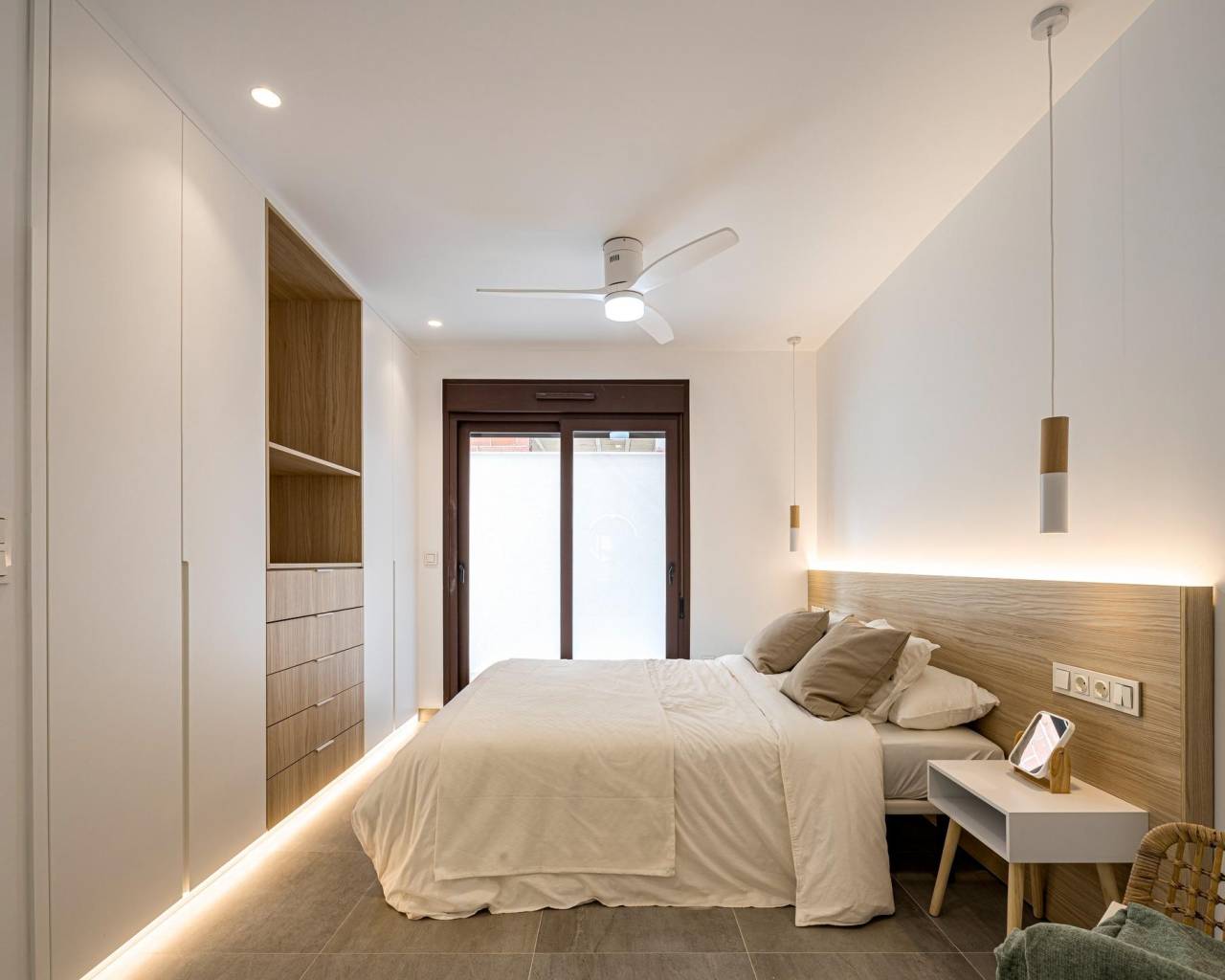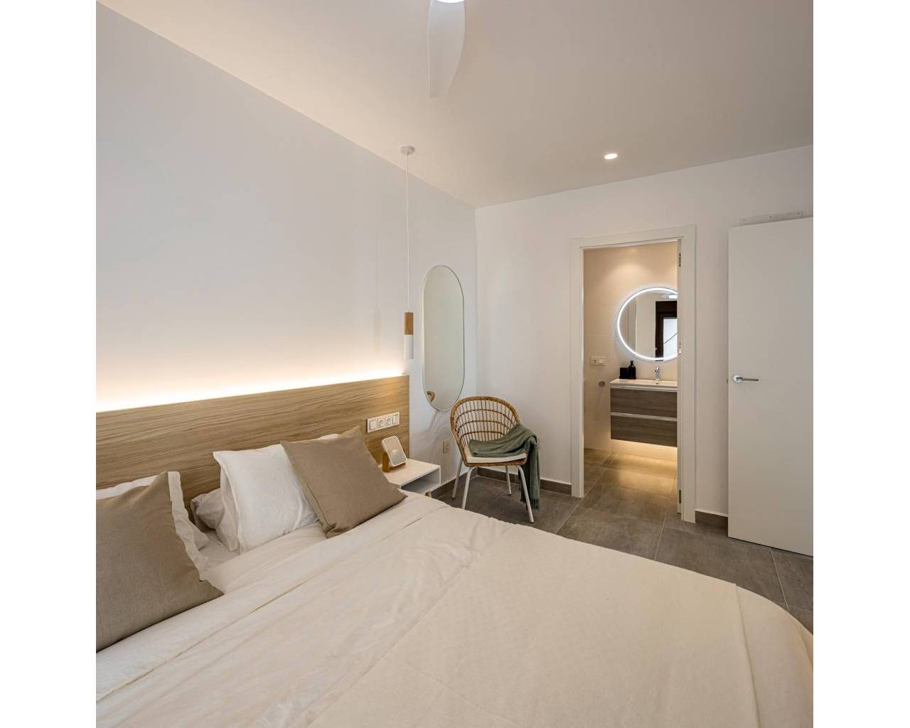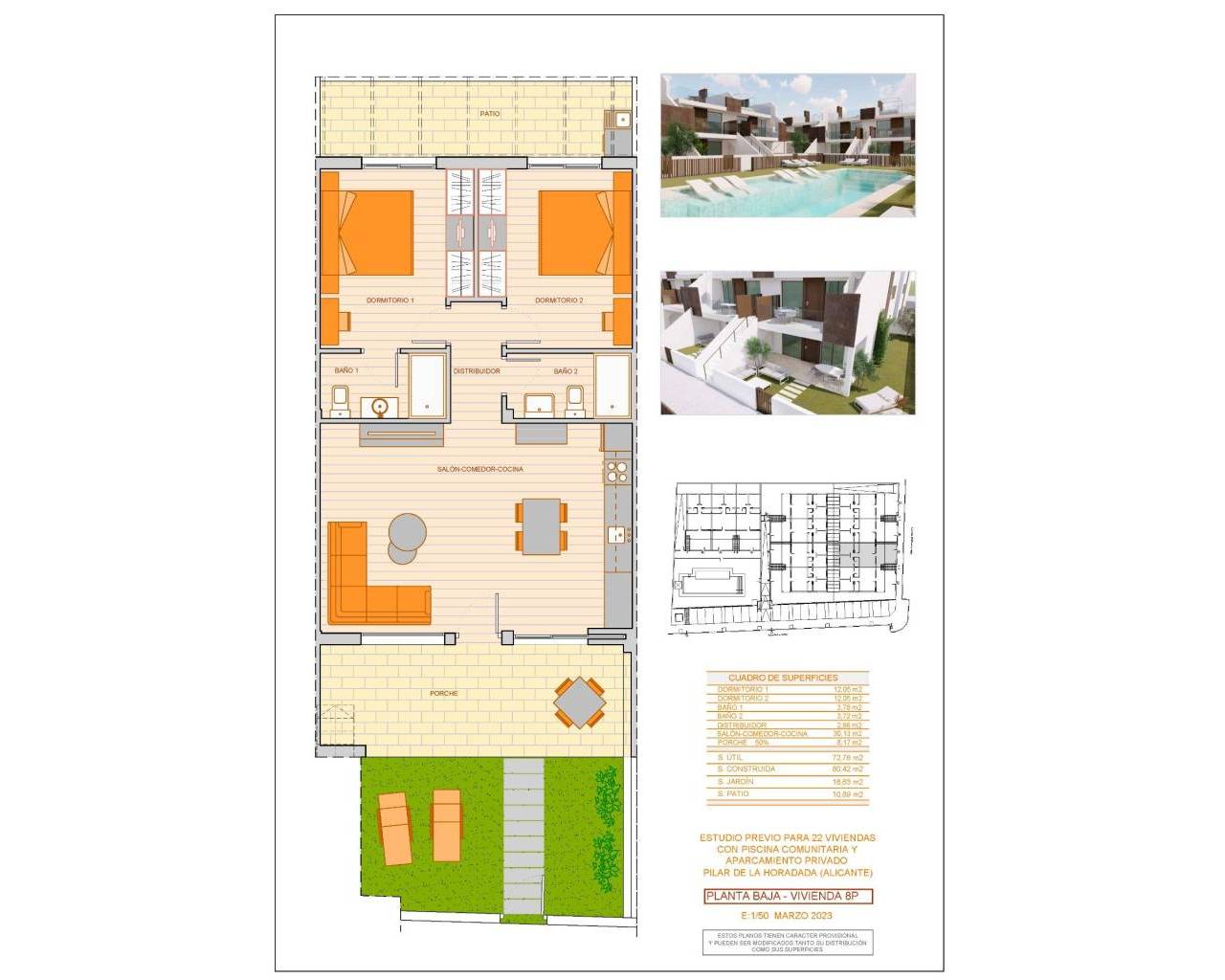 NIEUWBOUW BUNGALOW APPARTEMENTEN IN PILAR DE LA HORADADA Nieuwbouw een exclusief wooncomplex bestaande uit 22 bungalowappartementen van topkwaliteit met PORCELANOSA afwerking in Pilar de la Horadada. Moderne bungalows van 2 slaapkamers, 2 badkamers, open keuken met woonkamer, inbouwkasten. De woningen op de begane grond hebben een grote tuin afgewerkt met kunstgras en op de bovenste verdieping geniet u het hele jaar door van de zon op het terras en solarium, evenals van de gemeenschappelijke ruimte met zwembad en een handige parkeerplaats. Pilar de la Horadada is een typisch Spaans dorp in het meest zuidelijke deel van de Costa Blanca. De grote hoofdstraat heeft supermarkten, veel winkels, restaurants en bars en enkele mooie pleinen. De prachtige stranden van Torre de la Horadada en Mil Palmeras met fijne zandpromenade liggen op slechts 5 minuten afstand. De luchthavens van Corvera (Murcia) en Alicante liggen op respectievelijk 40 en 55 minuten afstand.