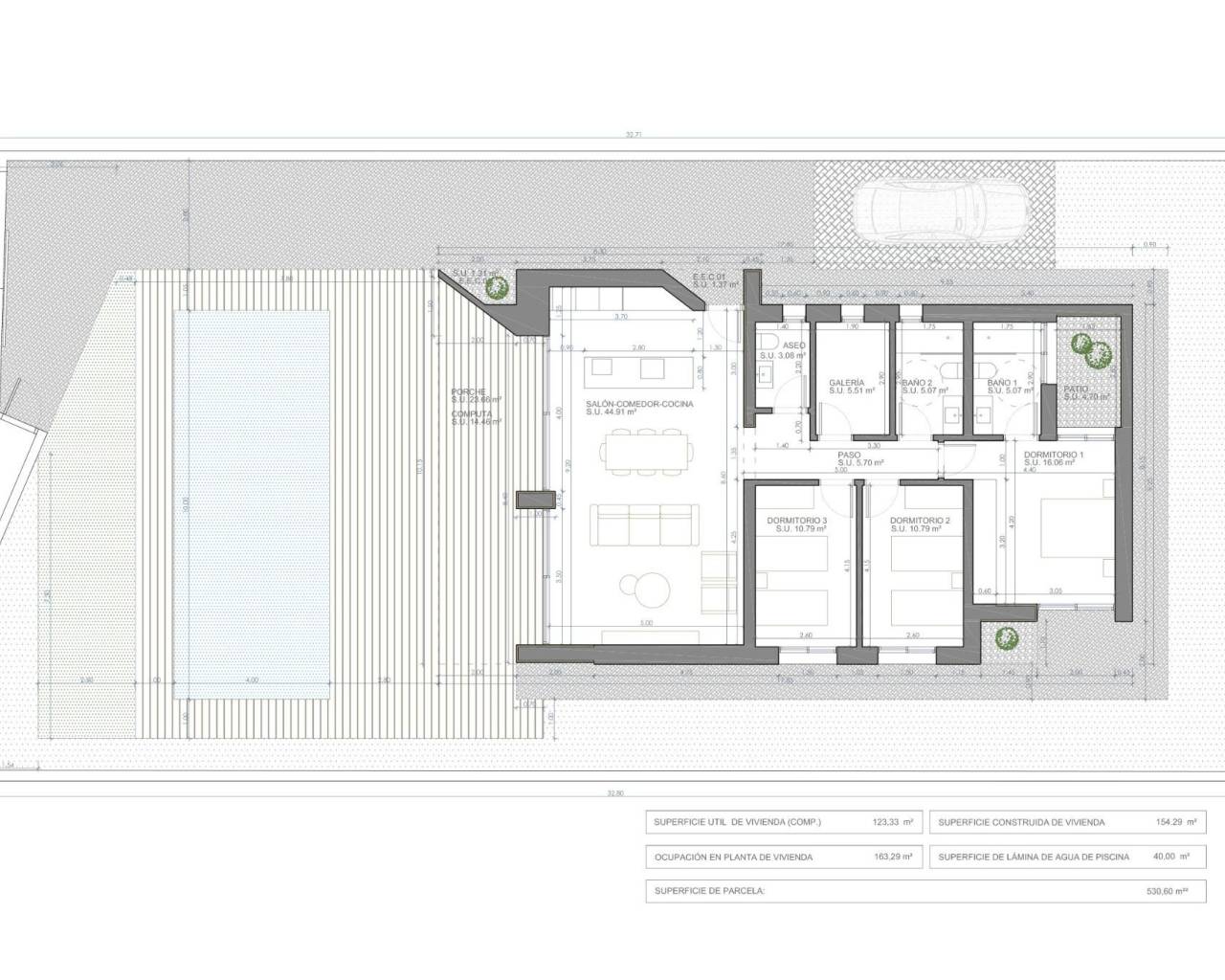 NIEUWBOUW MODERNE VILLA IN ASPE Nieuwbouw moderne en innovatieve design villa in La Romana, Aspe. Villa met 3 slaapkamers, 2 badkamers open keuken met woonkamer, terras, prive tuin met het zwembad en parkeerplaats. De villa's zijn vooraf geïnstalleerd voor A/C warm en koud en elektrische rolluiken voor alle ramen. Ook heeft u een keuze van tegels en keuken, zodat de villa wordt afgewerkt naar uw eigen stijl en kleur. Vlakbij Aspe ligt de bijzondere stad La Romana op loopafstand van ons project. La Romana heeft een welvarende economie gebaseerd op de landbouw die de stad omringt en deze welvaart wordt weerspiegeld in de pittoreske straatjes met palmbomen die zeer goed onderhouden zijn. Er is een medisch centrum, verschillende supermarkten, ijzerwaren, winkels, banken, bakkers, restaurants, bars en cafés en een zaterdagse markt waar u lokaal geteelde groenten en verse vis kunt kopen. De regio staat bekend om de teelt van eetbare druiven en de productie van een breed scala aan wijnen die kunnen worden geproefd in de traditionele bars, samen met veel verschillende smakelijke lokale tapas en u kunt ook een bezoek brengen aan de vele Bodegas die dicht bij de stad liggen. Voor golfliefhebbers zijn er twee uitstekende golfbanen Font de Llop in Aspe en Alenda Golf in Monforte del Cid op slechts 15 minuten rijden. De stranden en de luchthaven van Alicante liggen op slechts 30 minuten rijden. La Romana is een veilige en vriendelijke plek om te wonen en het bezitten van een woning in La Romana plaatst u in het hart van een echte gemeenschap - met alle voorzieningen die u nodig heeft voor het dagelijks leven voor de deur.