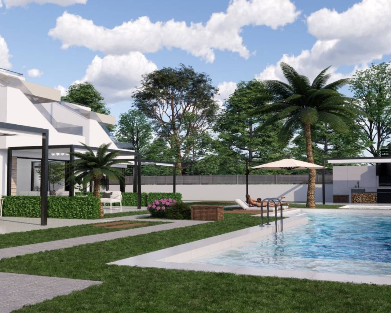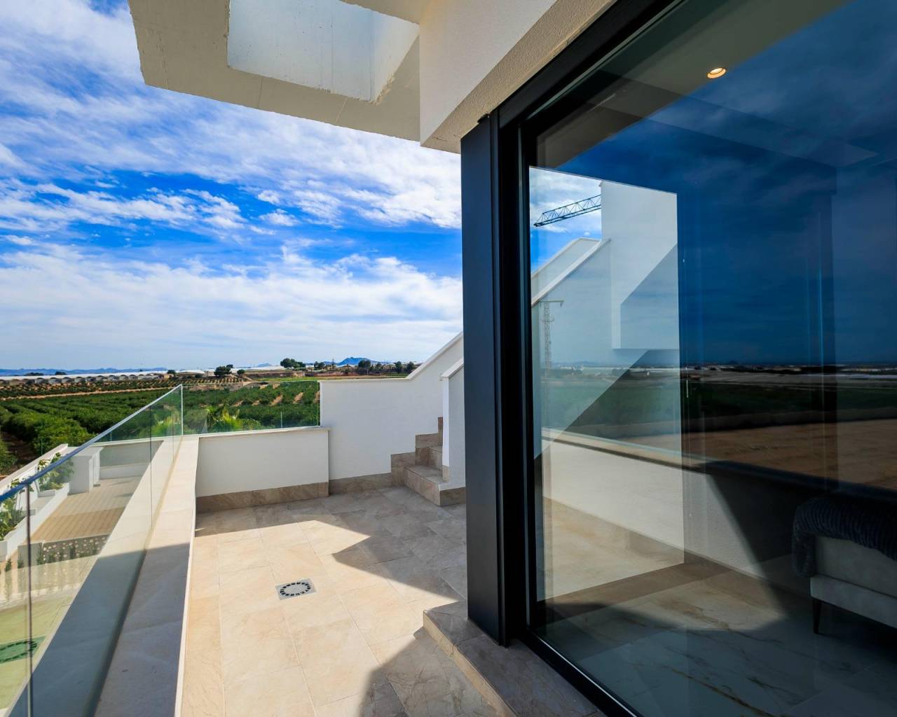 NIEUWBOUW VILLA'S IN PILAR DE LA HORADADA OP DE GOLFBAAN Nieuwbouw een exclusief en luxe project van villa's op Lo Romero golf, Pilar de la Horadada. Nieuwbouw villa's zullen de uitstekende woningen zijn voor u en uw familie. Met een indeling van drie slaapkamers en drie badkamers, afgezien van de 45 m2 terras, zal het huis hebben allerlei voorzieningen om uw verblijf een heerlijke een te maken. Het ligt op slechts 100 m van de golfbaan en op 5 min van de uitgaansgelegenheden, waaronder het strand, op slechts 6 km afstand. Het is zuidoostelijk georiënteerd. Bovendien heeft het een eigen parkeerplaats en inbouwkasten. En dat niet alleen, deze villa's hebben tot uw beschikking een gemeenschappelijk zwembad, een ideale plek voor barbecues en een lounge buiten om te ontspannen. Pilar de la Horadada is een typisch Spaans dorp in het meest zuidelijke deel van de Costa Blanca. De grote hoofdstraat heeft supermarkten, veel winkels, restaurants en bars en een aantal mooie pleinen. De prachtige stranden van Torre de la Horadada en Mil Palmeras met fijne zand promenade ligt op slechts 5 minuten afstand. Lo Romero Golf is de perfecte baan voor golfers die gepassioneerd zijn over golf en het Eiland van Golf is een ideale baan voor golfers van alle niveaus. De luchthavens van Corvera (Murcia) en Alicante liggen op respectievelijk 40 en 55 minuten afstand.