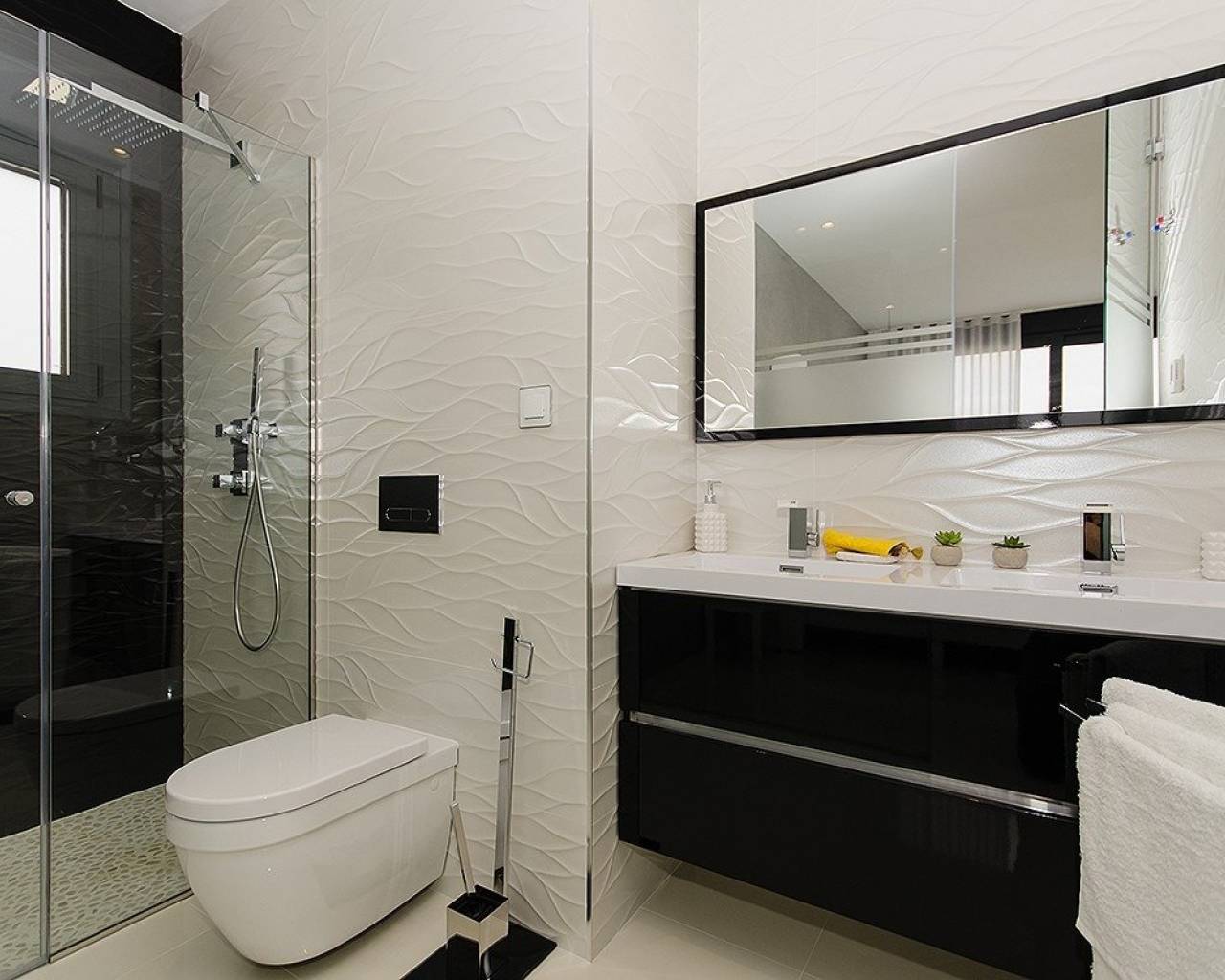NIEUW GEBOUWDE VILLA IN ORIHUELA COSTA (CAMPOAMOR) Wil je genieten van een exclusieve vakantie aan zee? Onmogelijk om niet te vallen voor deze ultramoderne villa in Orihuela Costa met 4 slaapkamers, 2 badkamers, privézwembad, tuin en luxe extra's, naar persoonlijke voorkeuren. De delicate infrastructuur integreert met de natuur en zorgt voor een rustige en geïsoleerde omgeving. Dit elegante pand is gebouwd met materialen van de hoogste kwaliteit en wordt omgeven door een overvloed aan vegetatie en op een paar meter van de schoonste stranden van Campoamor: Playa de la Glea, Aguamarina en Cabo Roig. Het is een genoegen om deze drie prachtige stranden die zijn bekroond met de Blauwe Vlag binnen handbereik te hebben. Wanneer je een moment van reflectie nodig hebt, kun je naar beneden gaan om het kristalheldere water aan te raken of op het zachte zand liggen om een boek te lezen terwijl je luistert naar het kalme geluid van de zee. In de omgeving vindt u alle essentiële diensten om het hele jaar door te leven: supermarkten, apotheken, cafés, restaurants, winkelcentra ... En als u ook enthousiast bent over golf, op minder dan 10 minuten afstand kunt u kiezen tussen drie bevoorrechte golfbanen cursussen van internationale erkenning waar uw doel op de proef wordt gesteld: Las Colinas Golf, Villamartín of Las Ramblas. De actie omvat verschillende modellen van woningen met 2,3,4 en tot 5 slaapkamers. Deze bijzondere villa bestaat uit 4 slaapkamers, 2 badkamers, een volledig uitgeruste Amerikaanse keuken, een open woon-eetkamer met veel verlichting, toegang tot de tuin en het prachtige zwembad. Daarnaast is de prijs inclusief: Vloerverwarming en spiegel in badkamers Binnen- en buitenverlichting In loop kasten Beveiligings deur Pre-installatie van airconditioning Apparaten van topmerken Het huis volgt de trend van open conceptontwerp, verbetert ruime ruimtes en biedt een groter gevoel van comfort en welzijn in het interieur.