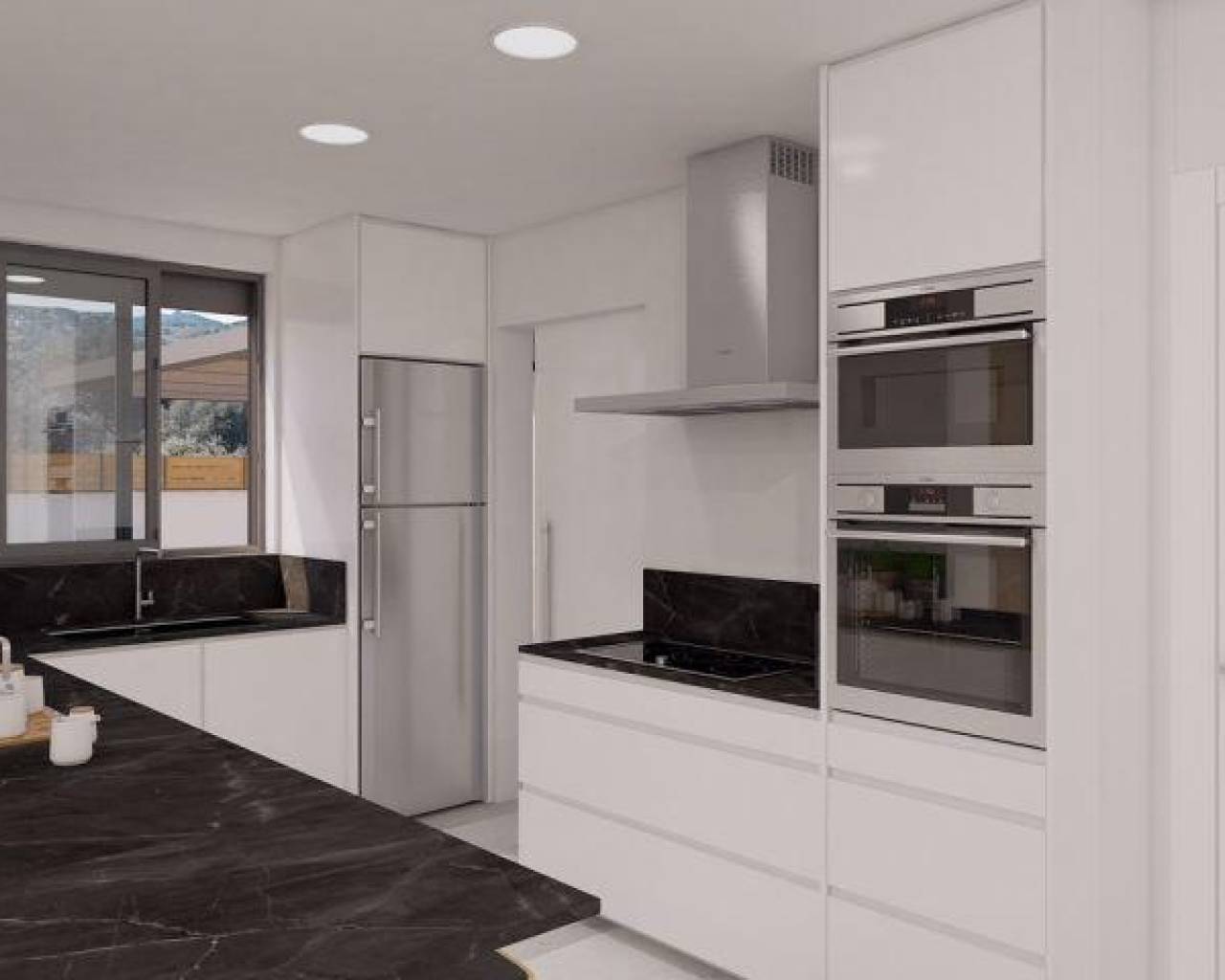 MODERNE VILLA TUSSEN ZEE EN BERGEN Fantastische nieuw gebouwde villa op een perceel van 400m2 in Aspe. De villa heeft een bebouwde oppervlakte van 140,17m2, verdeeld over één verdieping, met een veranda van 19,20m2, een woon-eetkeuken van 41,50m2, 3 slaapkamers, 2 badkamers, een galerij en een solarium van 27,55m2. Inbegrepen in de prijs: Elektrische apparatuur: keramische kookplaat, oven, afzuigkap, afwasmachine, koelkast en wasmachine. Airconditioning met warmtepomp, installatie + machine. Badkamers met spiegelend badkamermeubel, douchescherm en kranen. Keuken met wit meubilair en nationaal graniet Interieur Led verlichting in het hele huis en in de veranda. Dubbele beglazing, binnendeuren en witte ingebouwde kasten. Bestrating rond het huis en het zwembad en parkeerplaats voor voertuigen, grind, gras en planten. Automatische poort voor voertuigen en voetgangers. Zwembad Als u op zoek bent naar een rustige omgeving, dicht bij typisch Spaanse dorpjes, omgeven door bergen en op ongeveer 30 minuten van de zee, dan is dit het huis voor u!