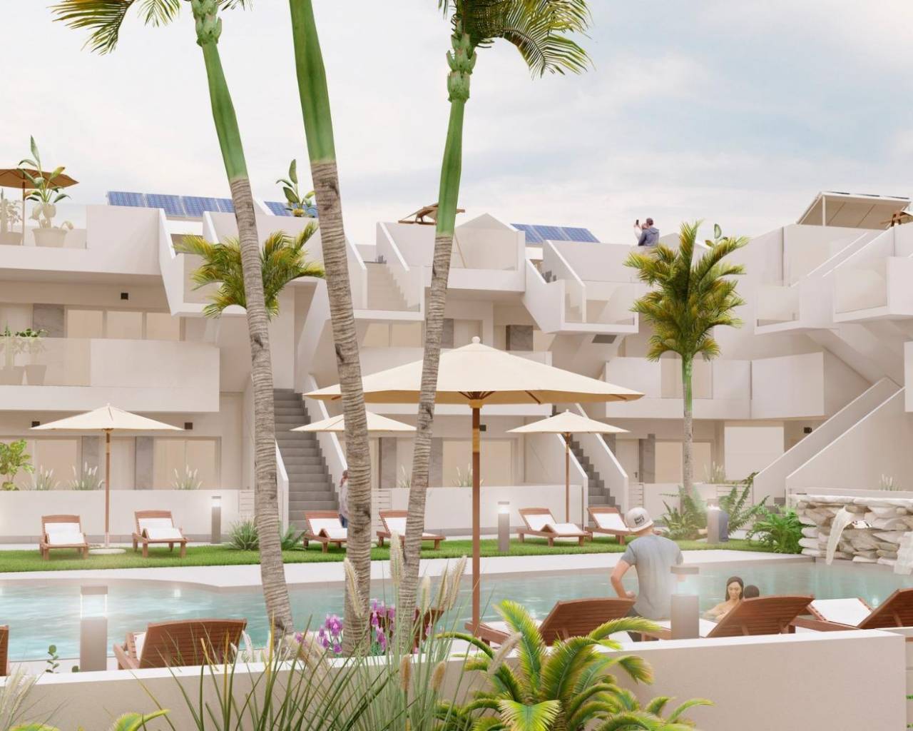 NIEUWBOUW BUNGALOWS IN ROLDAN Nieuwbouw omheind wooncomplex van bungalowappartementen gelegen in Roldán, Murcia. Deze exclusieve bungalows zijn ontworpen met 3 slaapkamers en 2 badkamers, terras op de begane grond en met 2 slaapkamers en 2 badkamers en solarium voor de bovenverdieping. De interieurs, elegant en functioneel, hebben vloeren van hoge kwaliteit, volledig ingerichte keukens in wit gecombineerd met imitatiehout, inclusief elektrische apparaten. De badkamers hebben een badmeubel met wastafel en verlichting. De slaapkamers zijn voorzien van beklede kledingkasten met laden en schuifdeuren en elke woning heeft een pre-installatie voor gekanaliseerde airconditioning. De buitenkant is niet minder indrukwekkend, met onder andere een gemeenschappelijk zwembad en een prachtige sportzone en kinderspeelplaats op kunstgras om van te genieten. Elke woning heeft een parkeerplaats. Bergingen zijn optioneel tegen een meerprijs. Roldan zelf is een traditionele stad met alle plaatselijke voorzieningen die je nodig hebt, zoals supermarkten, restaurants, bars, een kliniek, apotheek, politiebureau, benzinestation, monteurs, tandartsen, dokters en nog veel meer. De nabijgelegen golf resorts van La Torre, & Terrazas zijn gemakkelijk bereikbaar, Corvera Airport ligt op 15 minuten afstand en de stranden van de Mar Menor op slechts 20 minuten rijden.
