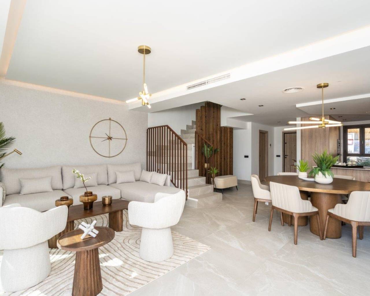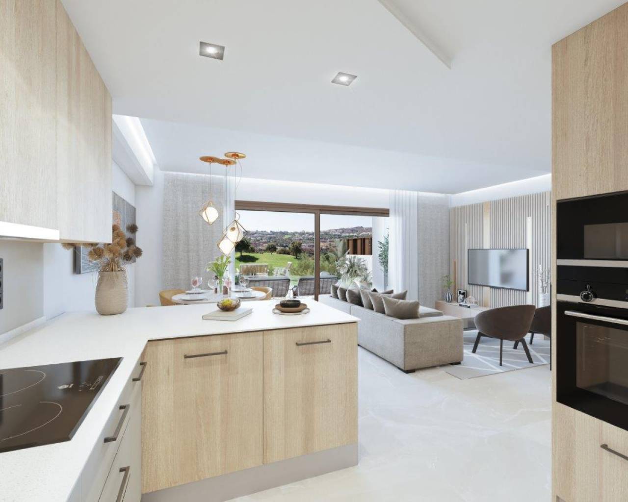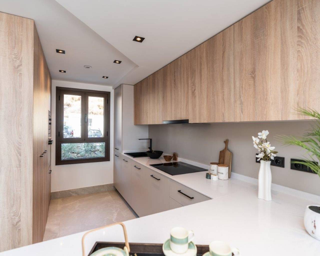Exclusief wonen in La Cala Golf Resort – Moderne geschakelde woningen met panoramisch uitzicht Dit nieuwe project in La Cala Golf Resort bestaat uit 26 ruime geschakelde woningen, gelegen direct aan de golfbaan en met panoramisch uitzicht over de residentie en de vallei van Mijas. De woningen hebben een ideale zuidwestelijke oriëntatie en zijn onderdeel van een afgesloten gemeenschap met zwembad en gemeenschappelijke tuin. De woningen zijn verdeeld over drie verdiepingen en bieden een slimme en functionele indeling: Begane grond: open woonruimte met geïntegreerde keuken, groot terras en gastentoilet. Eerste verdieping: drie ruime en lichte slaapkamers, twee badkamers en een terras met prachtig uitzicht. Kelder: eigen privéparkeerplaats met directe toegang tot de woning. Er zijn twee woningtypes beschikbaar: woningen met één slaapkamer op de begane grond en twee slaapkamers op de bovenverdieping, en woningen met alle drie de slaapkamers op de bovenverdieping. Keuken en afwerking De open keukens zijn stijlvol afgewerkt met melamine boven- en onderkasten in natuurlijk Zwitsers eikenhout en Oostenrijks katoen, voorzien van witte Silestone werkbladen. Ze worden geleverd met een volledig pakket apparaten van Balay of een gelijkwaardig nationaal merk, inclusief oven, magnetron, inductiekookplaat, afzuigkap en wasmachine. De koelkast en vaatwasser zijn geïntegreerd in het ontwerp, en de spoelbak en kraan zijn elegant uitgevoerd in zwart. De woningen zijn gebouwd volgens de nieuwste bouwvoorschriften en beschikken over Energiecertificaat A, waardoor comfort, duurzaamheid en moderne architectuur hand in hand gaan. Locatie en voorzieningen Gelegen in een rustige omgeving tussen het natuurpark Sierra de Mijas en de Middellandse Zee, bent u slechts: 10 minuten van de stranden van de Costa del Sol 20 minuten van Marbella 30 minuten van de luchthaven van Málaga La Cala Golf Resort biedt een ongeëvenaarde lifestyle: 3 golfbanen van 18 holes en La Cala Golf Academy Hydrotherapie- en spacentrum 4-sterrenhotel, 2 restaurants en wijnkelder 24-uurs beveiliging Tennis- en paddlebanen, voetbalvelden, fitnessruimte en recreatiecentrum Binnen enkele minuten rijdt u naar het charmante oude centrum van Mijas, luxe shopping in Marbella of Fuengirola, of geniet van het bruisende nachtleven van La Cala de Mijas en Puerto Banús. Dit project biedt comfort, functionaliteit en een luxe levensstijl in een van de meest exclusieve omgevingen van de Costa del Sol – een unieke kans voor een eerste woning, vakantiehuis of investering. Neem vandaag nog contact met ons op voor meer informatie of een privépresentatie: +34 965 72 44 89 of contact@casalasdunas.com