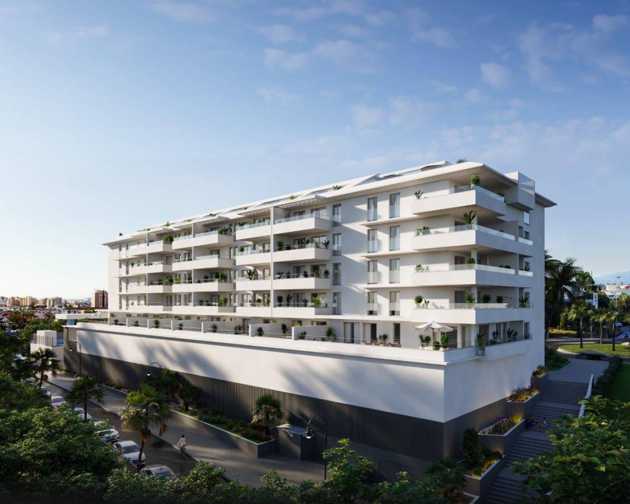 Modern en duurzaam wonen in het hart van Fuengirola In Fuengirola – een dynamische, multiculturele stad die steeds populairder wordt bij zowel Spanjaarden als internationale bewoners – verrijst dit exclusieve nieuwbouwcomplex met 99 hoogwaardige appartementen. Een eigentijds woonconcept waarin design, comfort en energie-efficiëntie centraal staan. De woningen, beschikbaar met 1, 2 en 3 slaapkamers, variëren in oppervlakte van circa 60 m² tot 120 m². Elk appartement beschikt over royale terrassen, georiënteerd op het oosten of westen, met uitzicht op zee of de bergen. Deze privé buitenruimtes vormen een natuurlijke verlenging van uw leefruimte en bieden het perfecte decor om te ontspannen en te genieten van het mediterrane klimaat. De interieurs zijn ontworpen met maximale aandacht voor comfort, efficiëntie en welzijn. Grote raampartijen zorgen voor een overvloed aan natuurlijk licht en creëren een ruimtelijk gevoel. Dankzij hoogwaardige thermische en akoestische isolatie, geïntegreerde airconditioning en energiezuinige oplossingen geniet u van een aangenaam binnenklimaat in elk seizoen. De moderne keukens zijn volledig ingericht en uitgerust met inductiekookplaten, elektrische ovens en afzuigkappen van toonaangevende merken – een perfecte combinatie van functionaliteit en strak design. Het gebouw onderscheidt zich door zijn eigentijdse architectuur, hoogwaardige materialen en verfijnde afwerking. De zorgvuldig ontworpen gemeenschappelijke ruimtes creëren een harmonieuze en uitnodigende sfeer voor bewoners. Hier vindt u alles wat modern wonen verlangt: Ruimtes om te werken Zones om te ontspannen en te socialiseren Faciliteiten voor een actieve en gezonde levensstijl Een duurzame en toekomstgerichte woonomgeving Fuengirola zelf biedt een uitzonderlijke levenskwaliteit. Met een breed scala aan recreatieve, culturele en gastronomische mogelijkheden, levendige muziekfestivals en diverse evenementen, combineert de stad mediterrane charme met internationale allure. Een unieke kans om te investeren in modern comfort op een toplocatie aan de Costa del Sol. Voor meer informatie: +34 965 72 44 89 of contact@casalasdunas.com