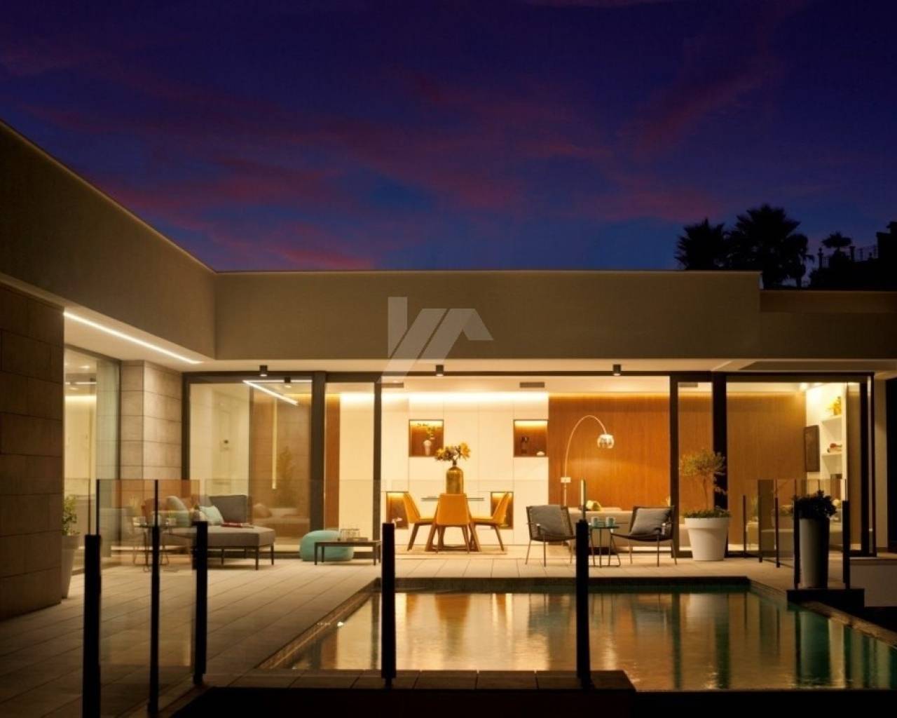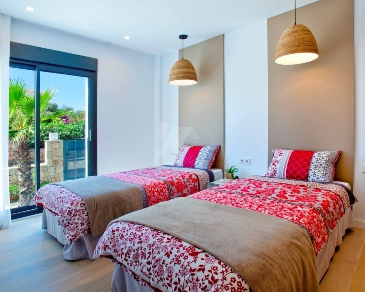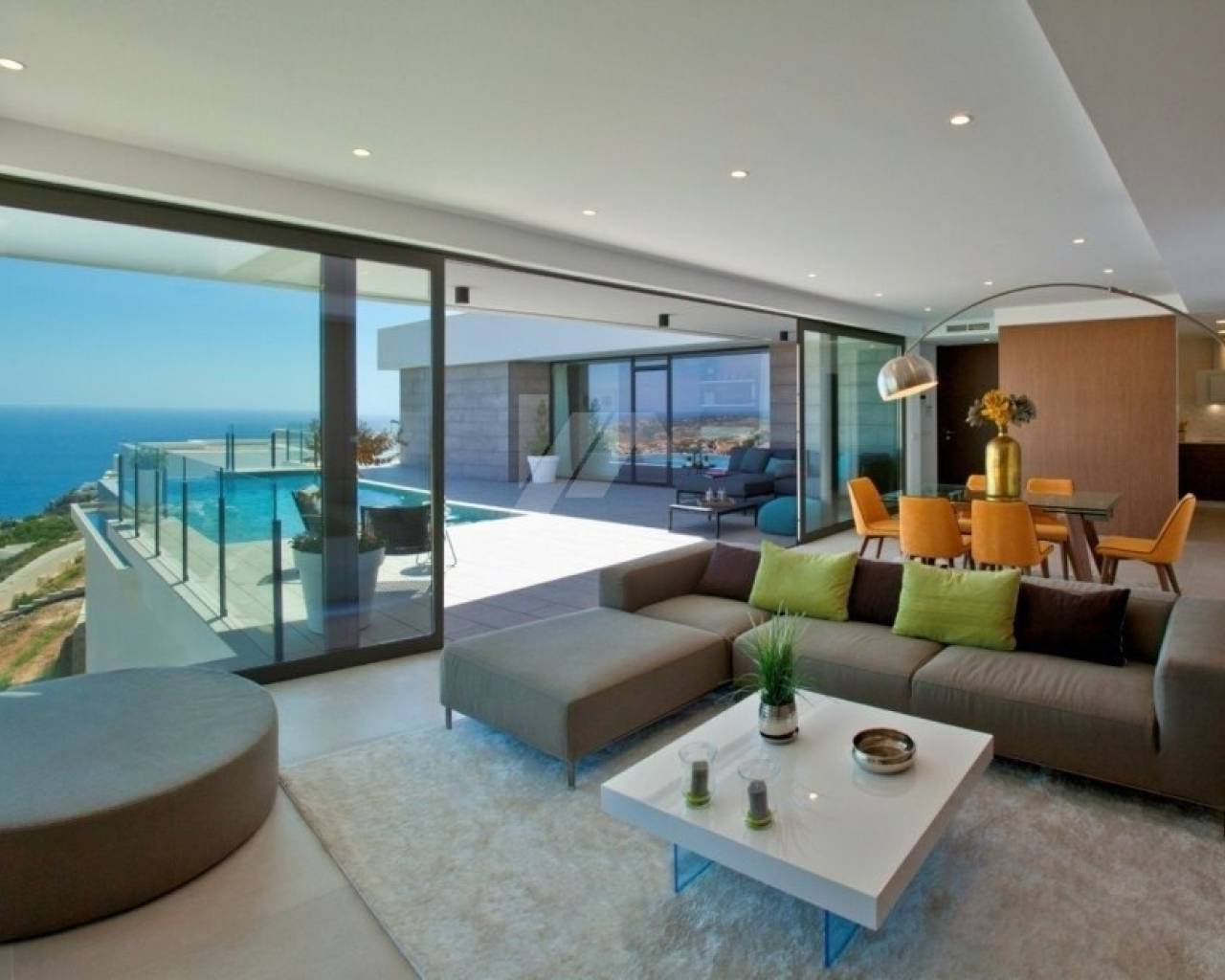 Deze L-vormige moderne nieuwbouw villa is gebouwd naar een uniek ontwerp en lay-out met prachtig uitzicht op zee en Ibiza versterkt en combineert binnen- en buitenruimtes met grote raampartijen. Er is een hoofdhuis dat gelijkvloers aan het zwembad is en aan de ene kant bestaat uit een ruime slaapkamer met eigen badkamer en twee andere slaapkamers gescheiden die gescheiden zijn door een gedeelde badkamer. Aan de andere kant is de dagmodule die bestaat uit de inkomhal, het gastentoilet en een grote wooneetkamer en moderne keuken. In de onderbouw is een grote ruimte van meer dan 68m², bedoeld voor een grote 4e kamer of compleet gastenverblijf.