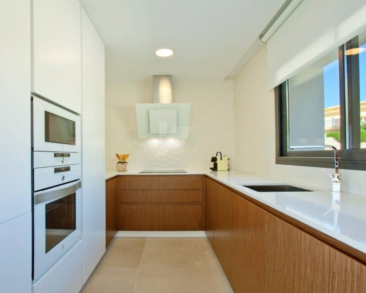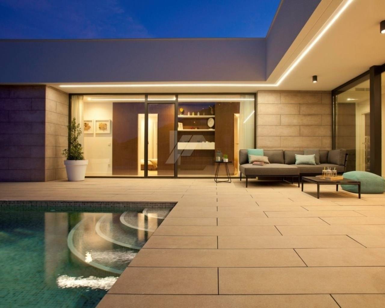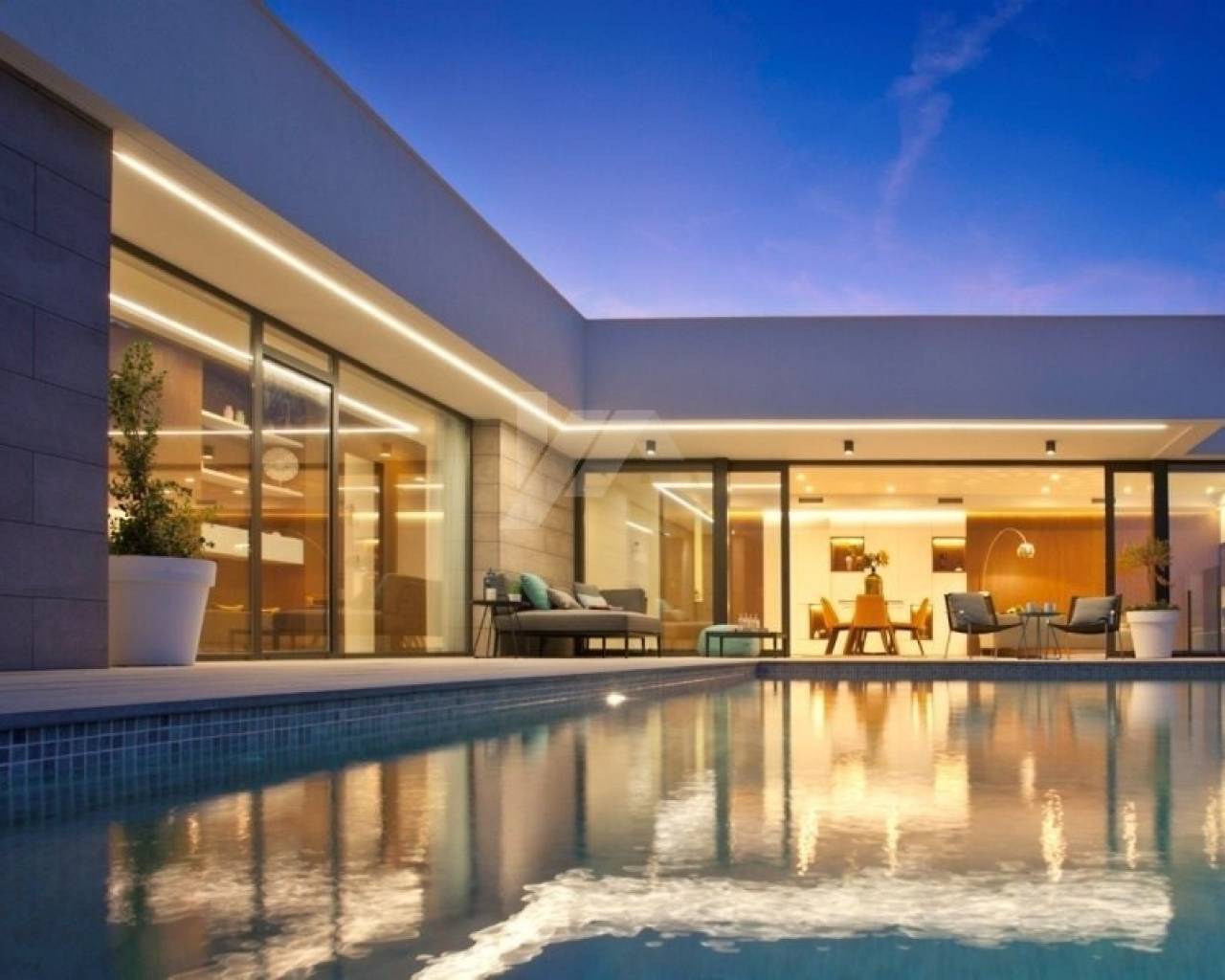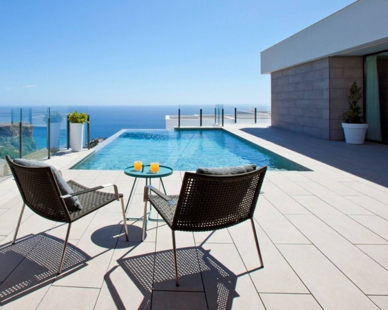 Deze L-vormige moderne nieuwbouw villa is gebouwd naar een uniek ontwerp en lay-out met prachtig uitzicht op zee en Ibiza versterkt en combineert binnen- en buitenruimtes met grote raampartijen. Er is een hoofdhuis dat gelijkvloers aan het zwembad is en aan de ene kant bestaat uit een ruime slaapkamer met eigen badkamer en twee andere slaapkamers gescheiden die gescheiden zijn door een gedeelde badkamer. Aan de andere kant is de dagmodule die bestaat uit de inkomhal, het gastentoilet en een grote wooneetkamer en moderne keuken. In de onderbouw is een grote ruimte van meer dan 68m², bedoeld voor een grote 4e kamer of compleet gastenverblijf.
