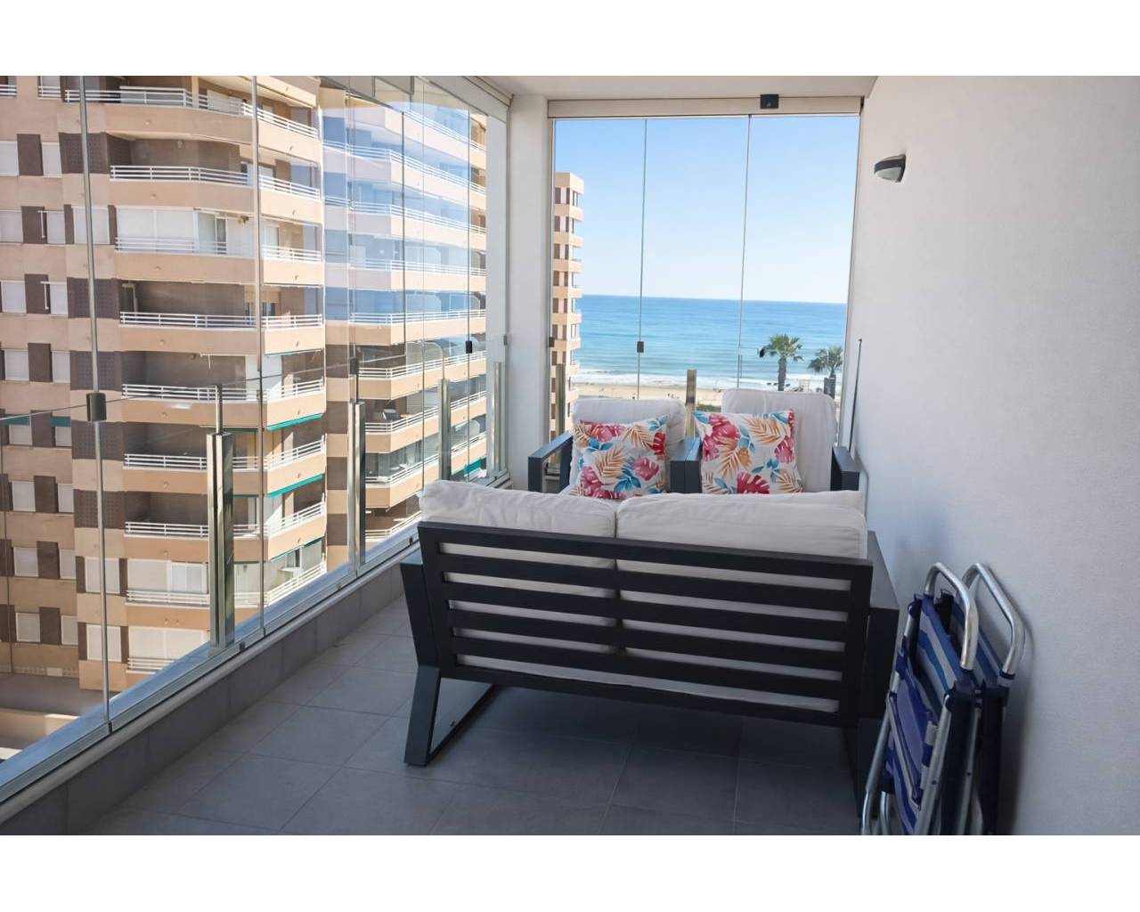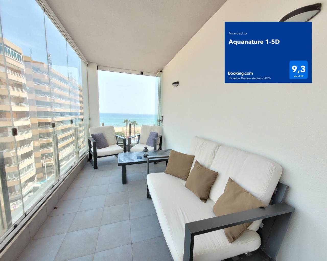 * Bij deze woning kunt u 10% korting krijgen indien u binnen de komende 2 weken aankomst en deze nog beschikbaar is. Dit moderne appartement ligt op de 5de verdieping in Residentie Aqua Nature in La Mata. Op slechts 100m ligt het brede zandstrand. U beschikt over een ruim terras met een prachtig uitzicht op zee. Aquanatura 1-5D is uitgerust met al het nodige comfort, met een magnifiek balkon dat volledig afgesloten kan worden door glasgordijnen. U kunt genieten van een gemeenschappelijk zwembad met kinderbad en mooi aangelegde tuin. De stijlvolle woonkamer grenst aan de moderne, open keuken. Het appartement telt 2 ruime slaapkamers, één slaapkamer met een 2 persoonsbed en één slaapkamer met twee 1-persoonsbedden. Beide slaapkamers hebben ingebouwde kasten, Residentie Aqua Nature staat garant voor een fantastische, memorabele vakantie! Voor €25,- per week is er tevens een parkeerplaats in de ondergrondse parkeergarage te huur. Indien u in het bezit bent van een google chromecast kunt u deze in de woning ook gebruiken om tijdens uw verblijf tv te kijken. Flexibel reserveren: Reserveren kan op elke dag van de week, zodat u gemakkelijk de goedkoopste vluchten kunt boeken. U bent niet verplicht per week te boeken, dit mogen ook 5, 9 of een ander aantal dagen zijn. Laat u informeren door ons voor de beste opties Let op: Voor aankomsten en vertrek tussen 22:00 – 06:00 berekenen wij € 20,- extra nacht toeslag.